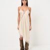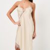 Abito midi in satin con spallina sottile e pizzo a contrasto.