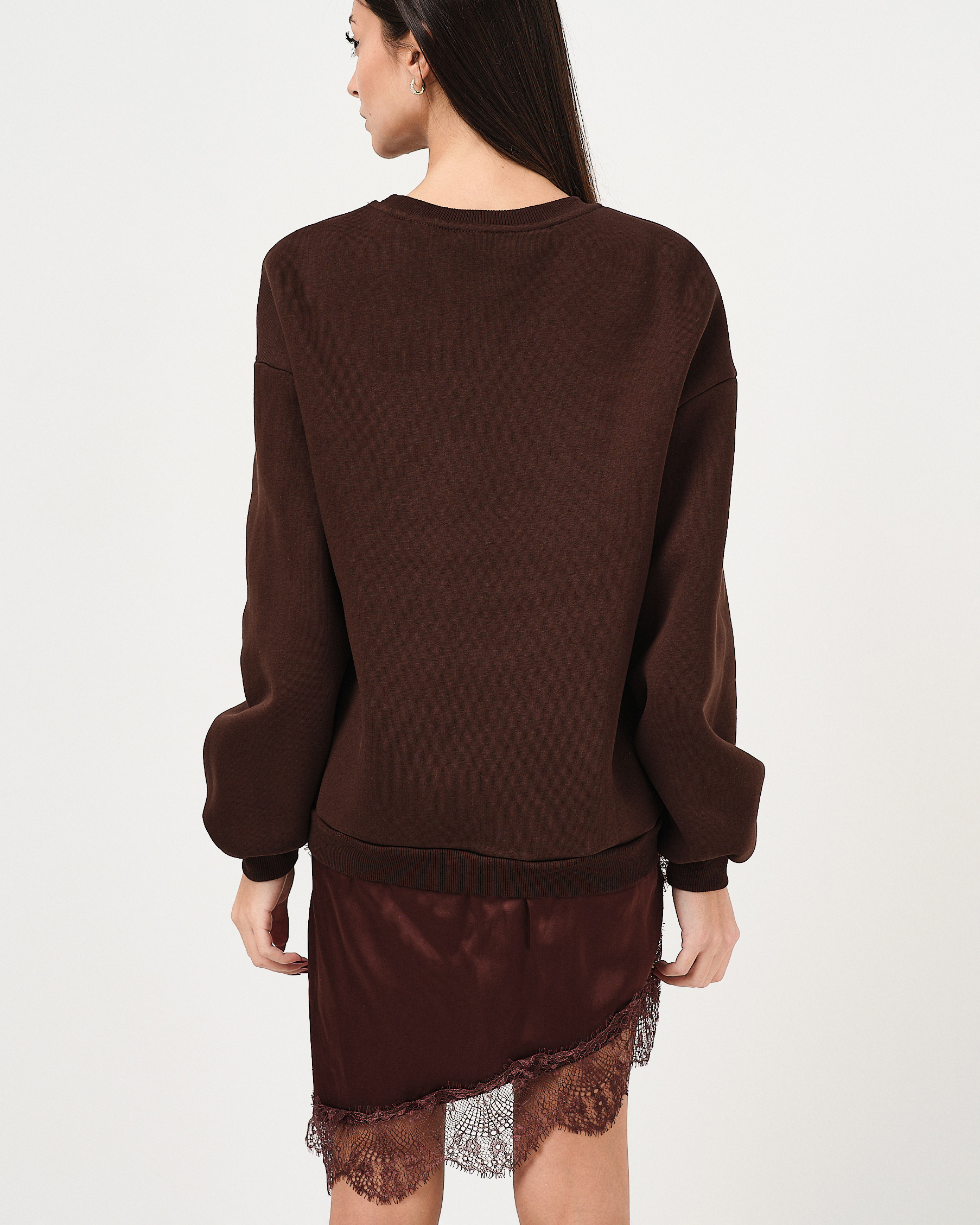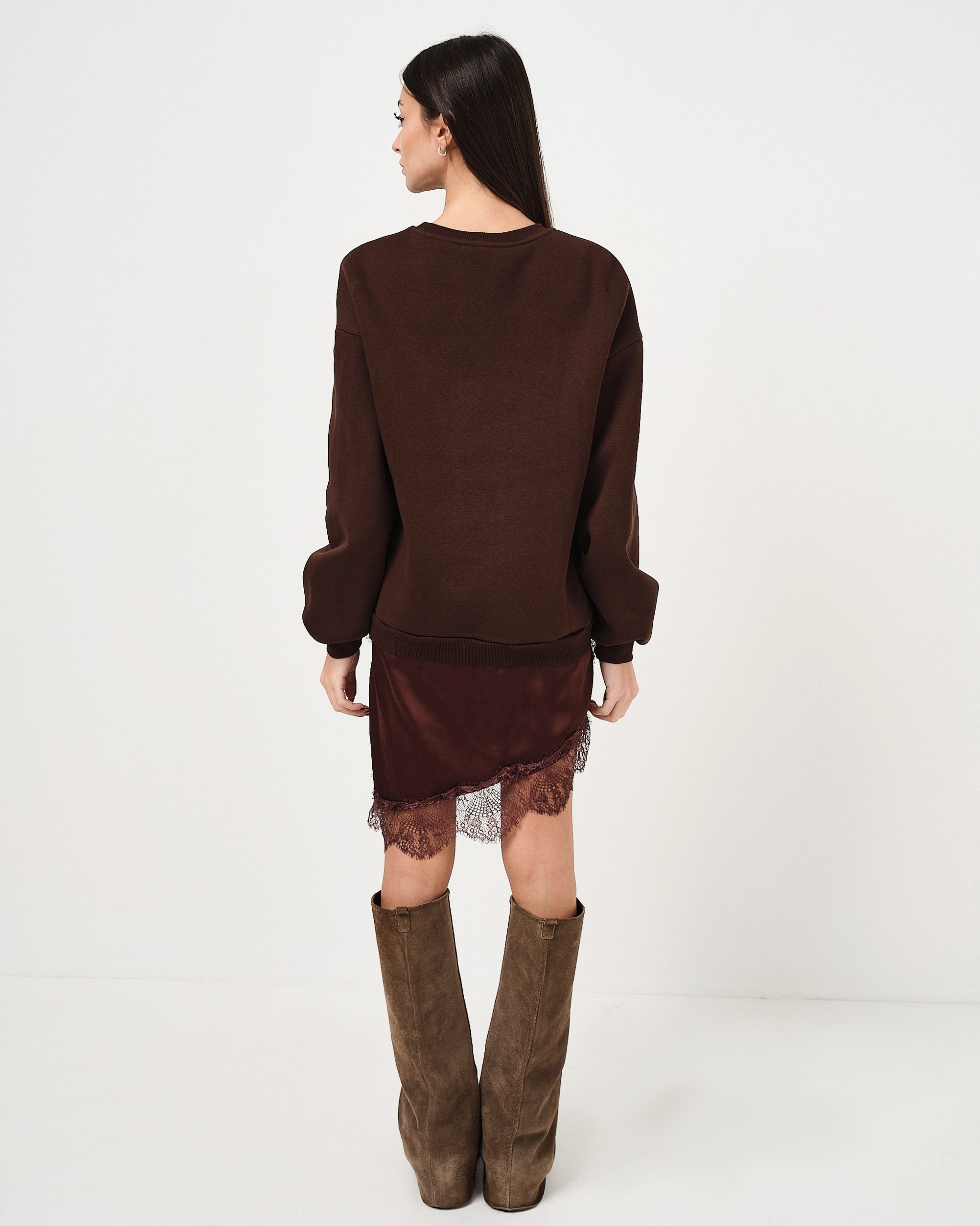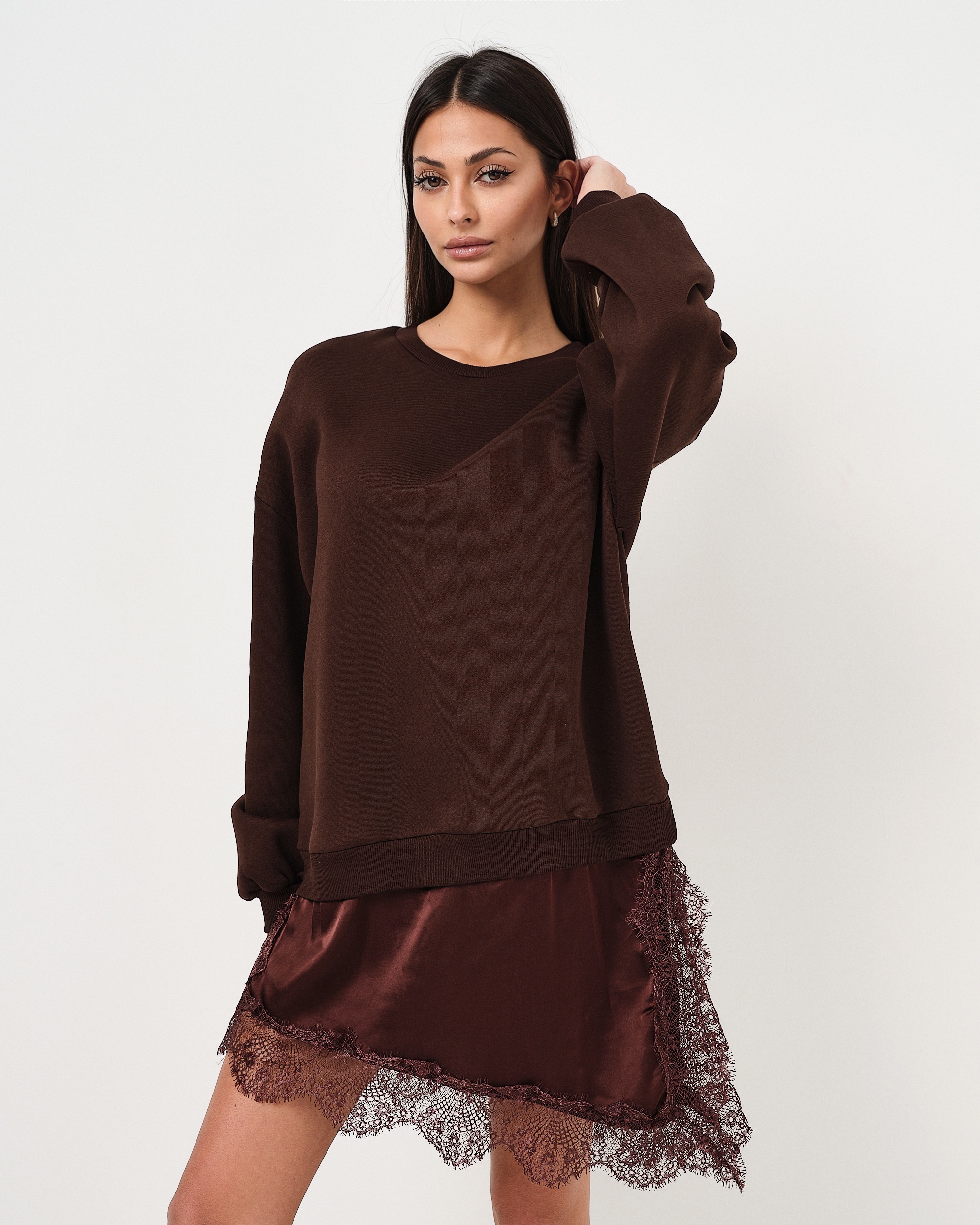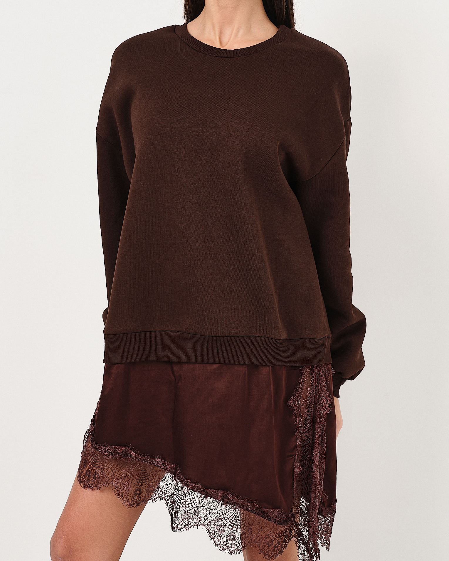 Abito composto da felpa e gonna in raso e pizzo asimmetrica.