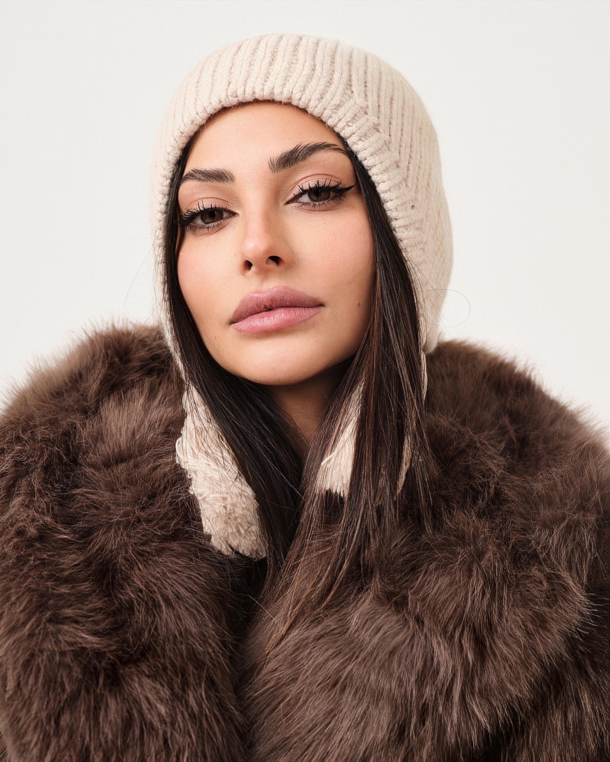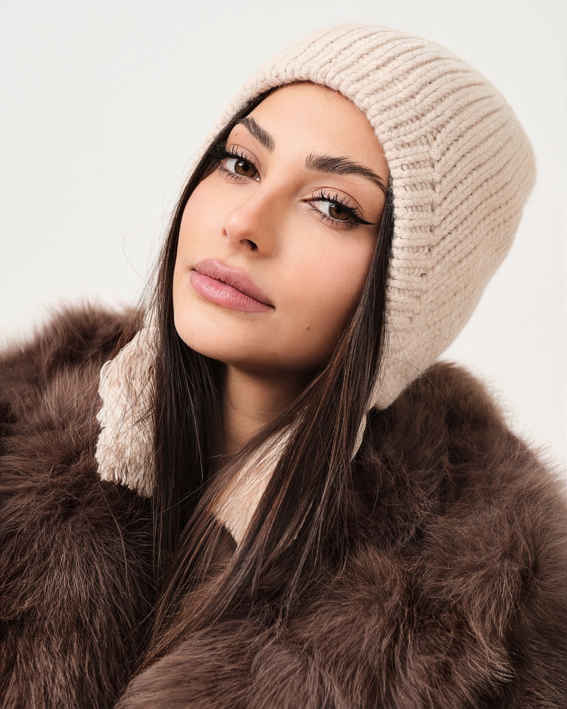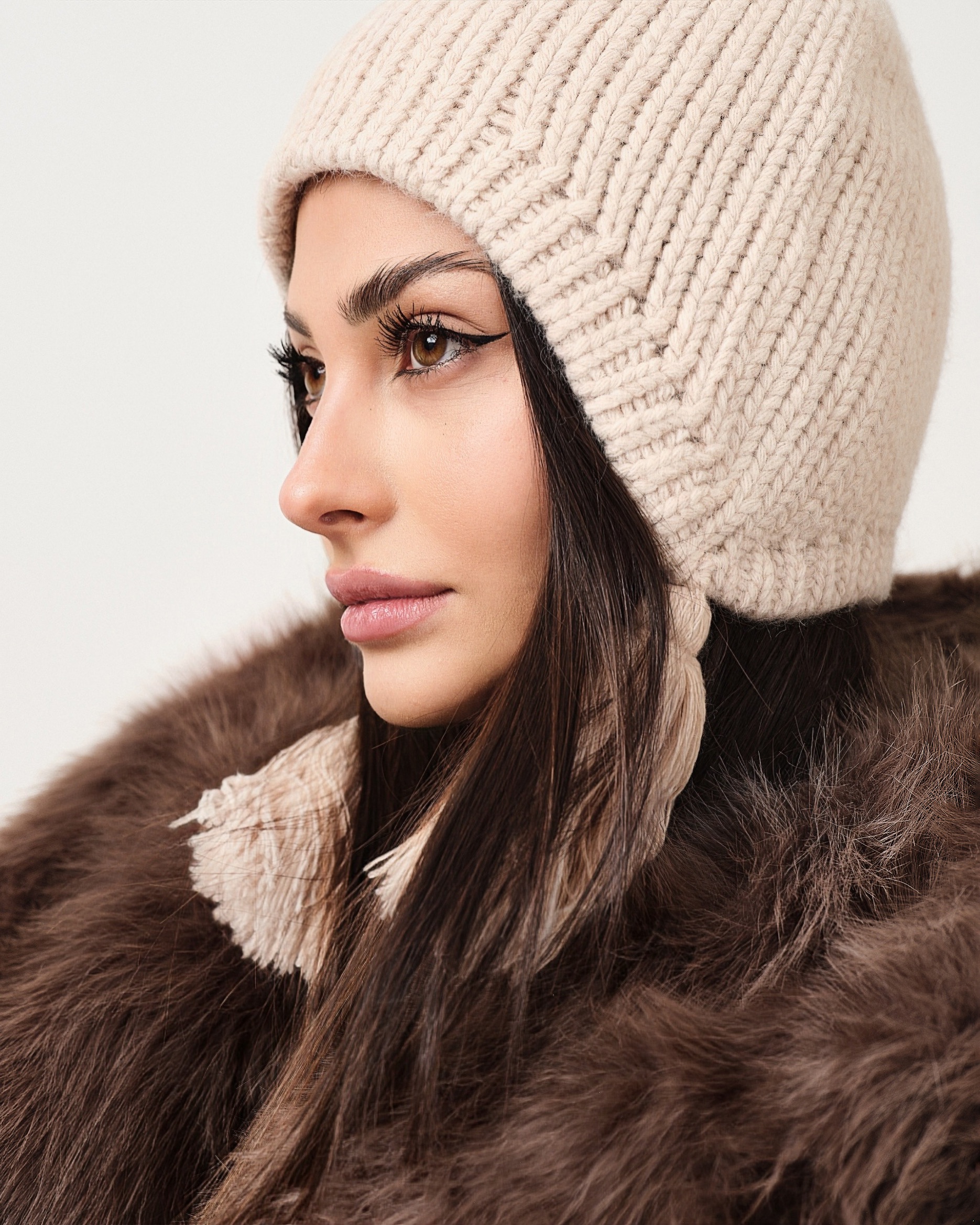 Berretto in misto lana e cashmere con nappine pendenti sui lati.