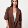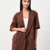 Blazer a maniche corte strutturato doppiopetto con dettaglio della doppia tasca.
