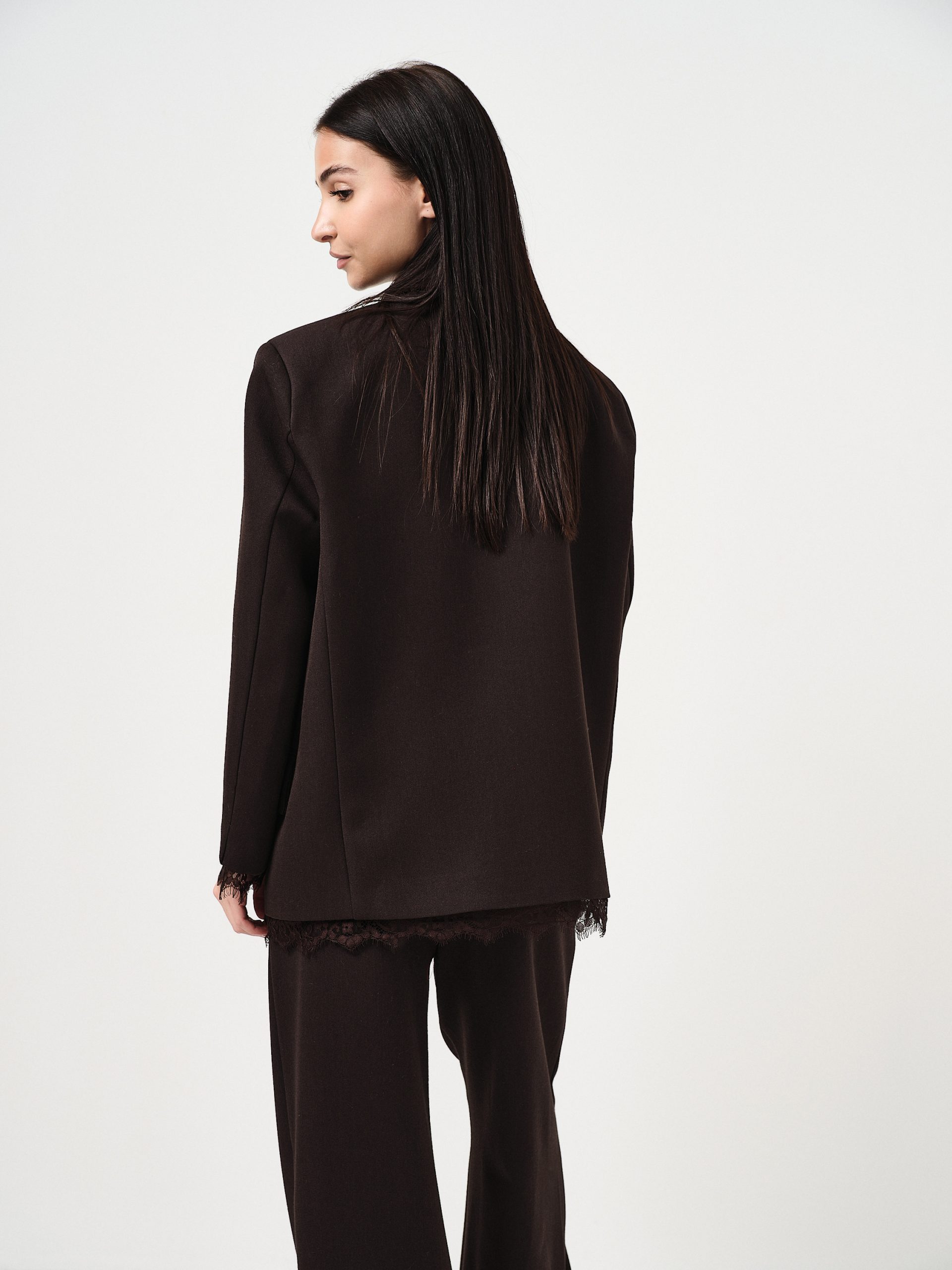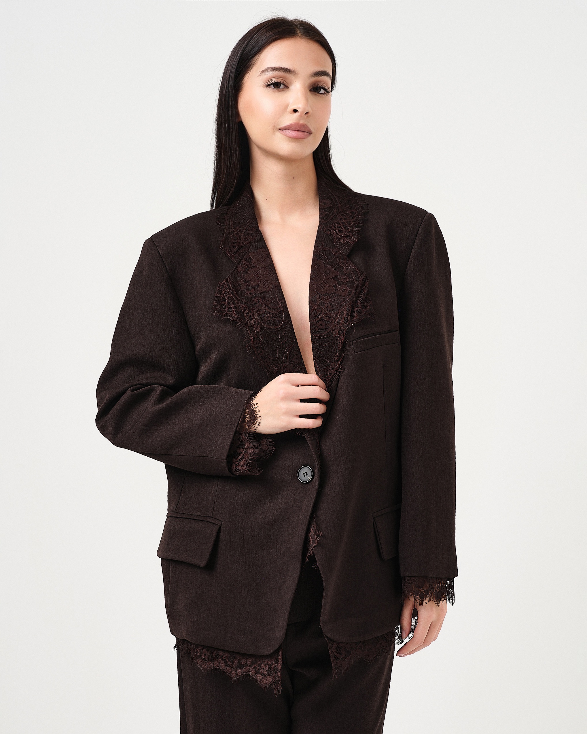Blazer oversize strutturato con spalline imbottite ed inserti in pizzo.