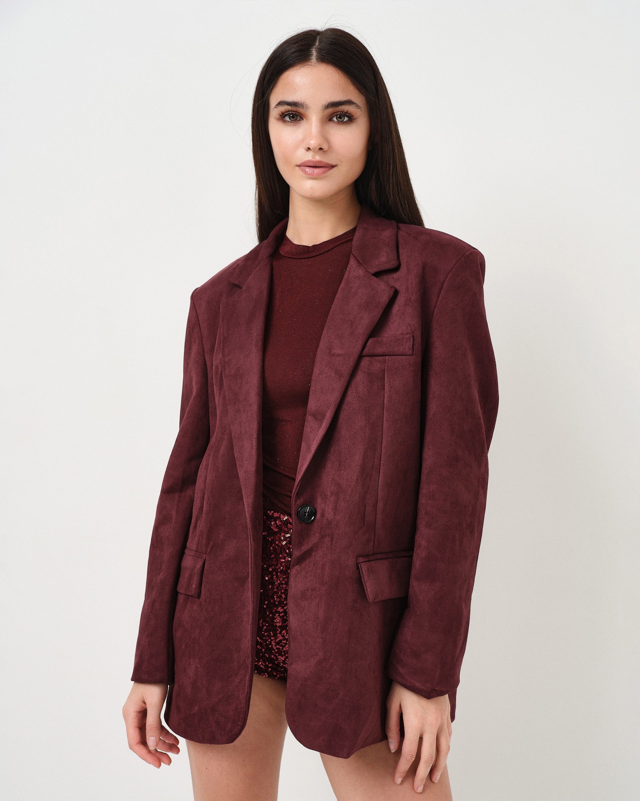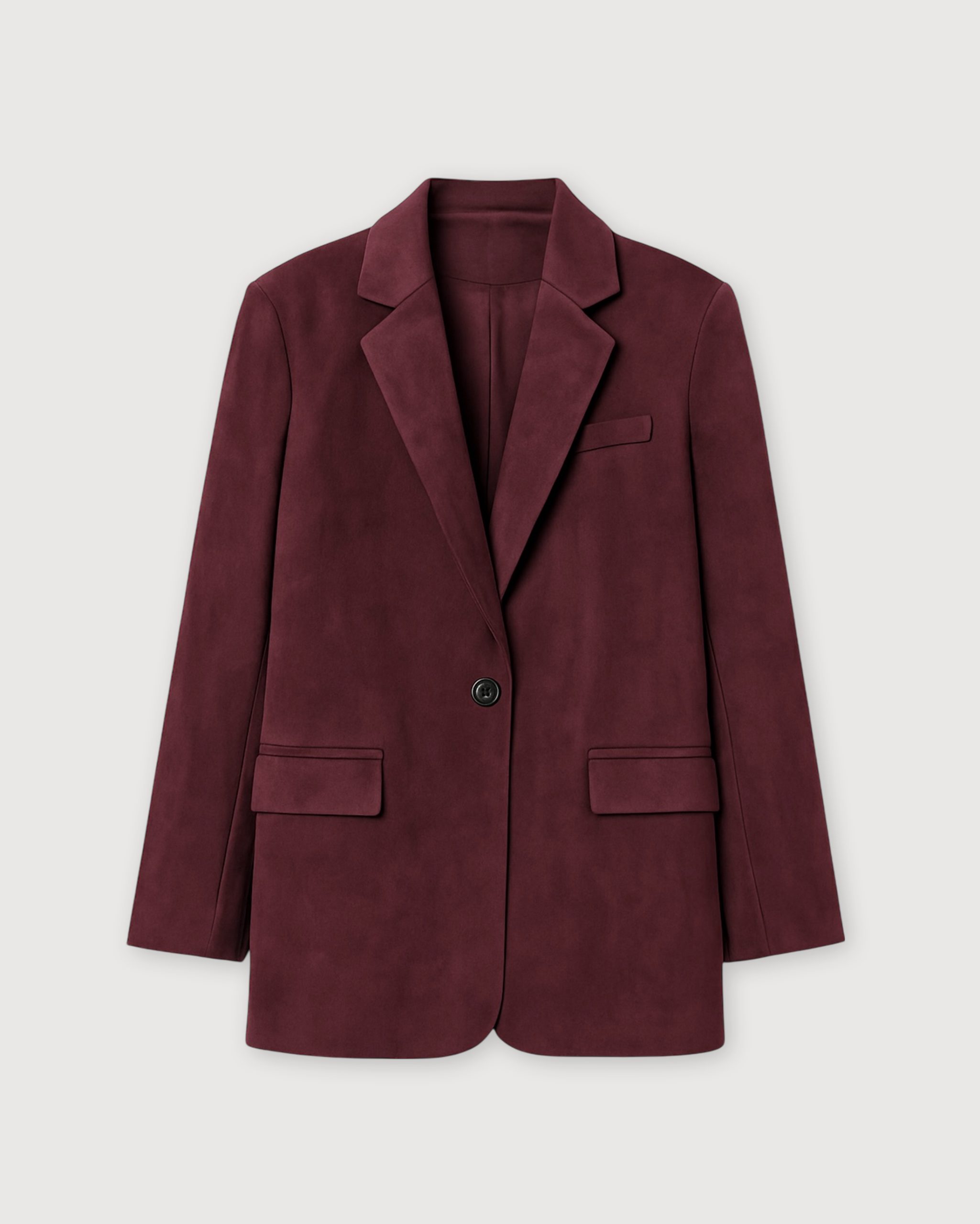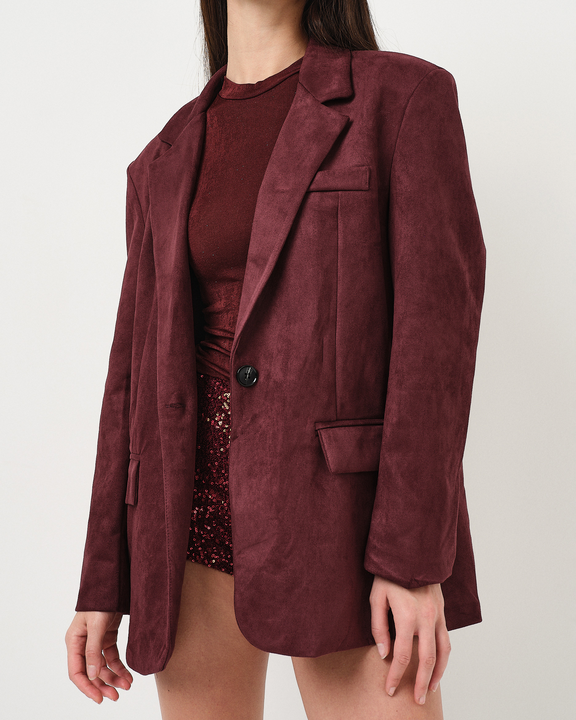 Blazer oversize foderato con spalline imbottite in tessuto scamosciato soft touch.