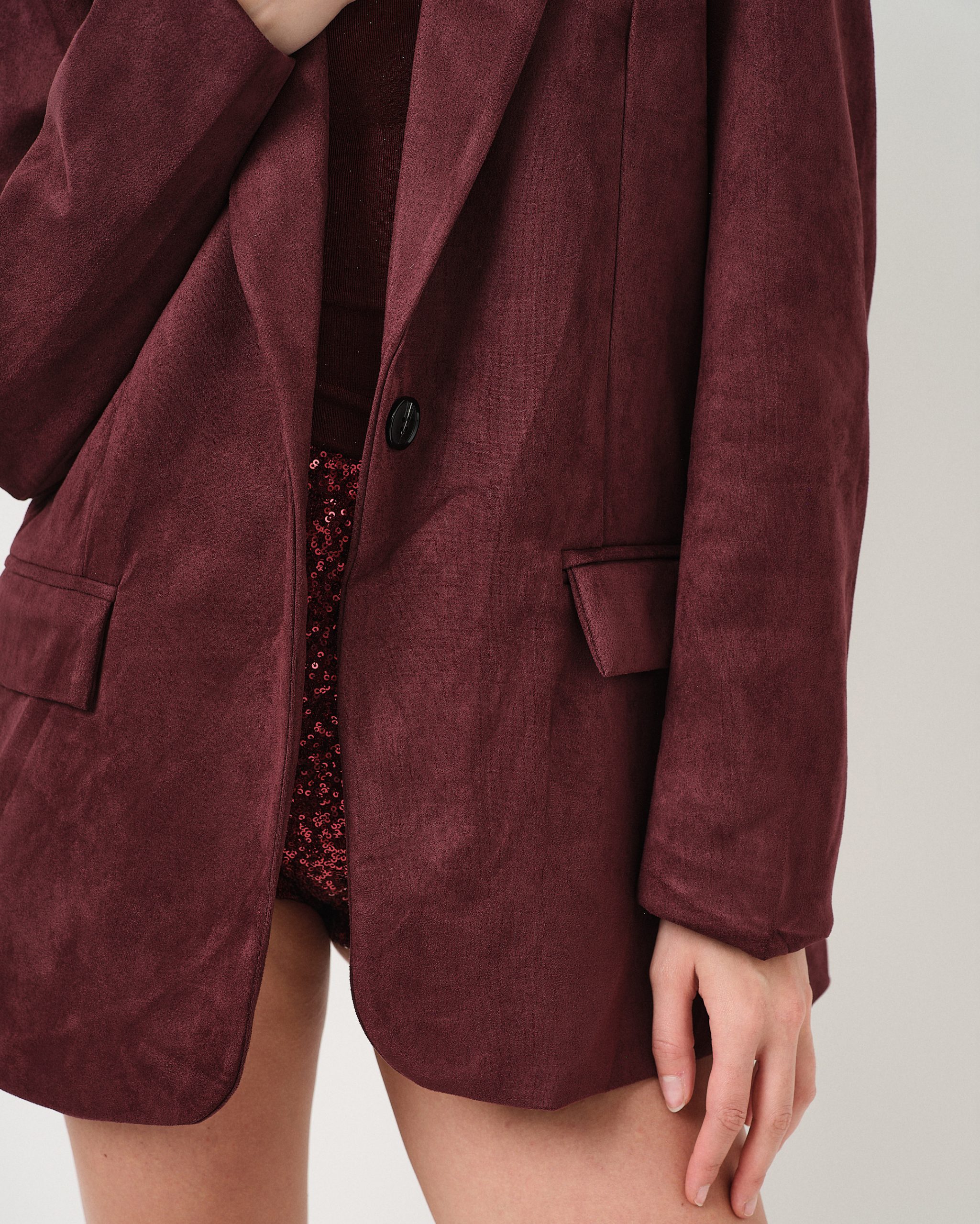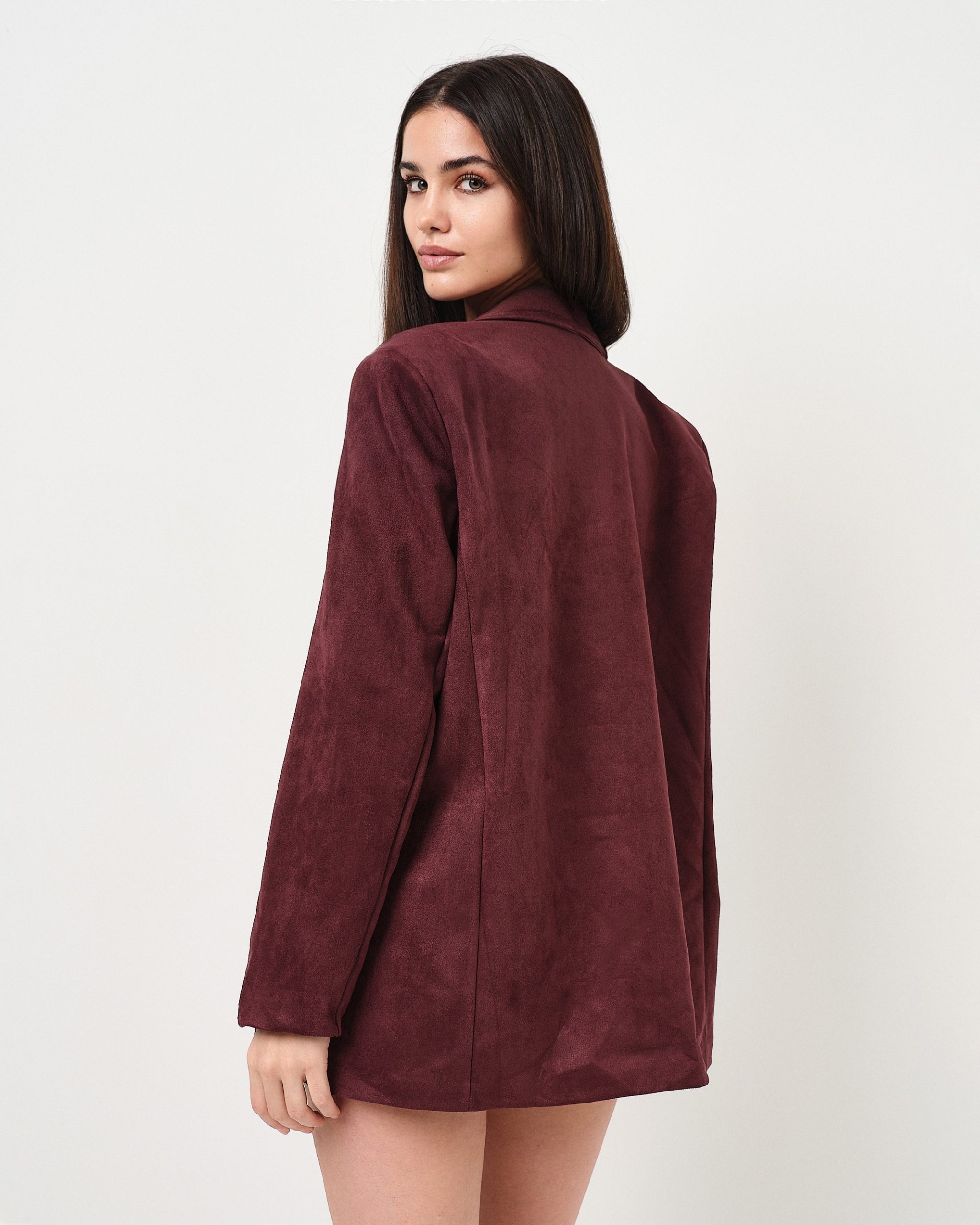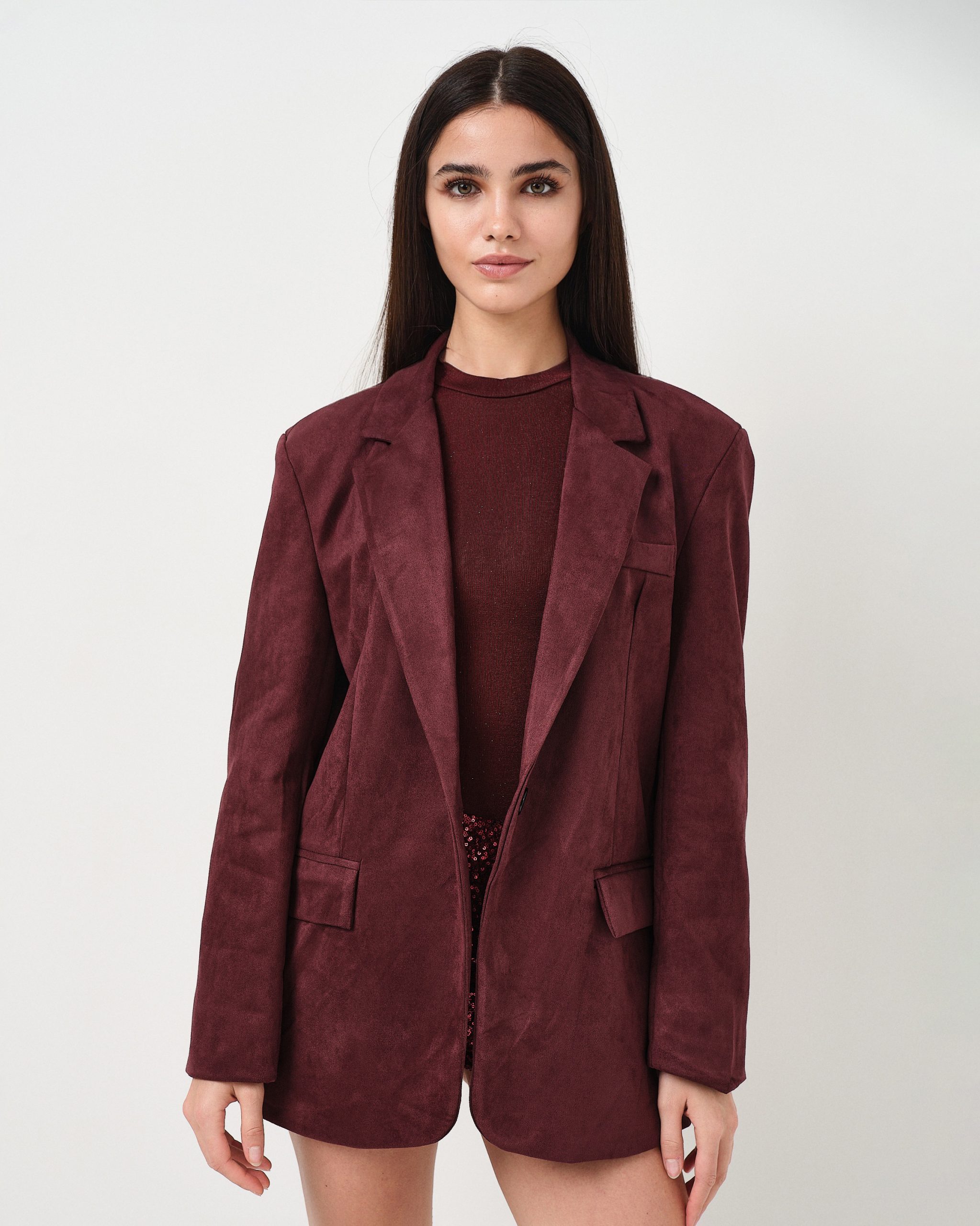 Blazer oversize foderato con spalline imbottite in tessuto scamosciato soft touch.