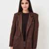 Blazer oversize foderato con spalline imbottite in tessuto scamosciato soft touch.