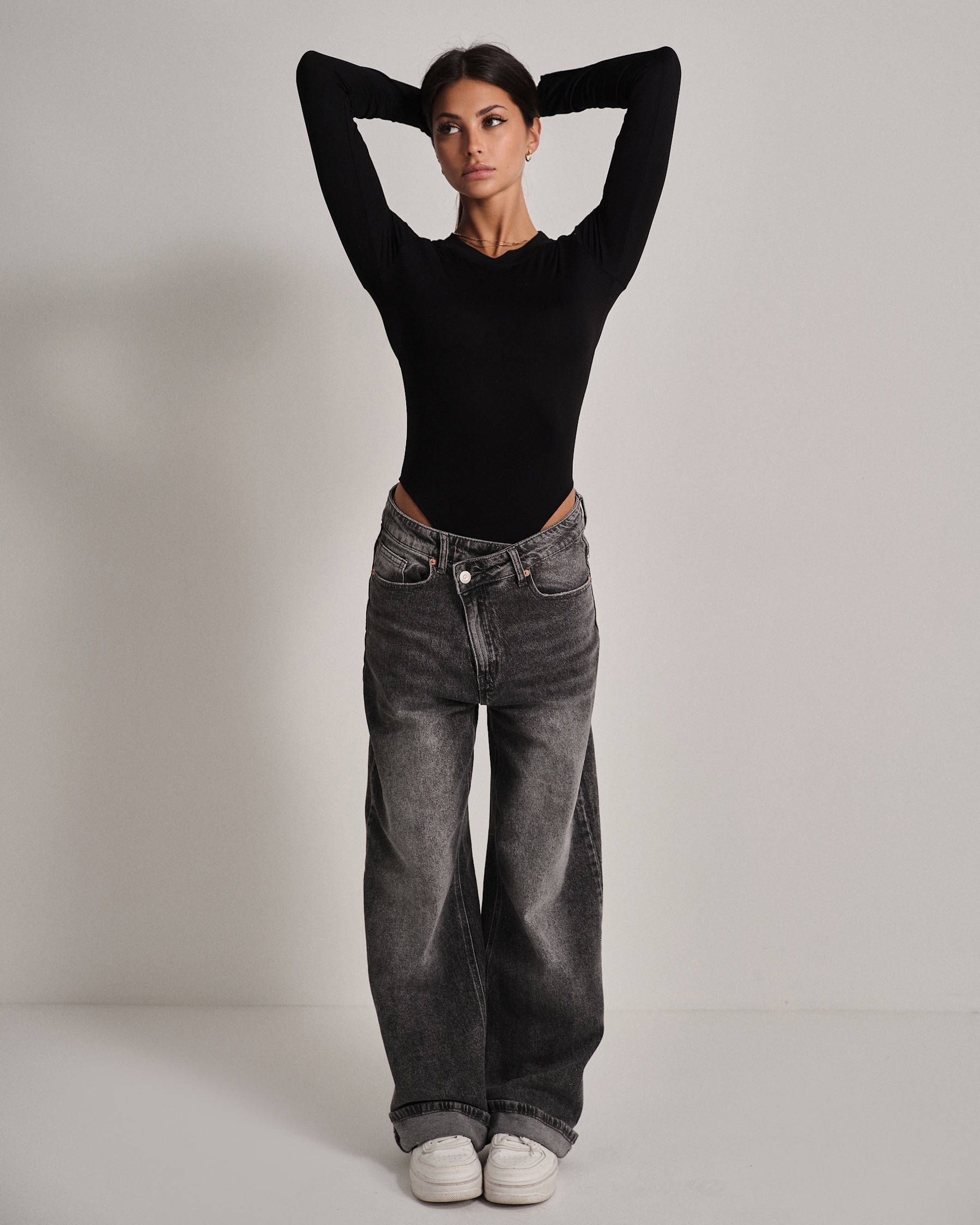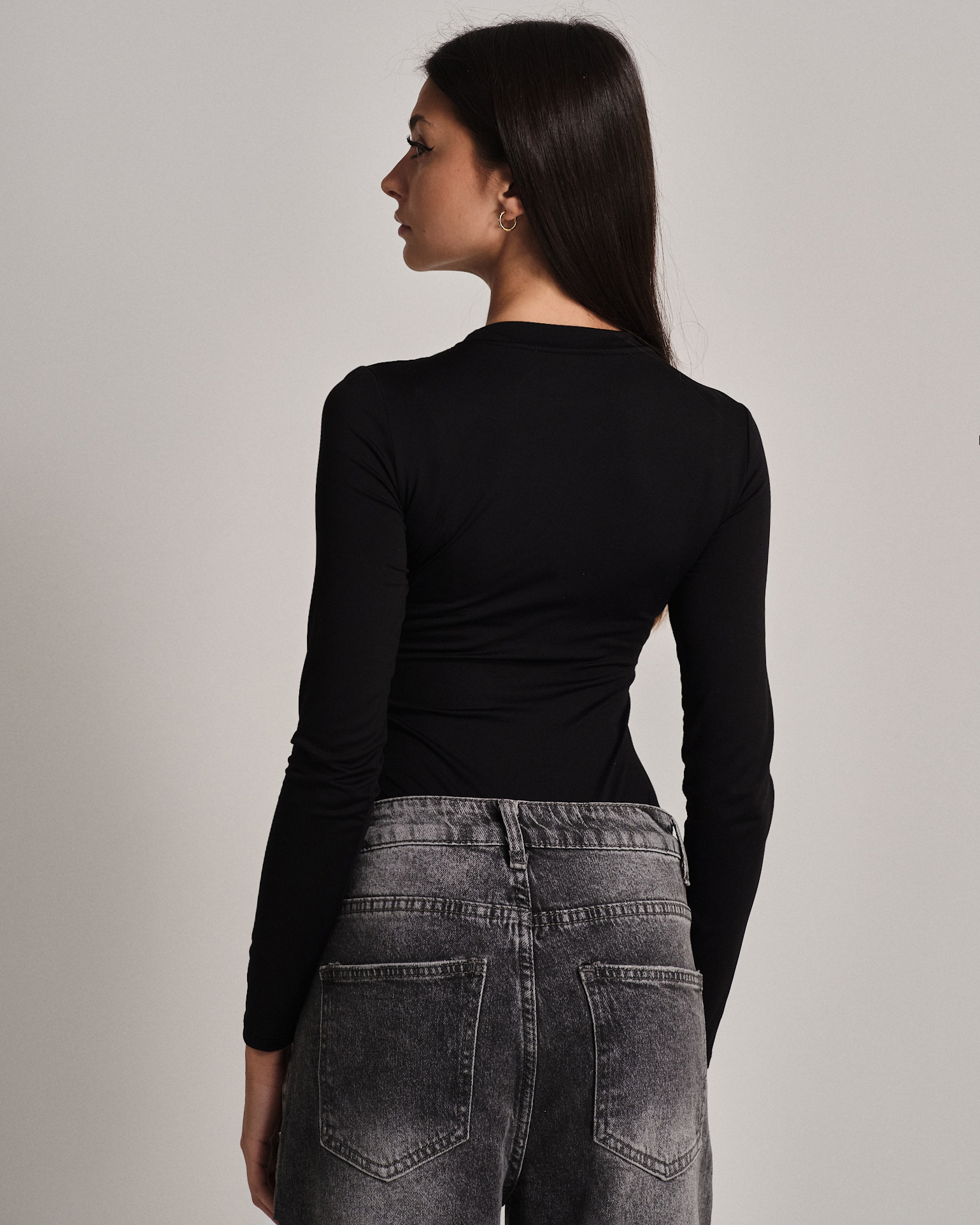 Body in lycra elasticizzata a manica lunga a girocollo.