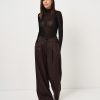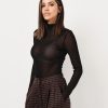 Body in tulle trasparente elasticizzato con collo a lupetto, manica lunga e chiusura regolabile.