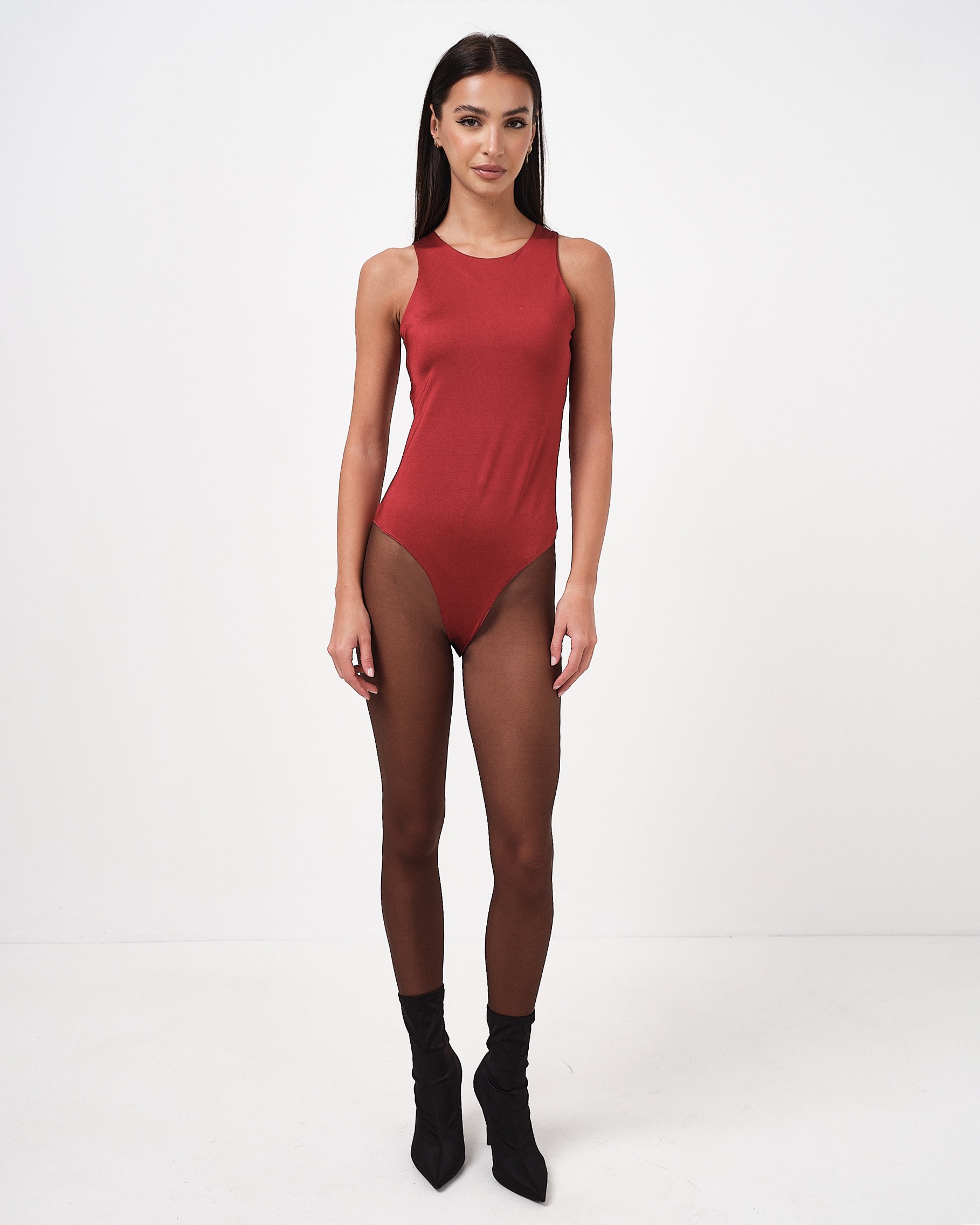 Body elasticizzato in lycra lucida con slip regolabili.