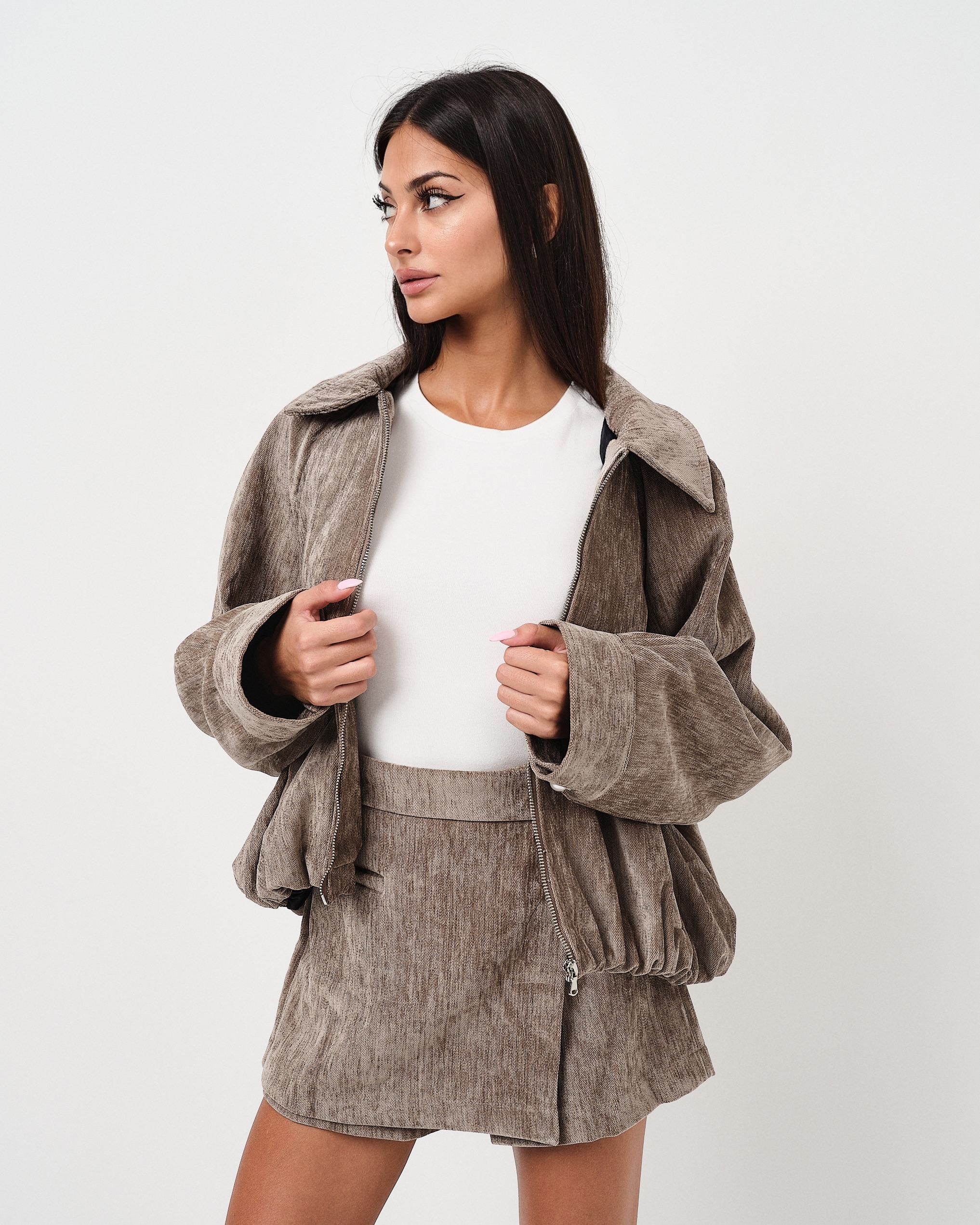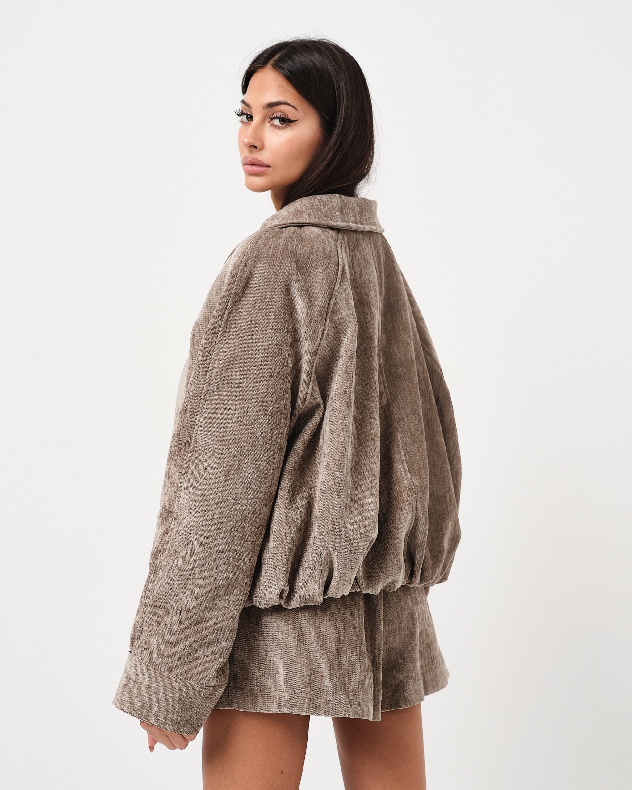 La modella è alta 1,63m e indossa la taglia UNI.