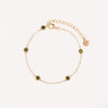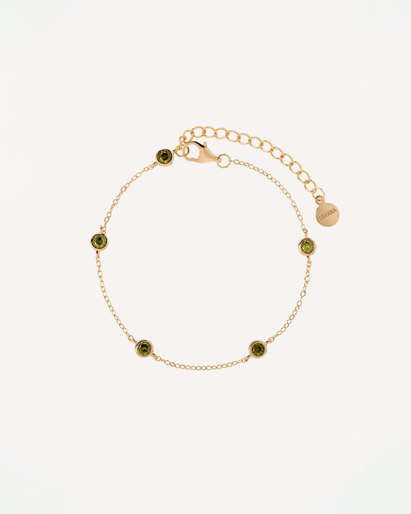 Bracciale con catena sottile e pietre di Peridoto rotonde. Chiusura con moschettone.