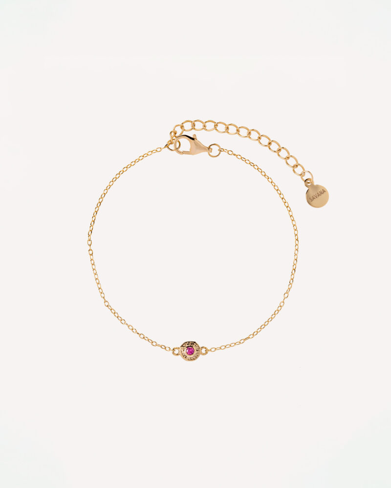 Bracciale a catenella sottile con pietra Granato incastonata a mano. Chiusura a moschettone.