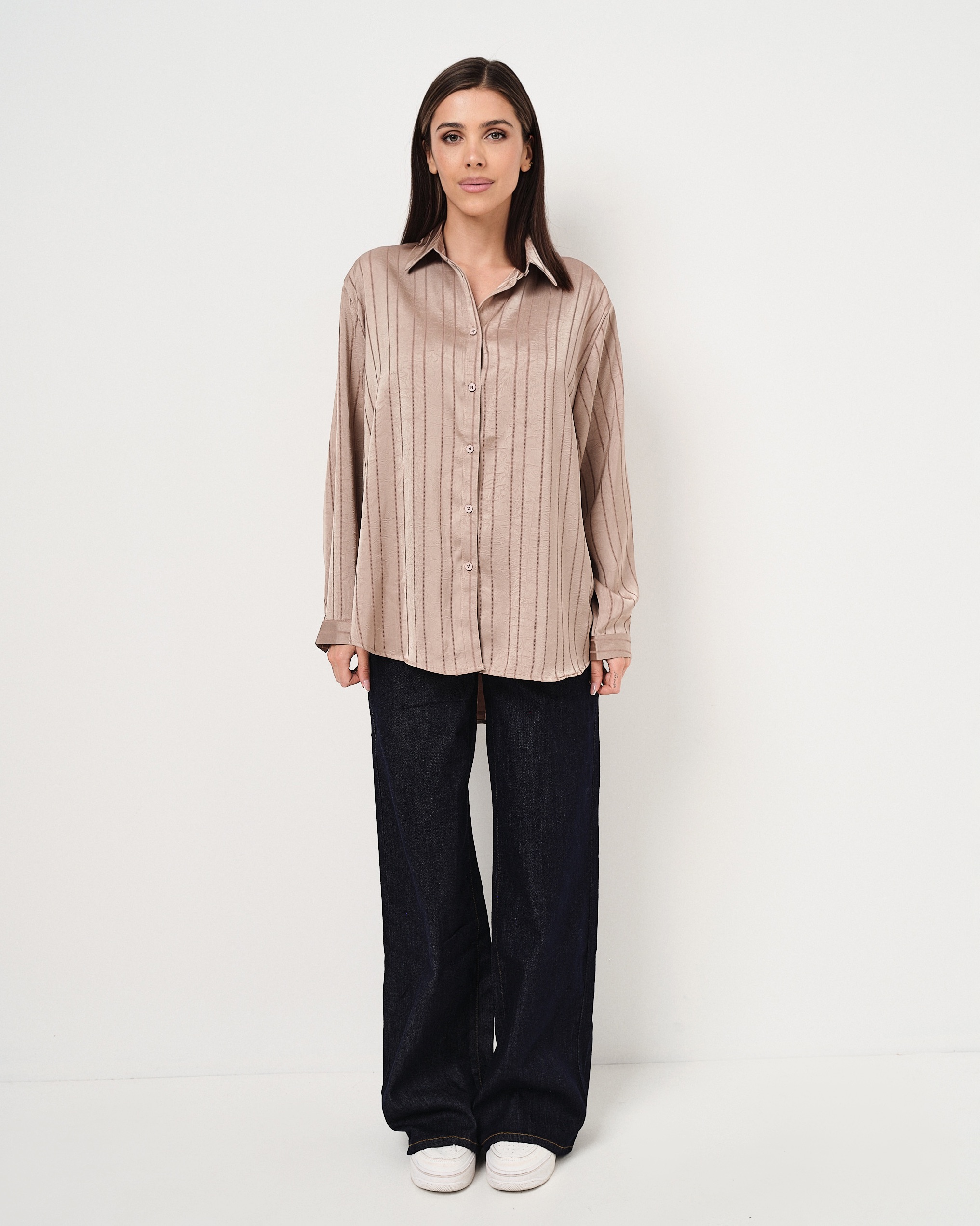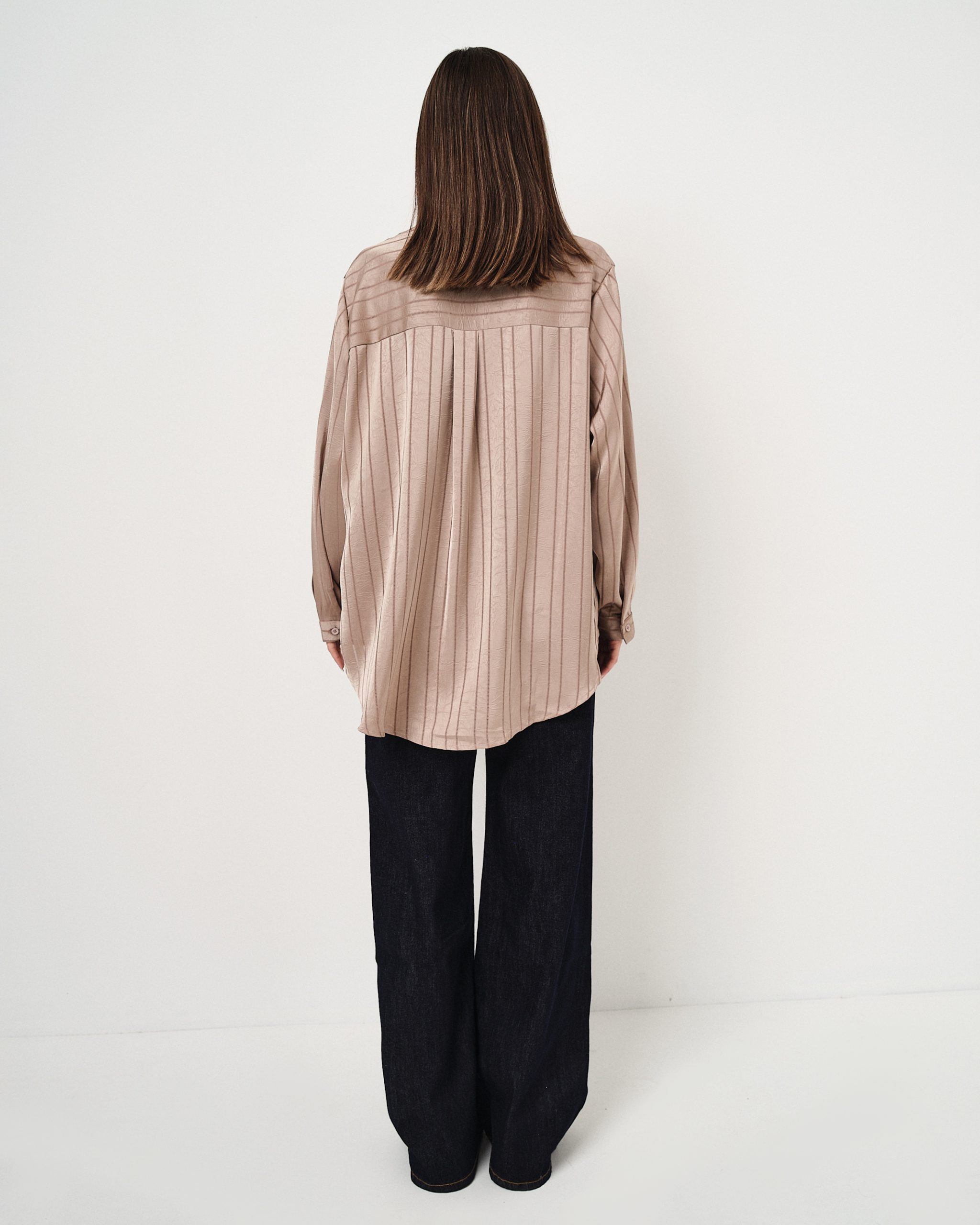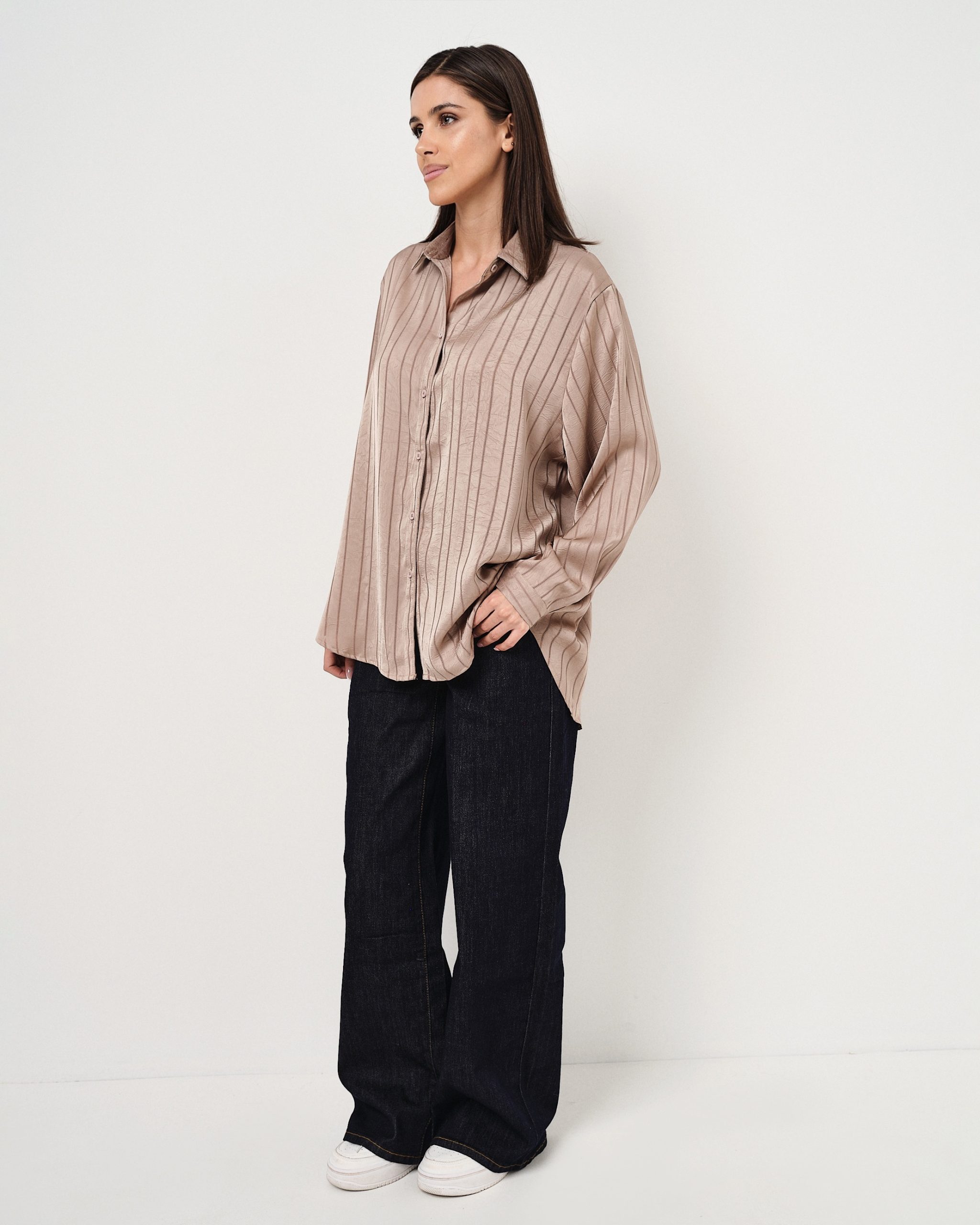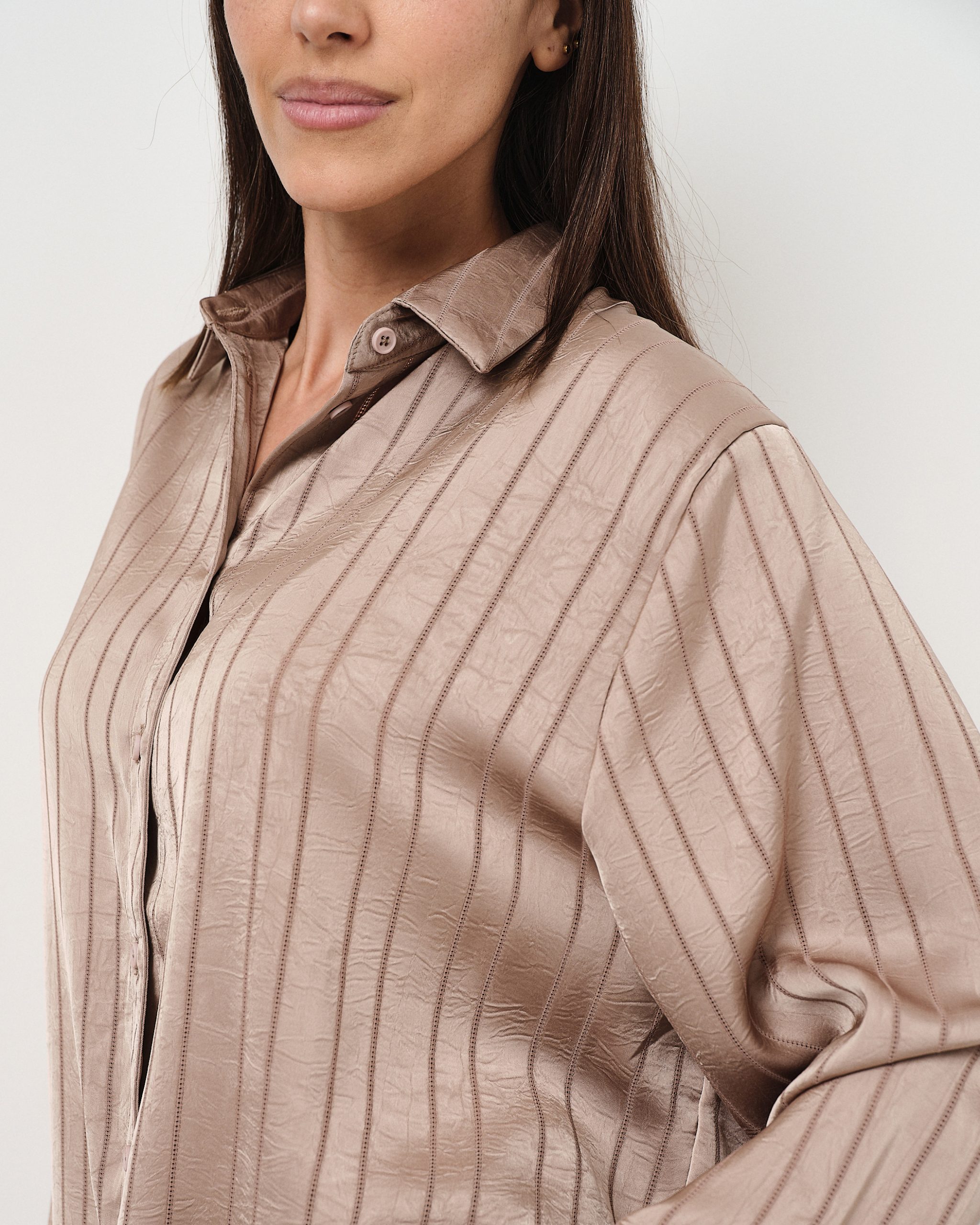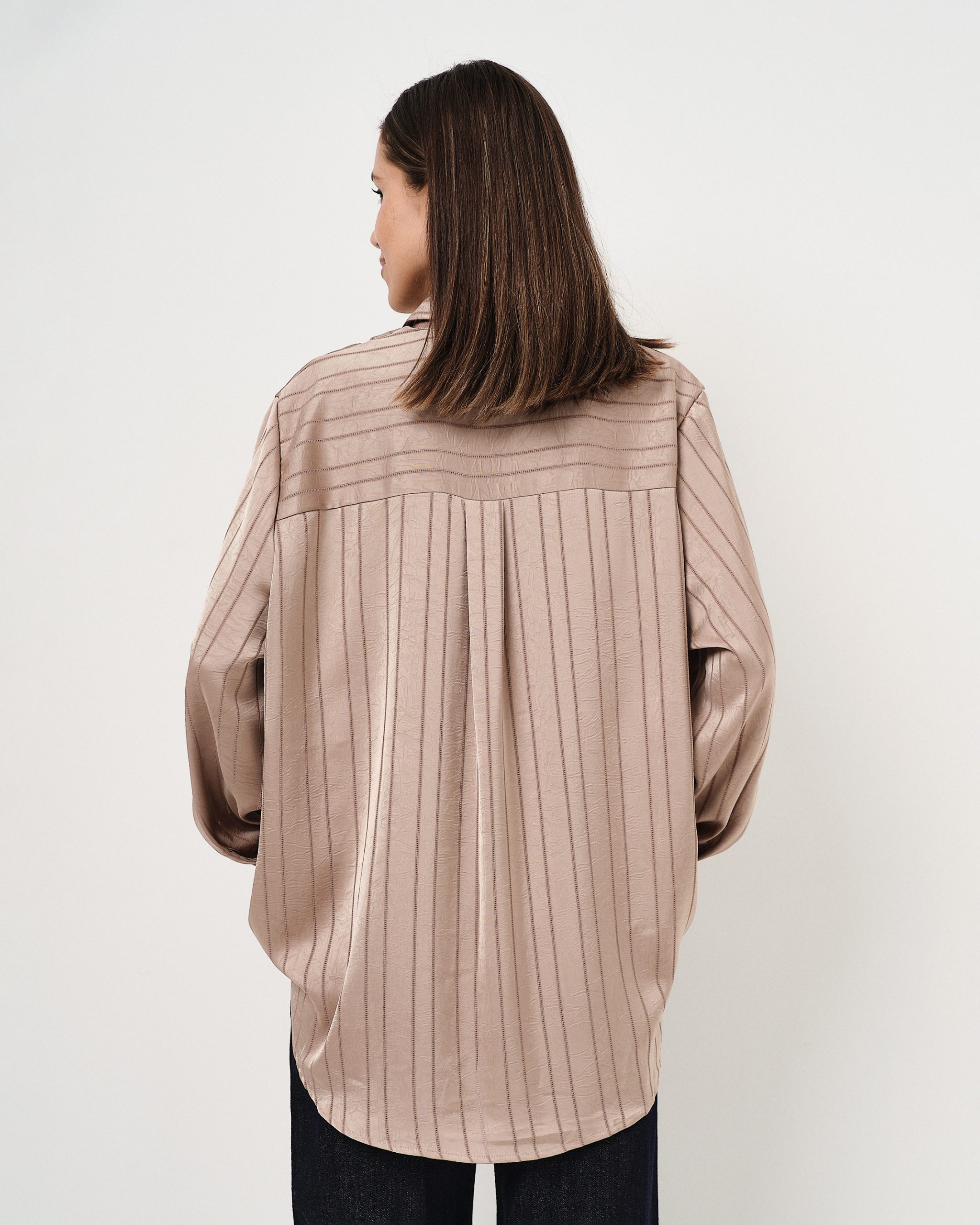 Camicia leggera in satin oversize con righe tono su tono in lurex.