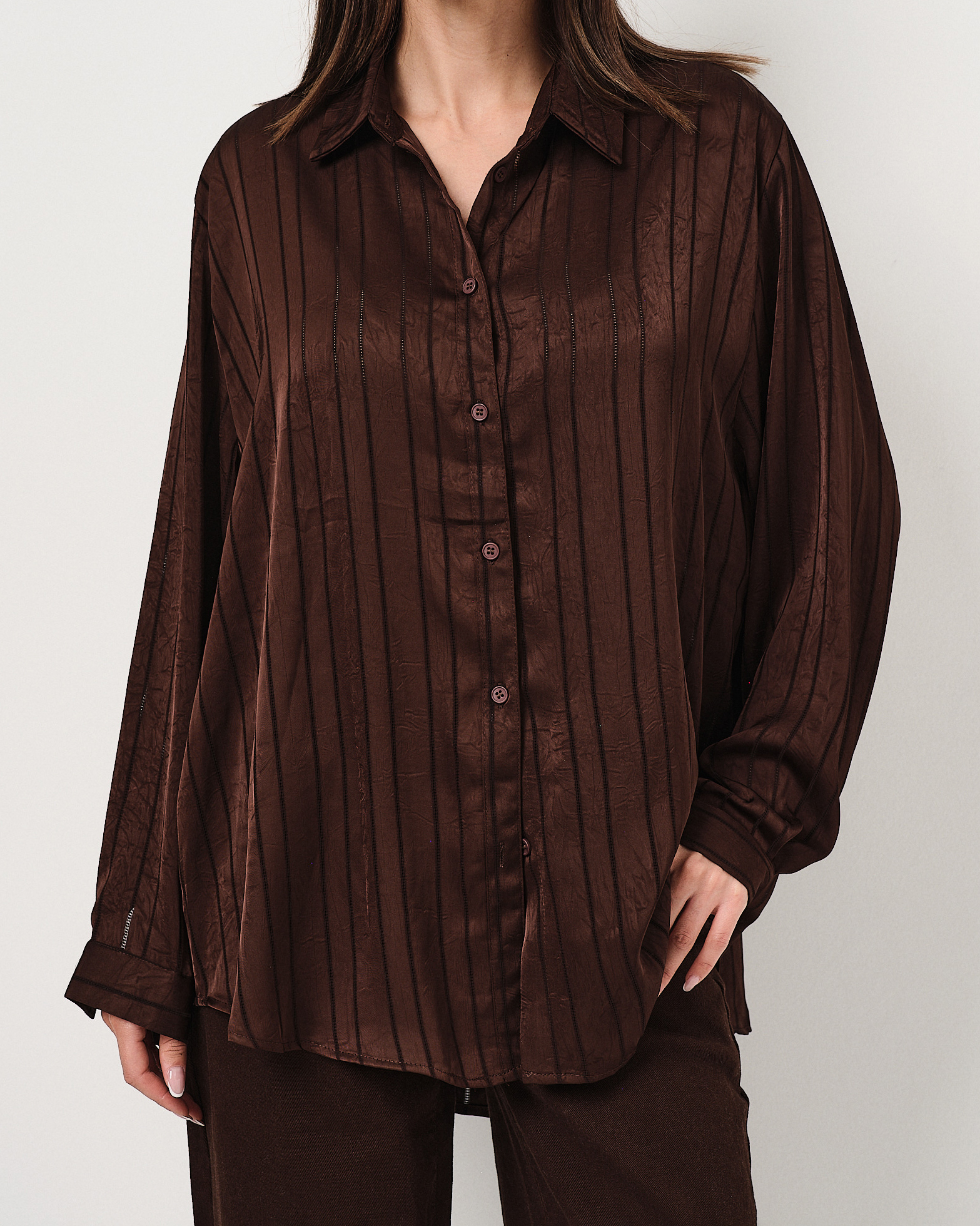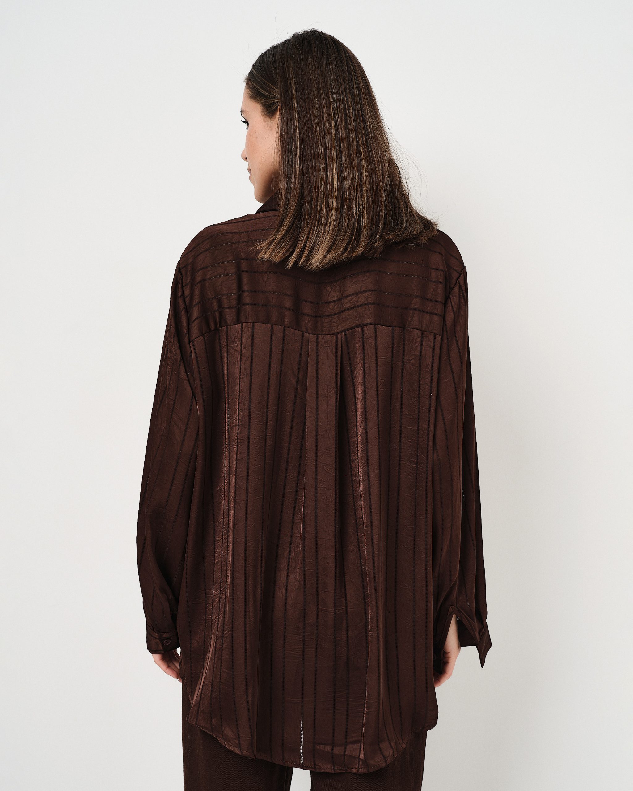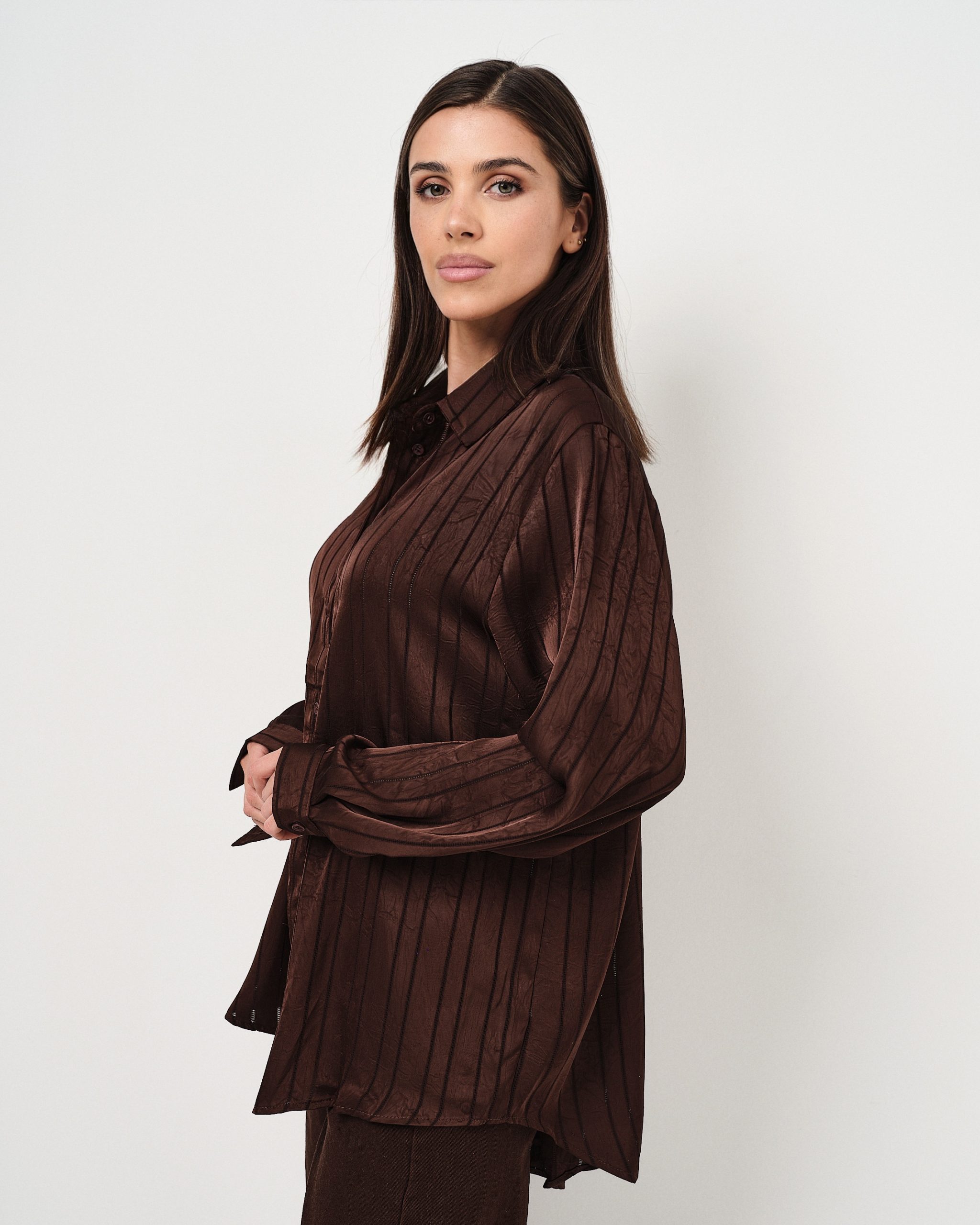 Camicia leggera in satin oversize con righe tono su tono in lurex.