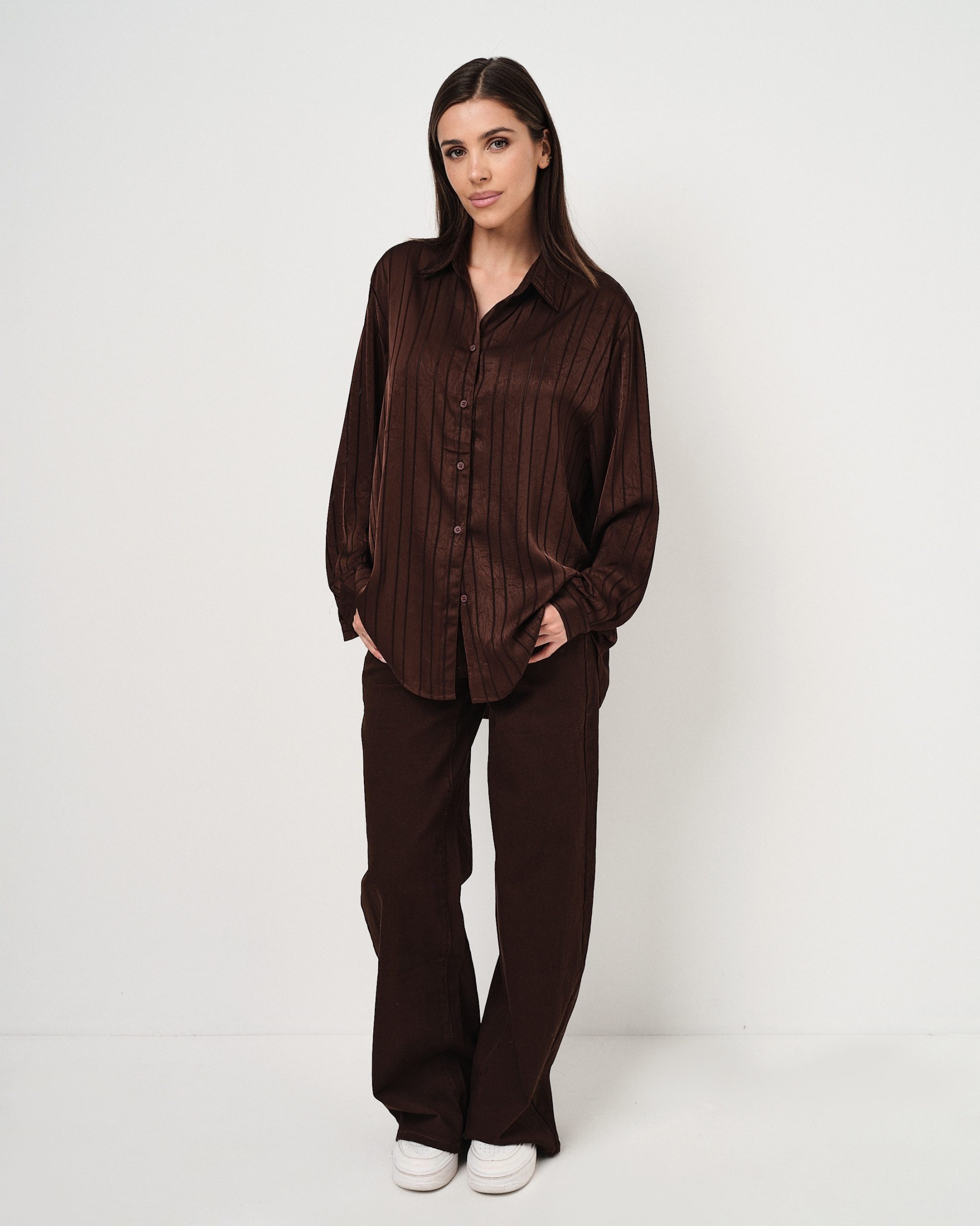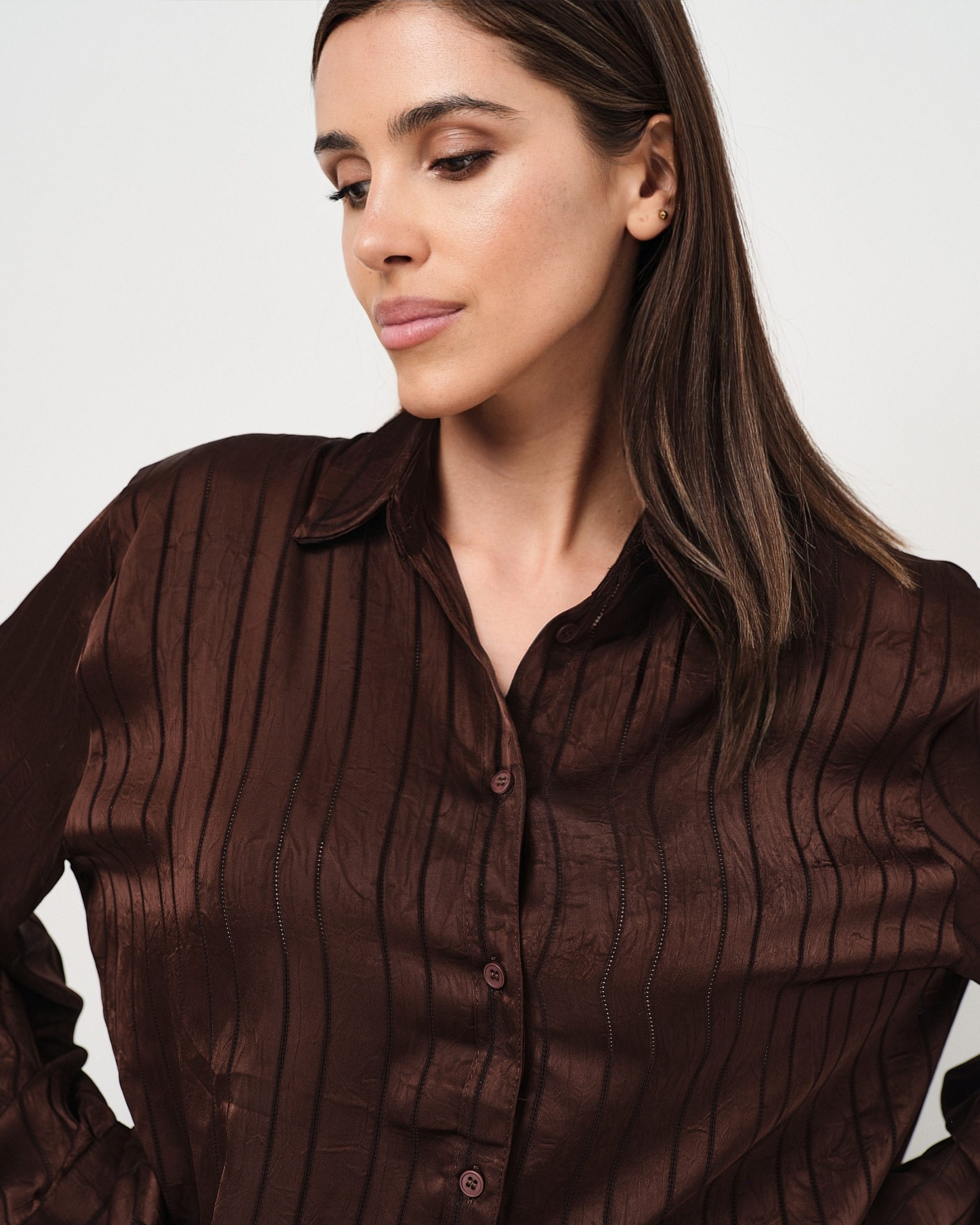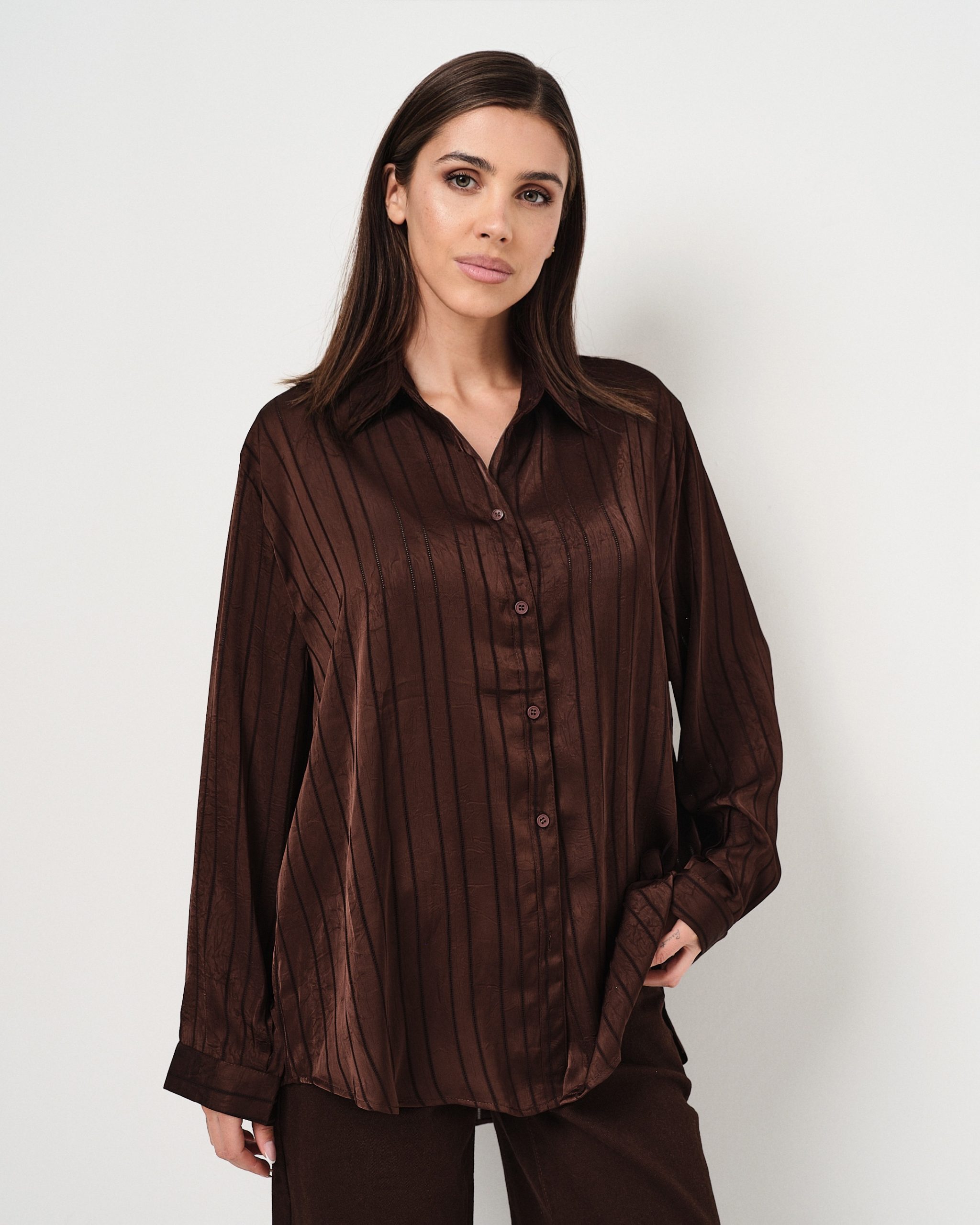 Camicia leggera in satin oversize con righe tono su tono in lurex.