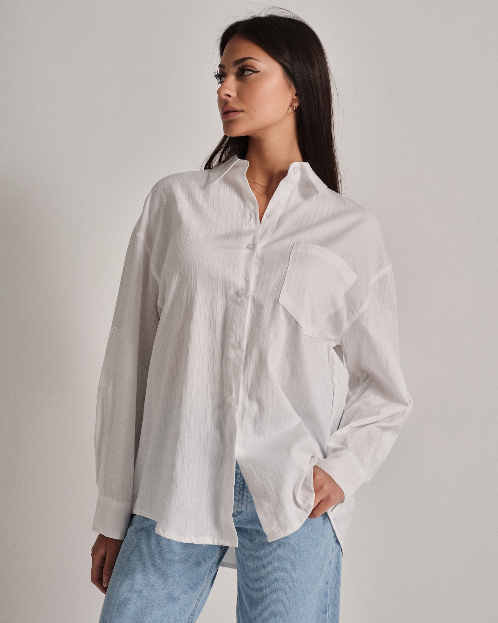 Camicia oversize in puro cotone effetto gessato con righe tono su tono.
