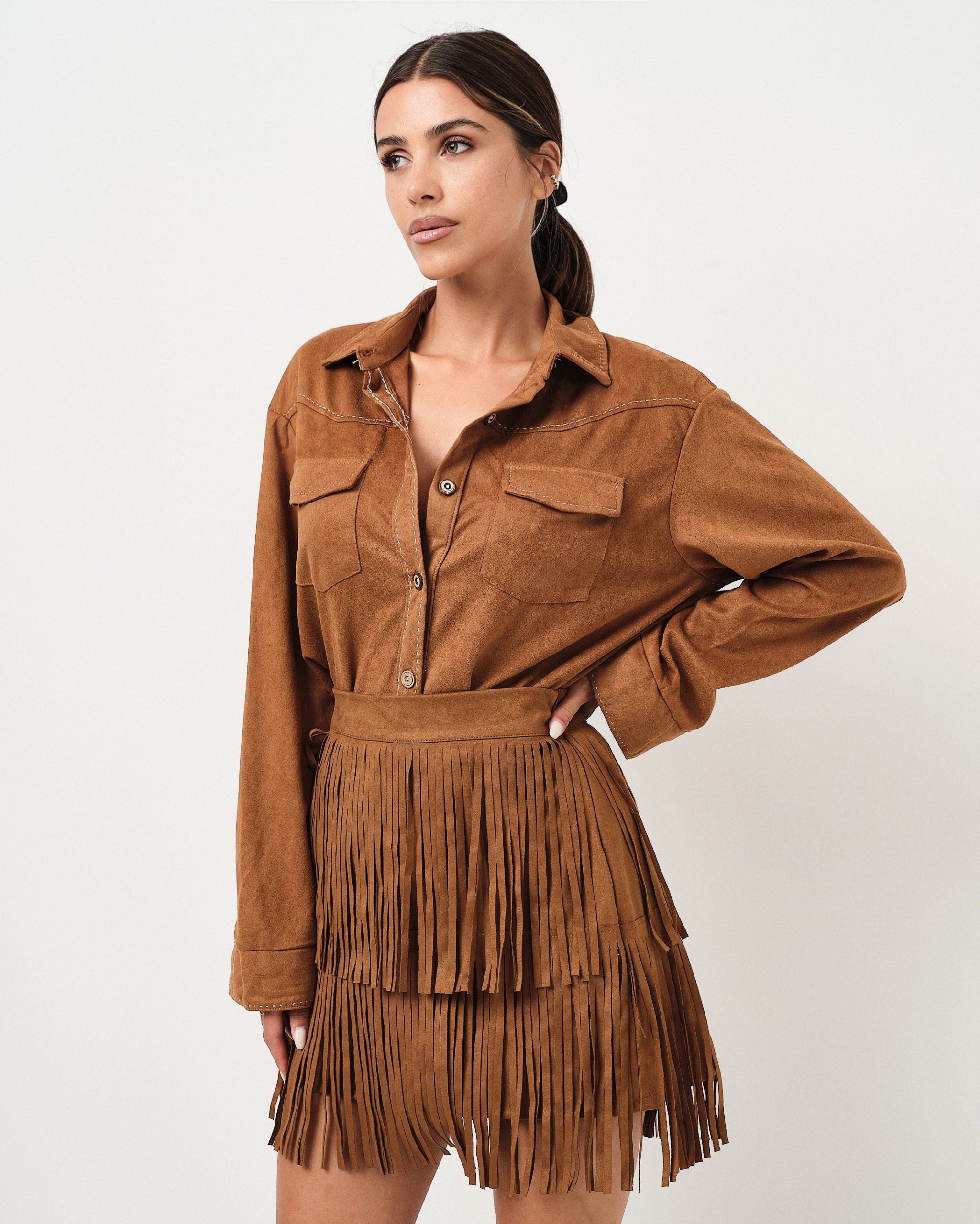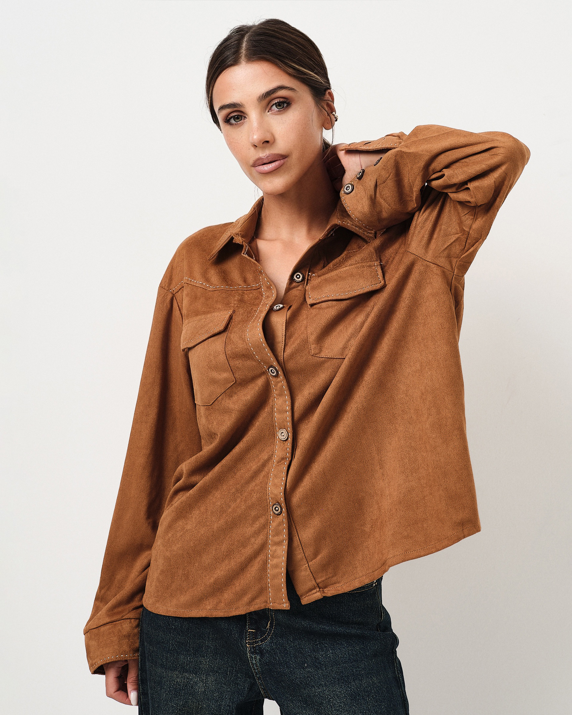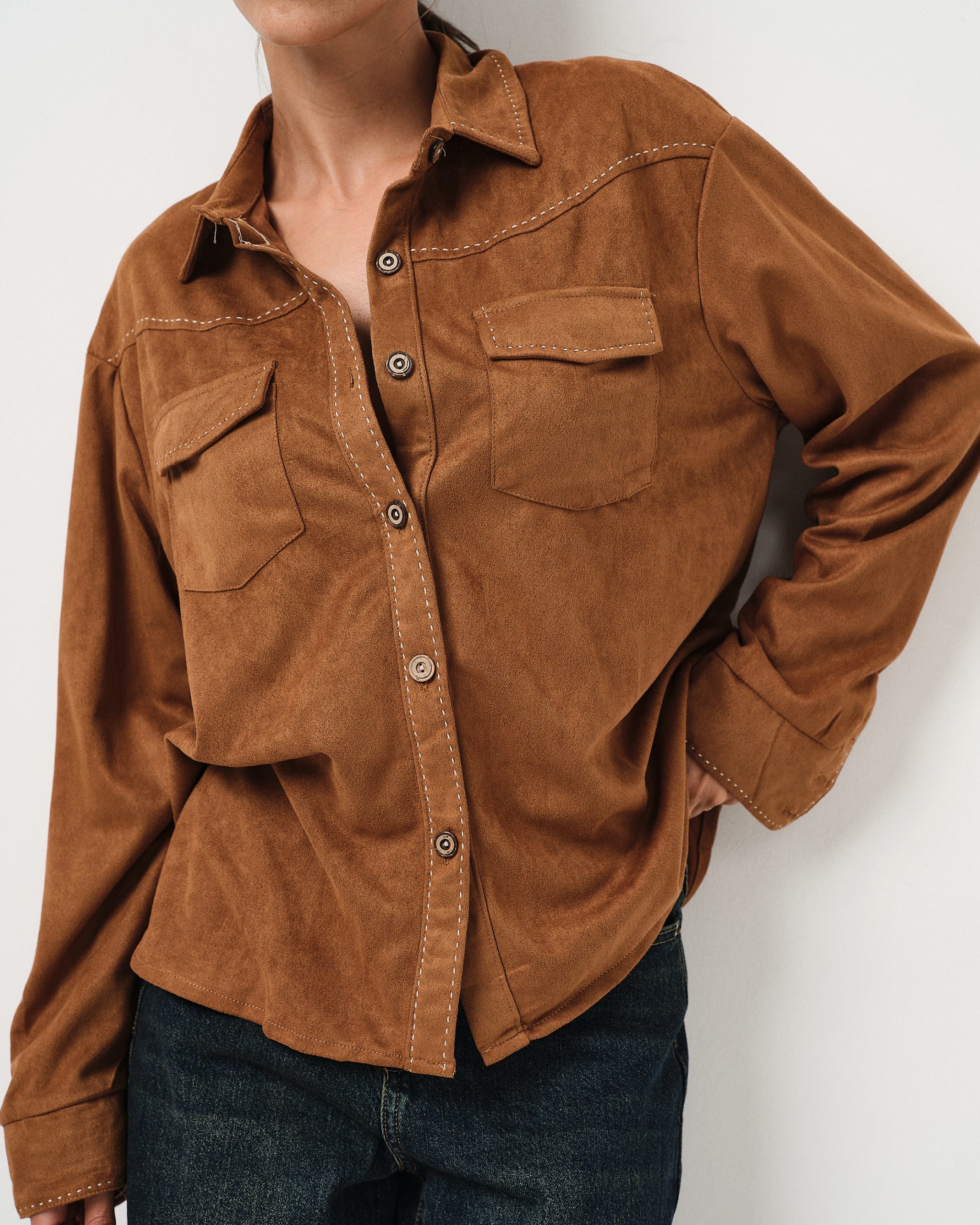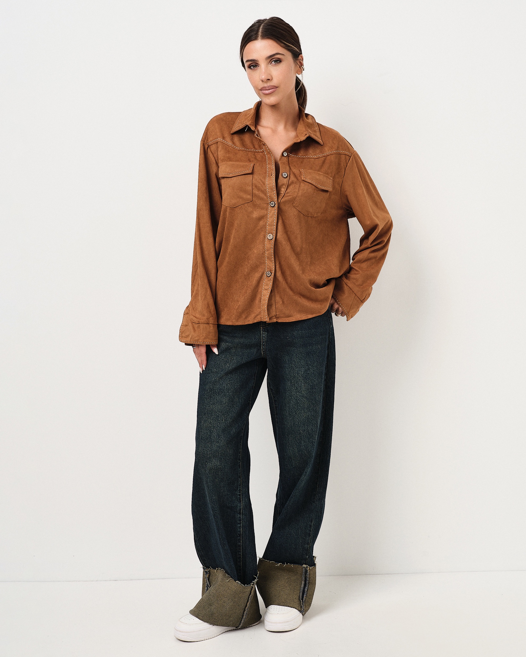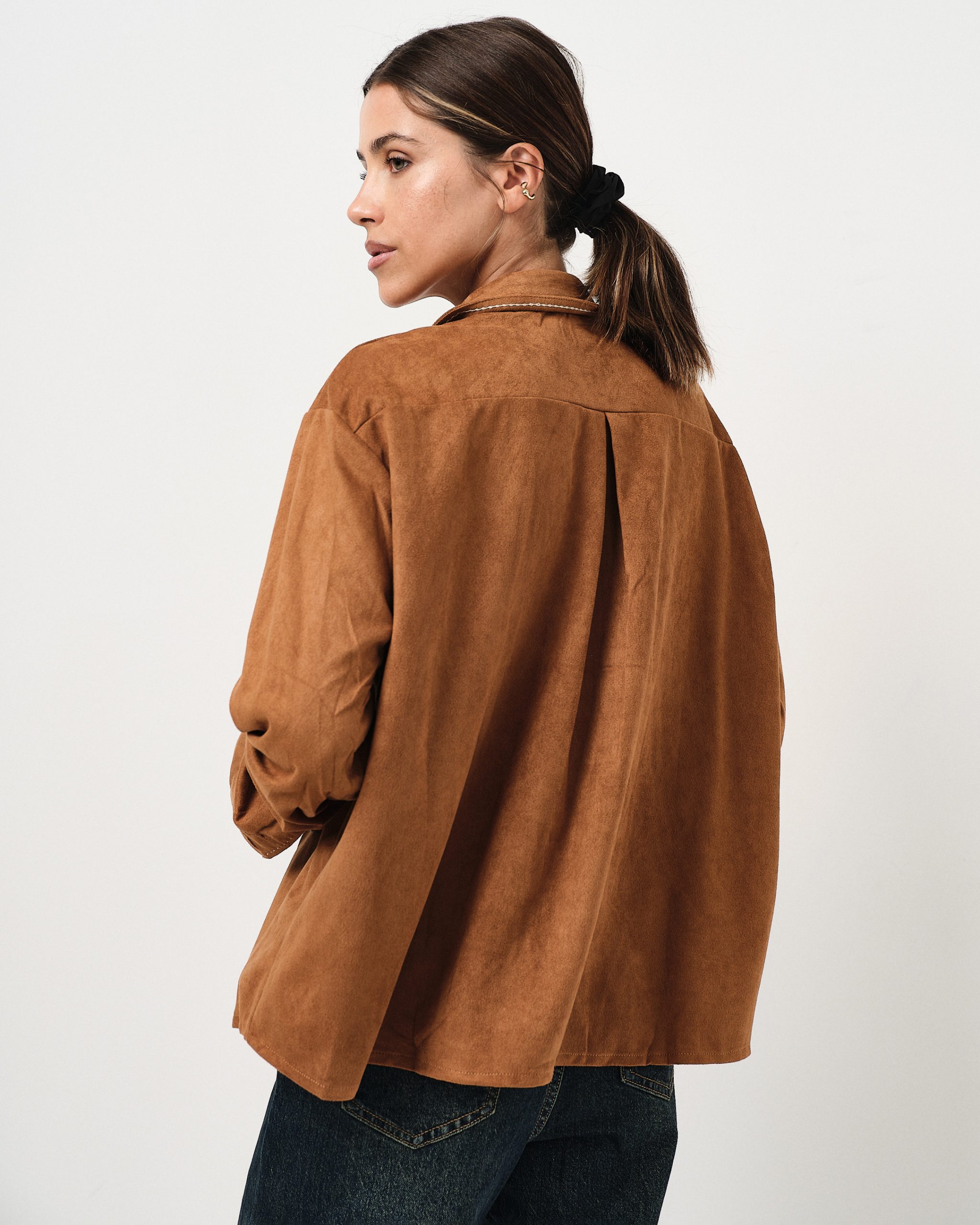 Camicia leggera regular fit in suede con taschine sul davanti ed impunture a contrasto.