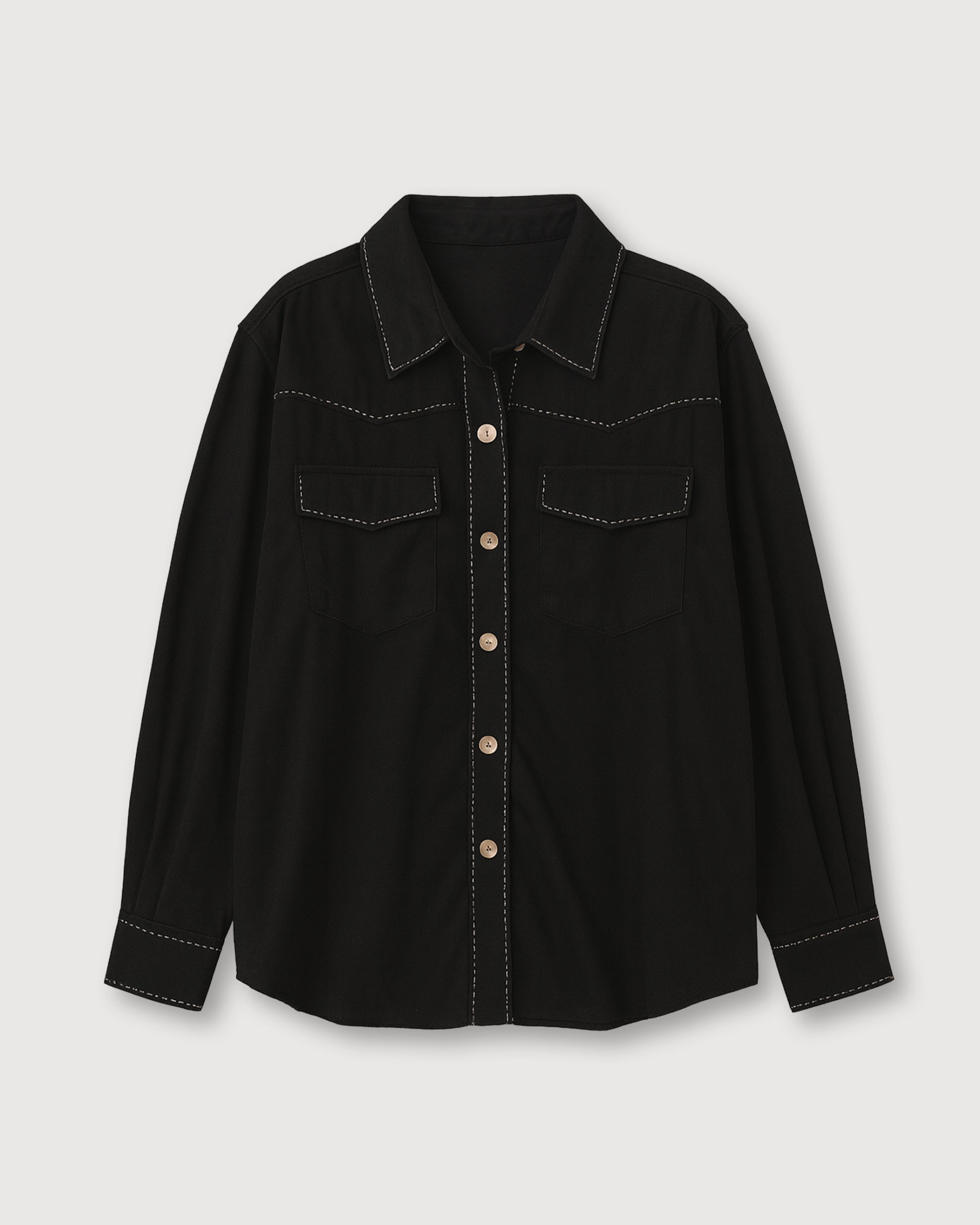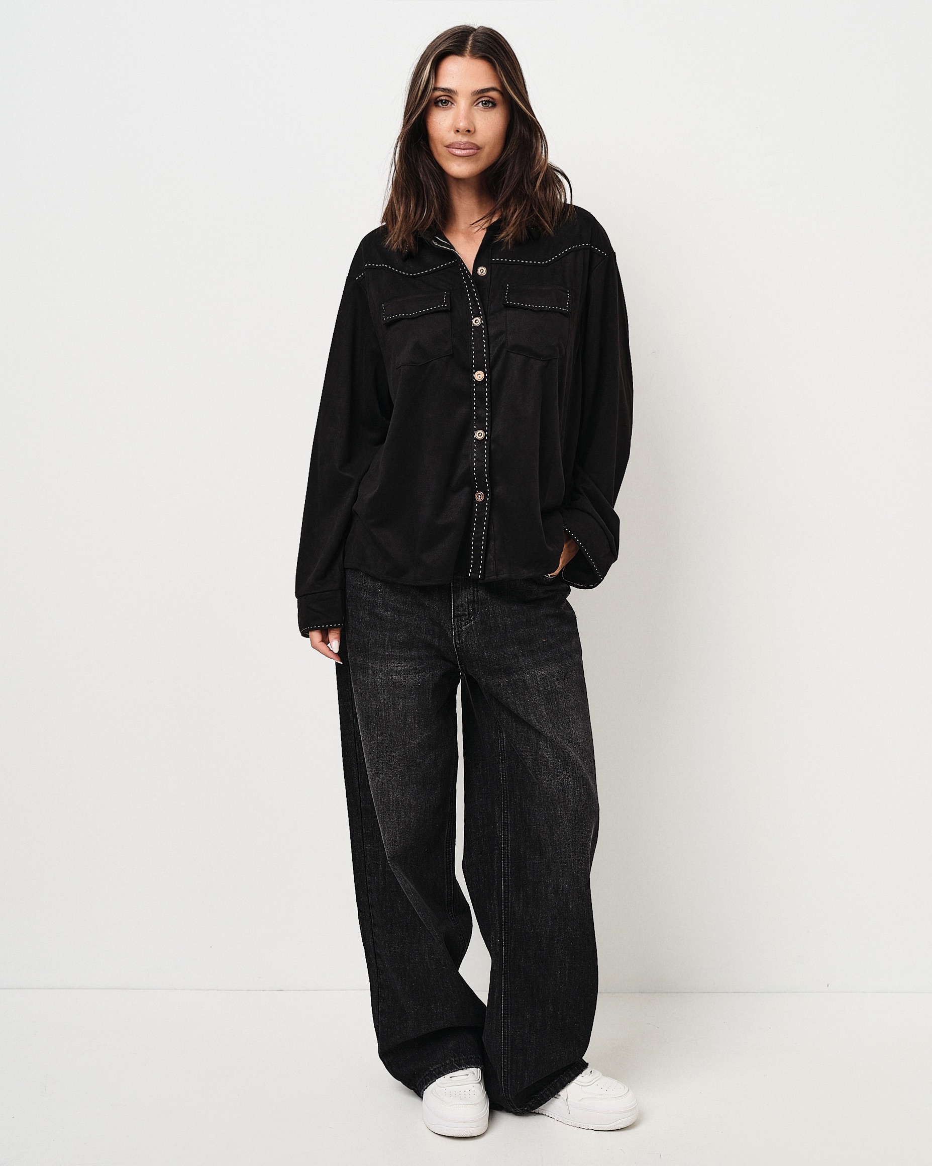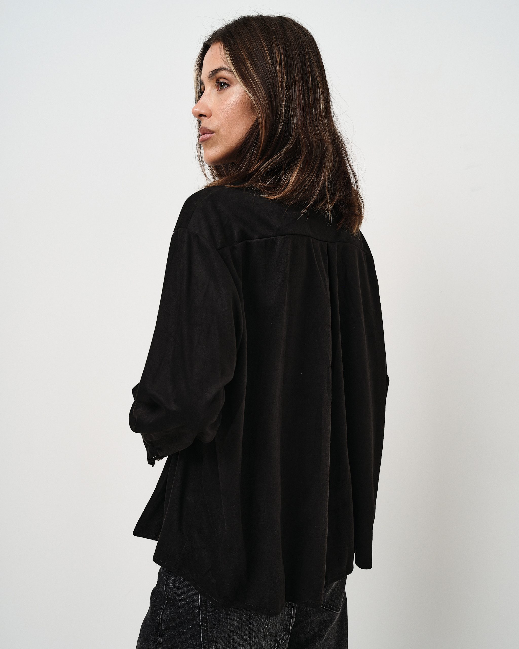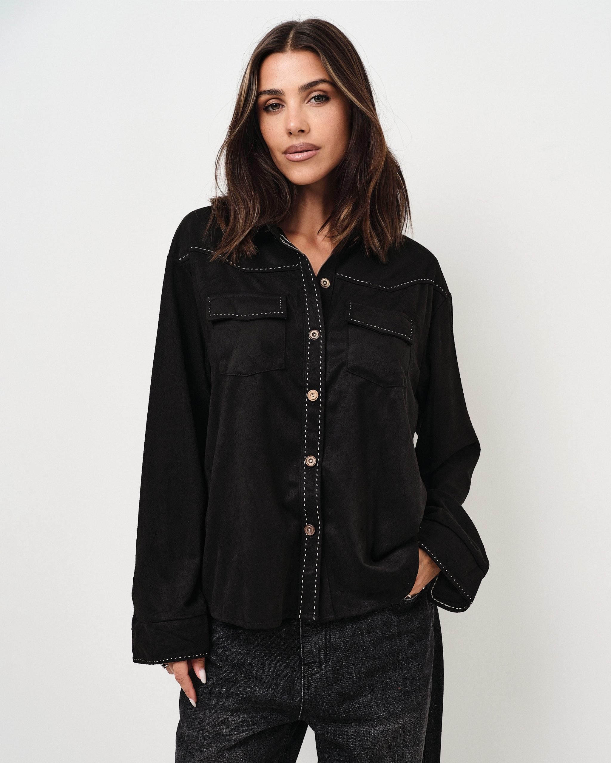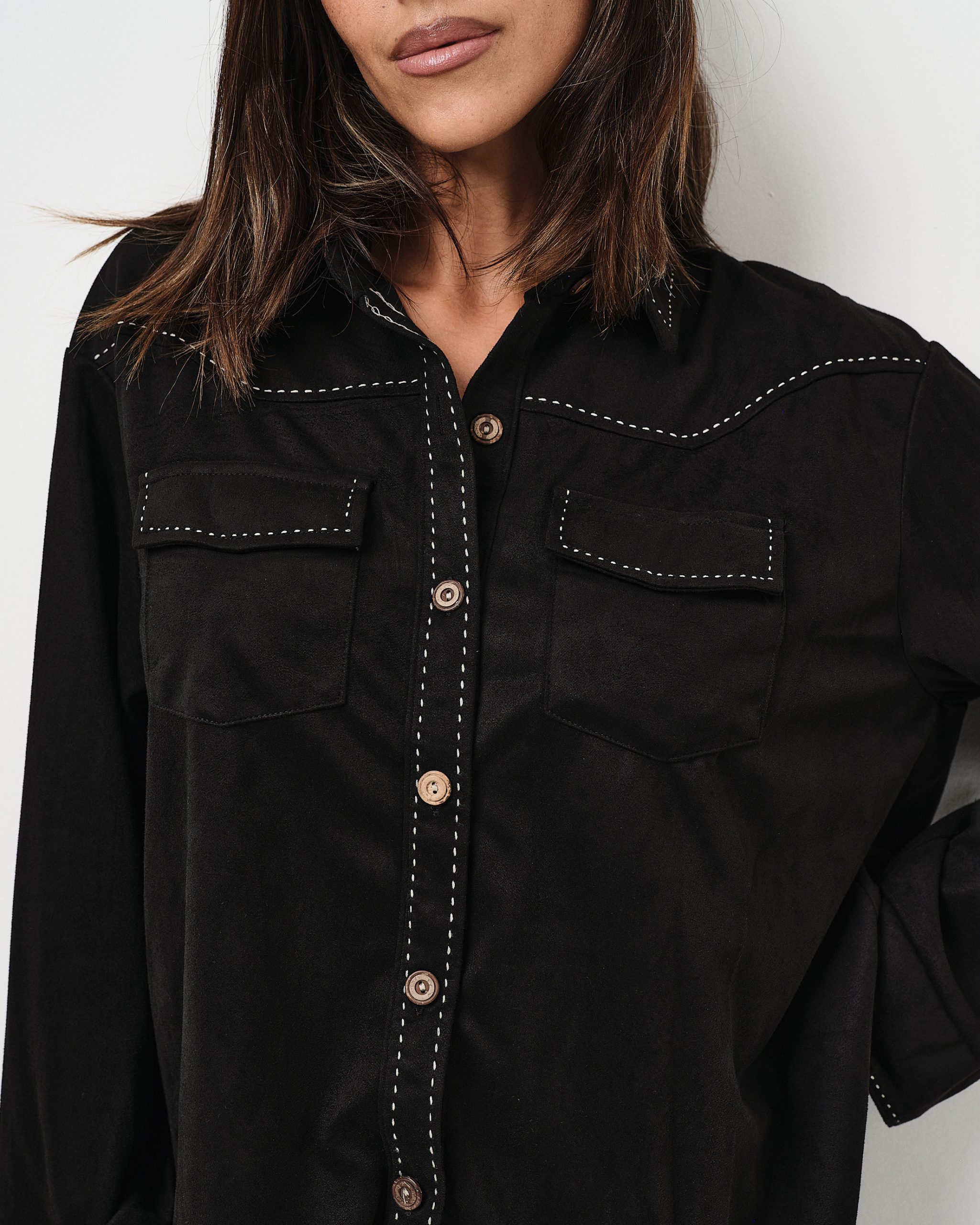 Camicia leggera regular fit in suede con taschine sul davanti ed impunture a contrasto.