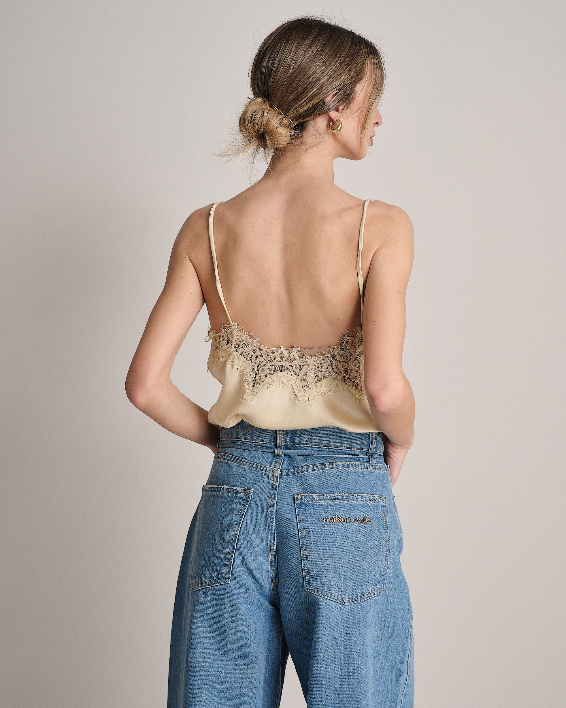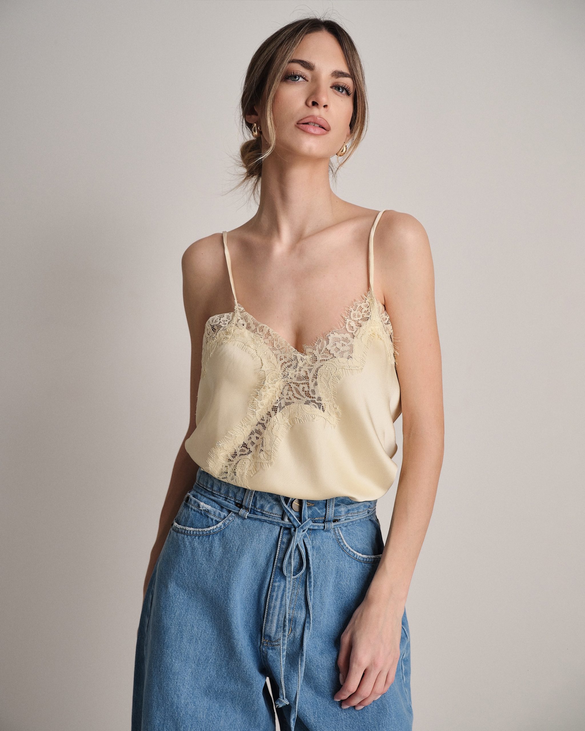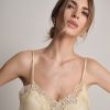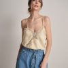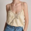 Canotta in raso scollata con pizzo e fondo svasato.