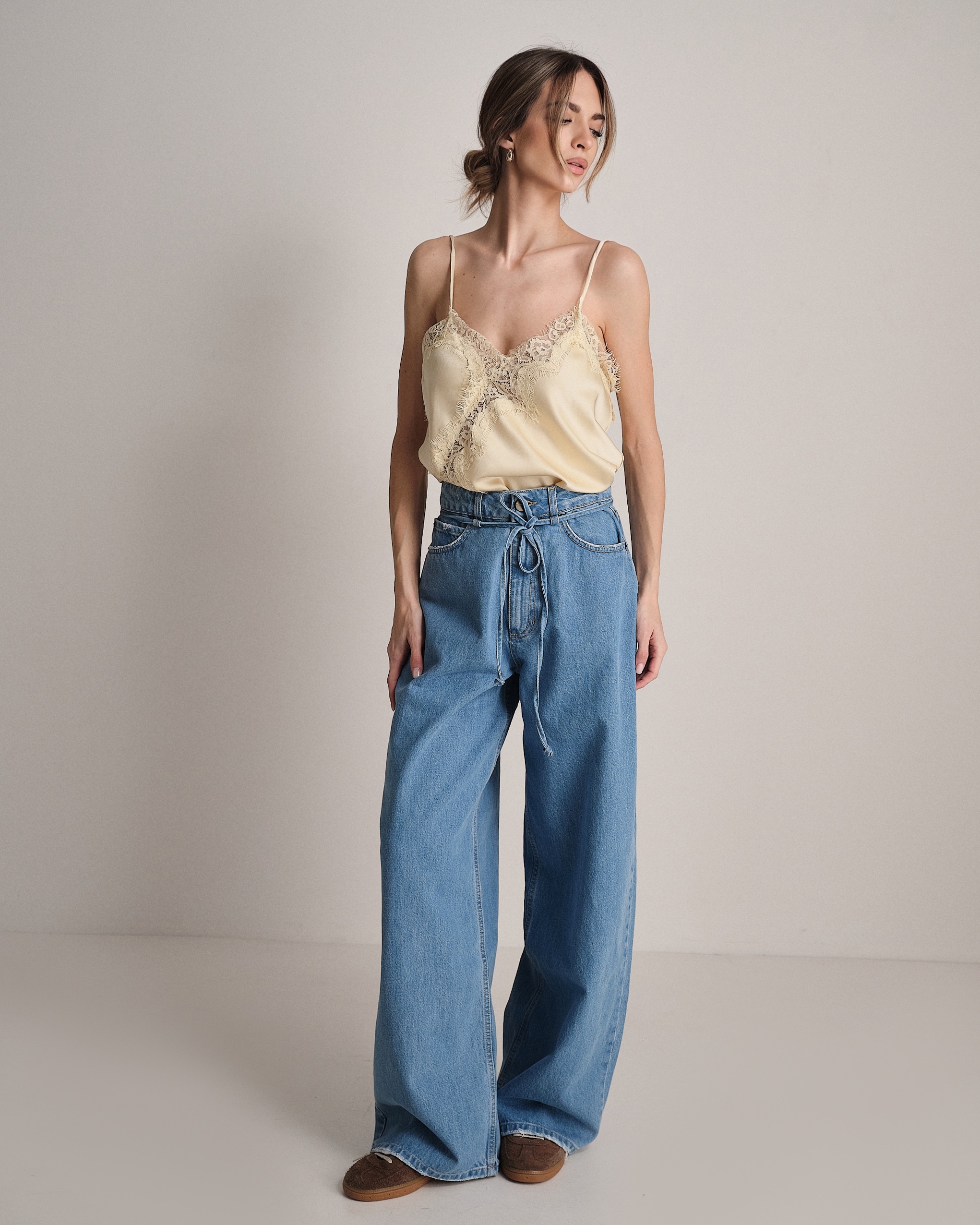 Canotta svasata in raso e pizzo