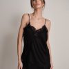Canotta in raso scollata con pizzo e fondo svasato.
