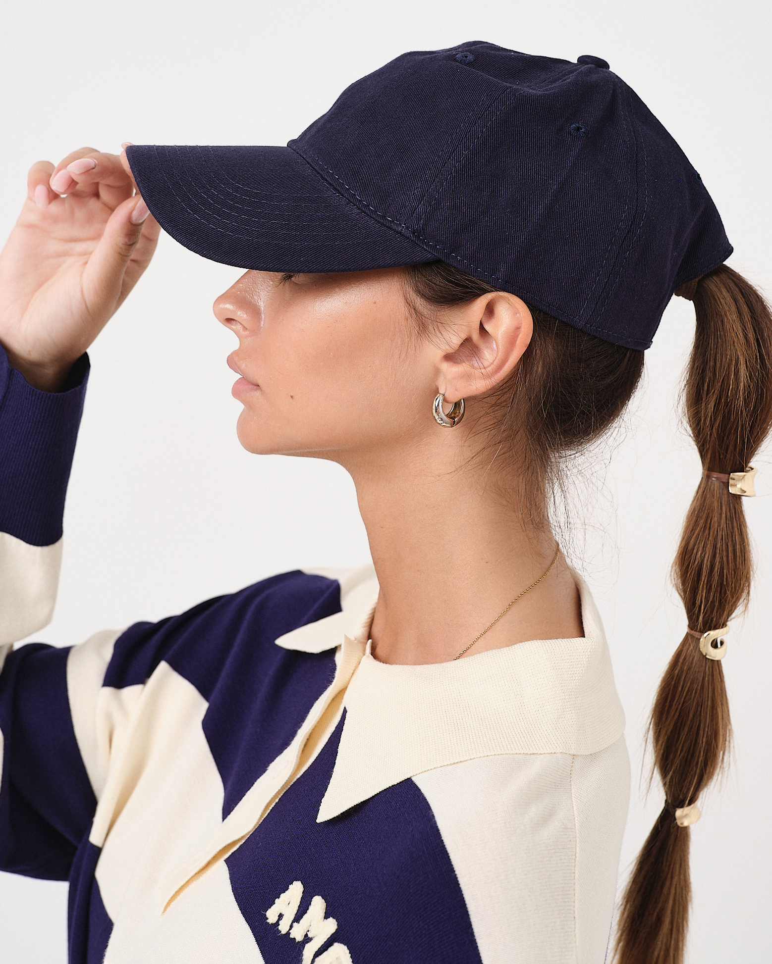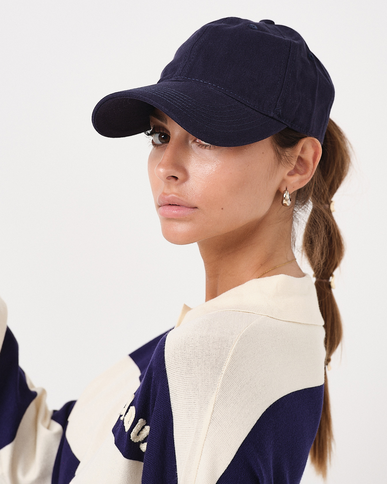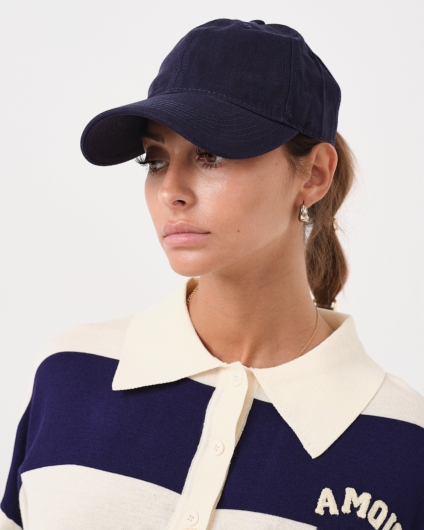 Cappello basic in cotone con frontino e chiusura regolabile.