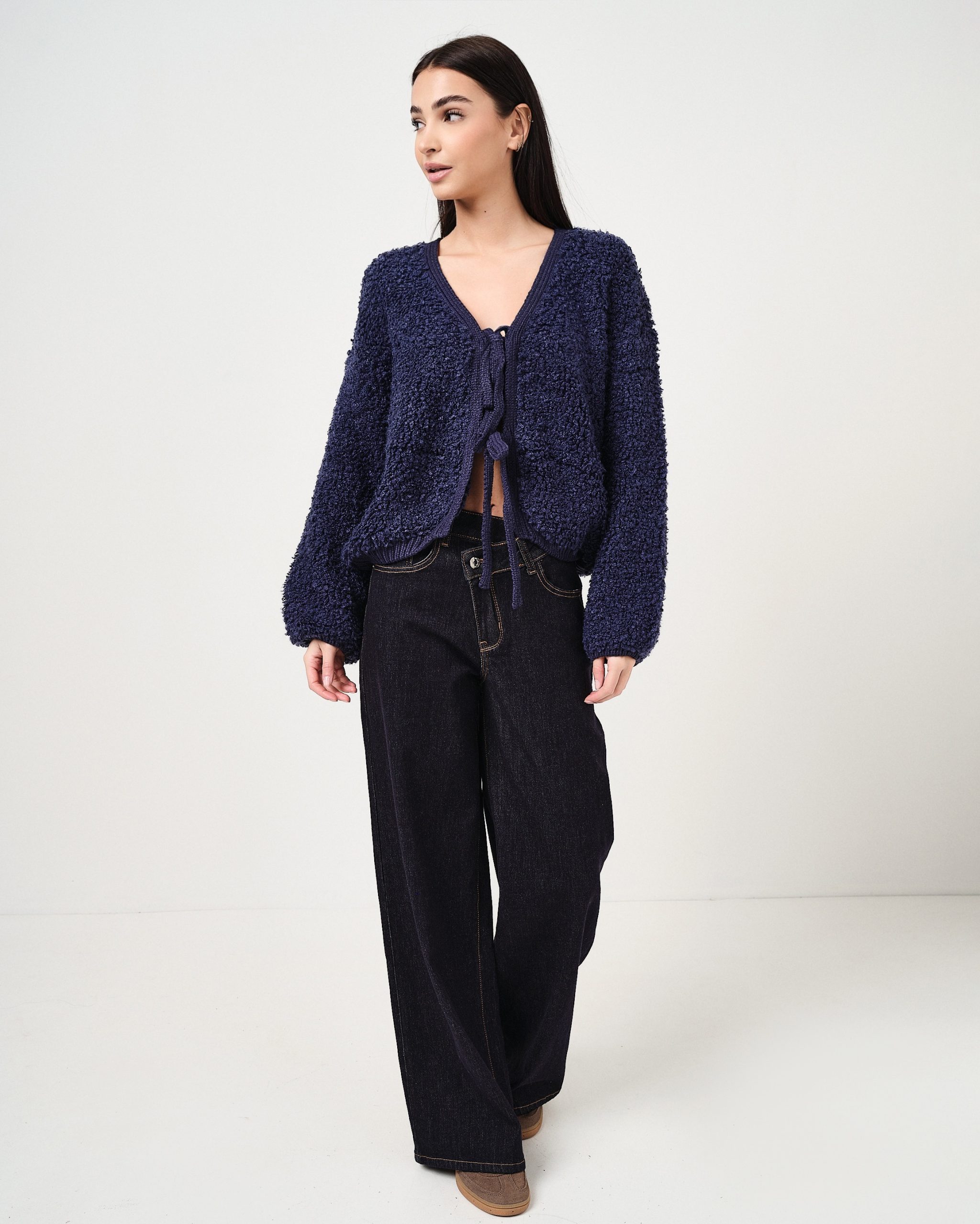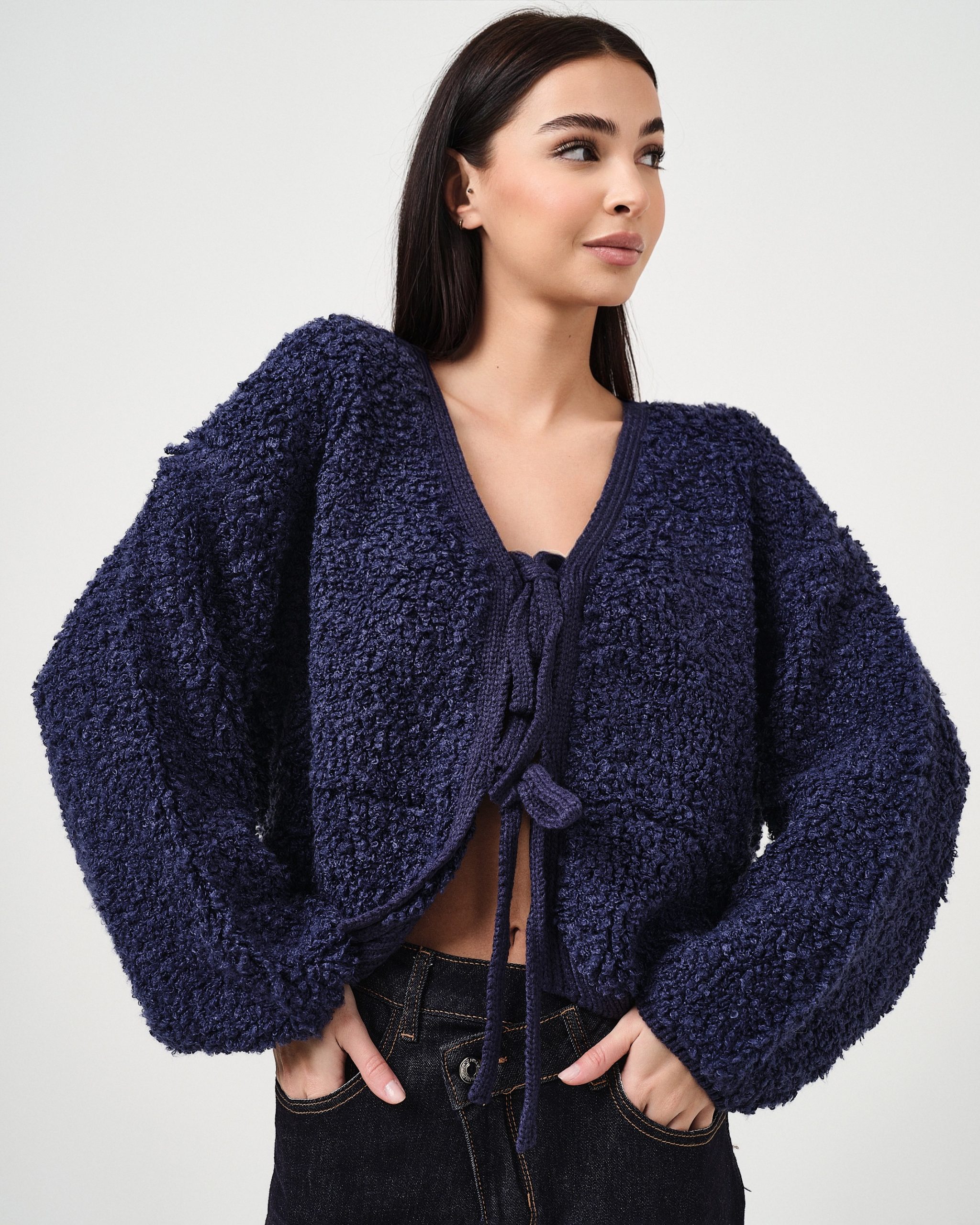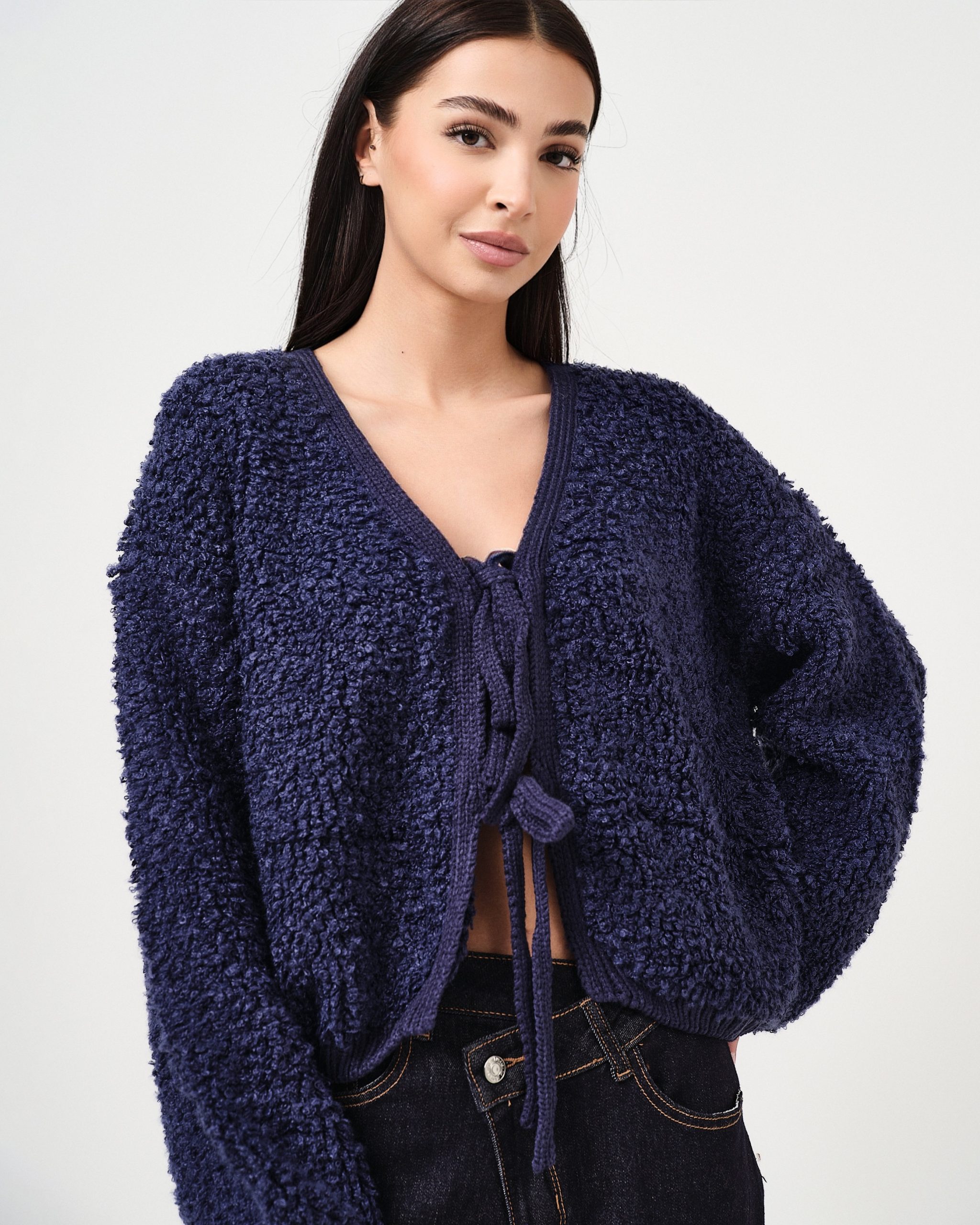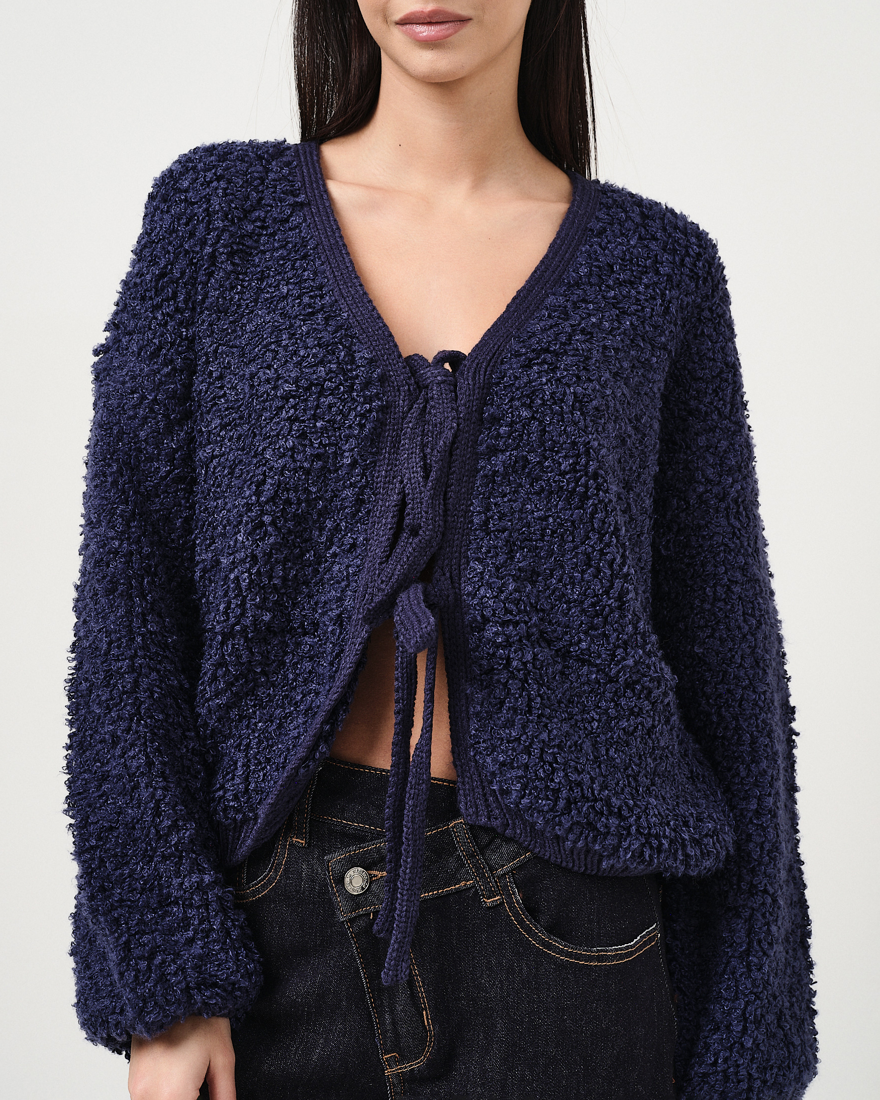 Cardigan in bouclé con fiocchi