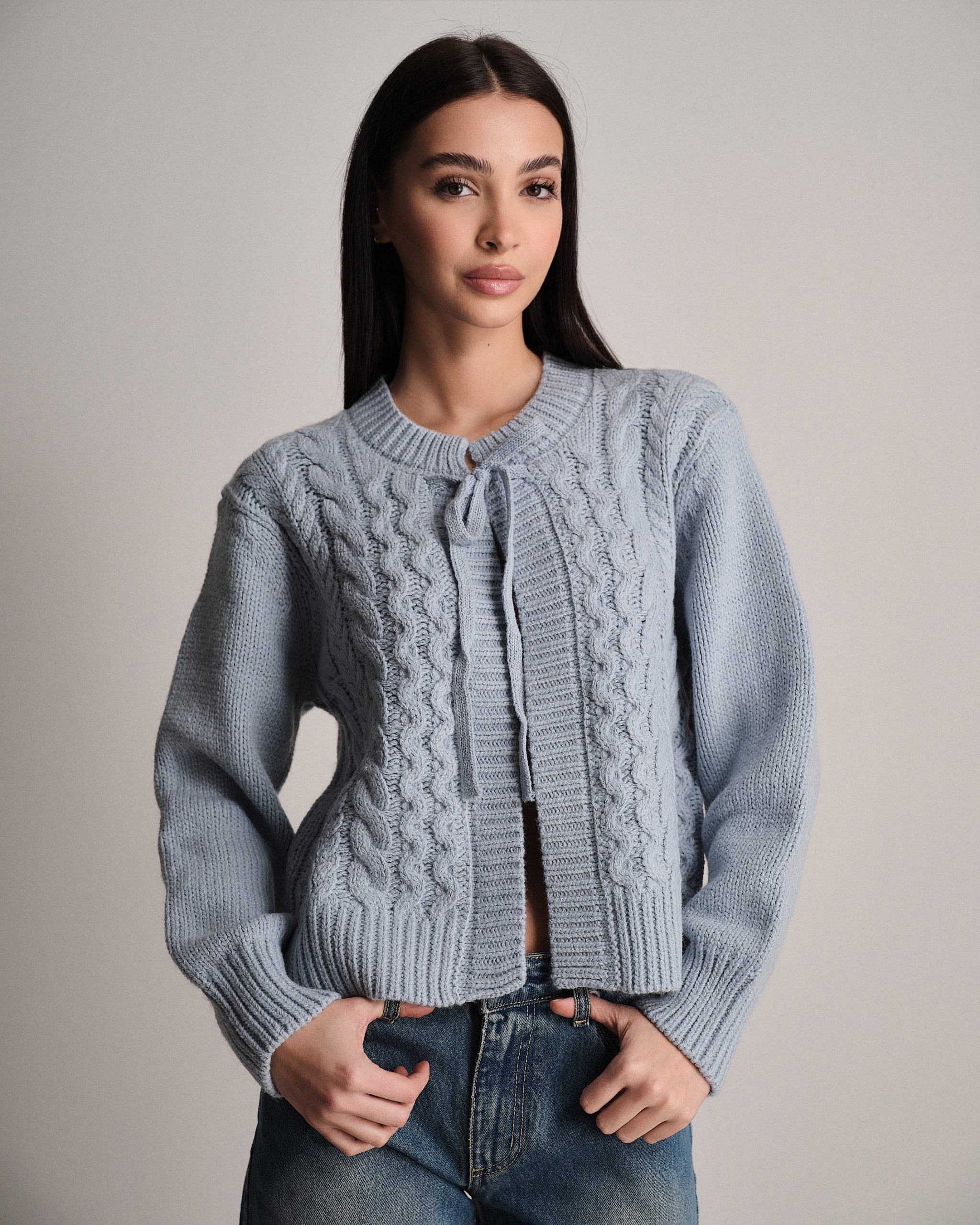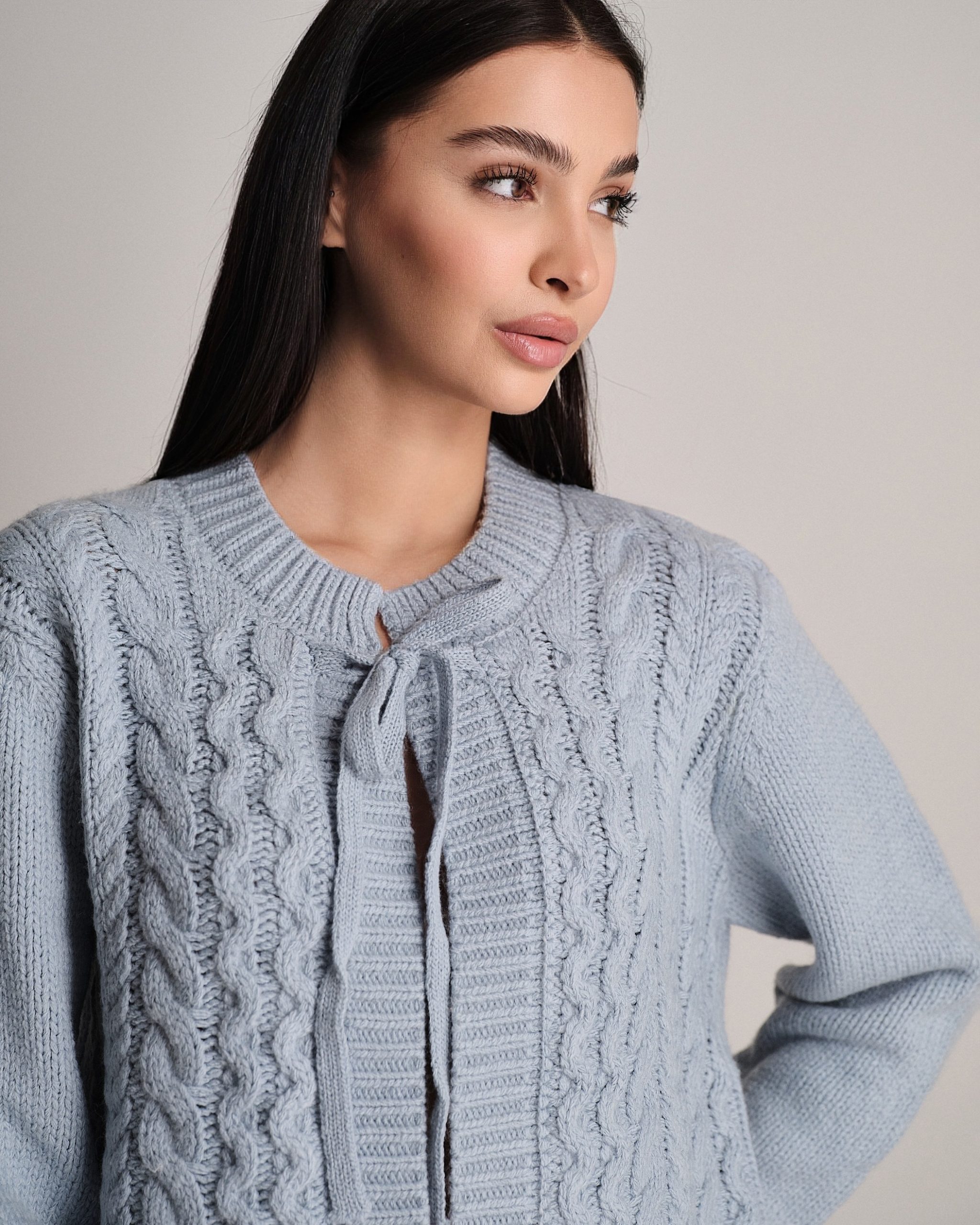 Pullover in misto lana con fiocco e trama a trecce.