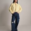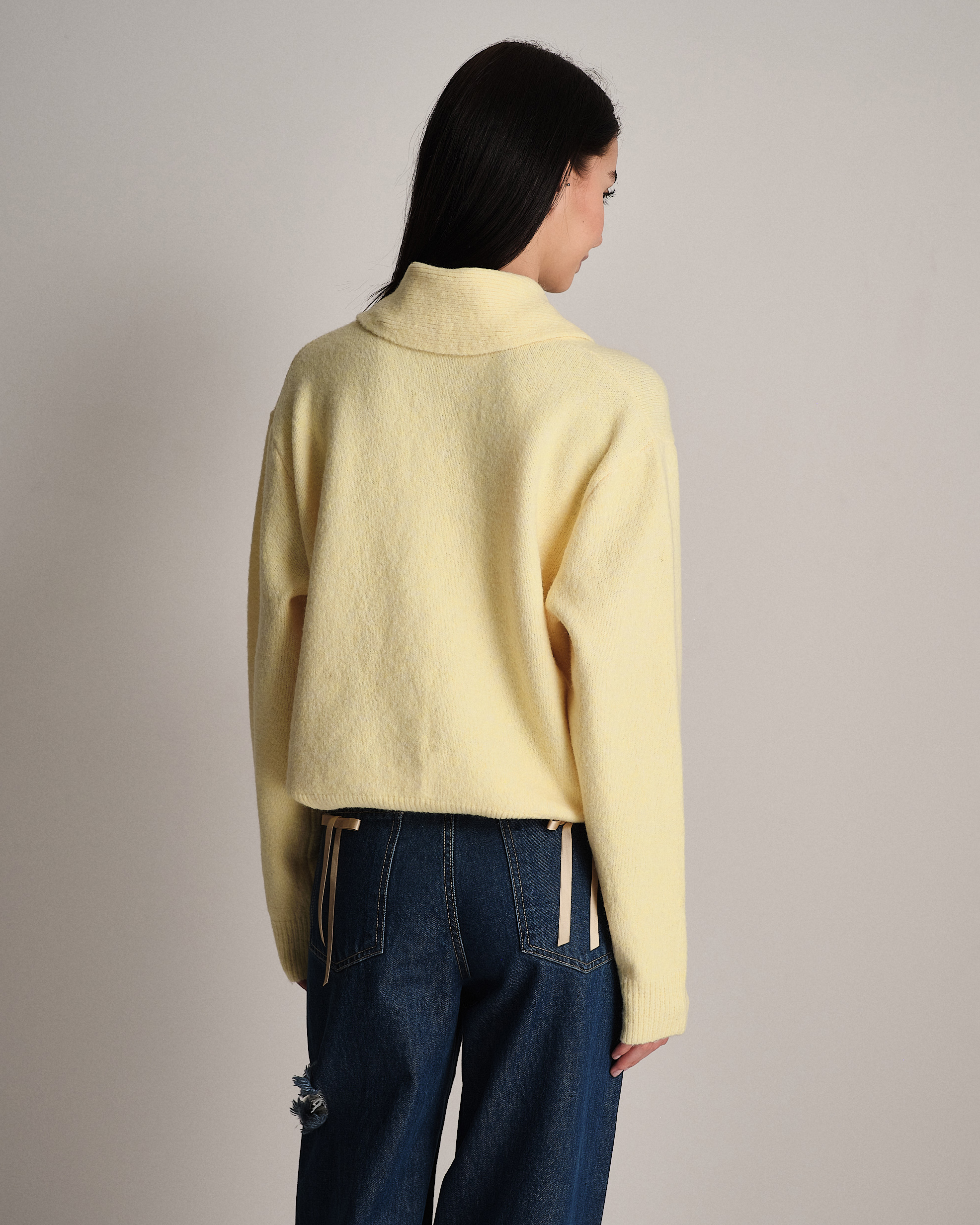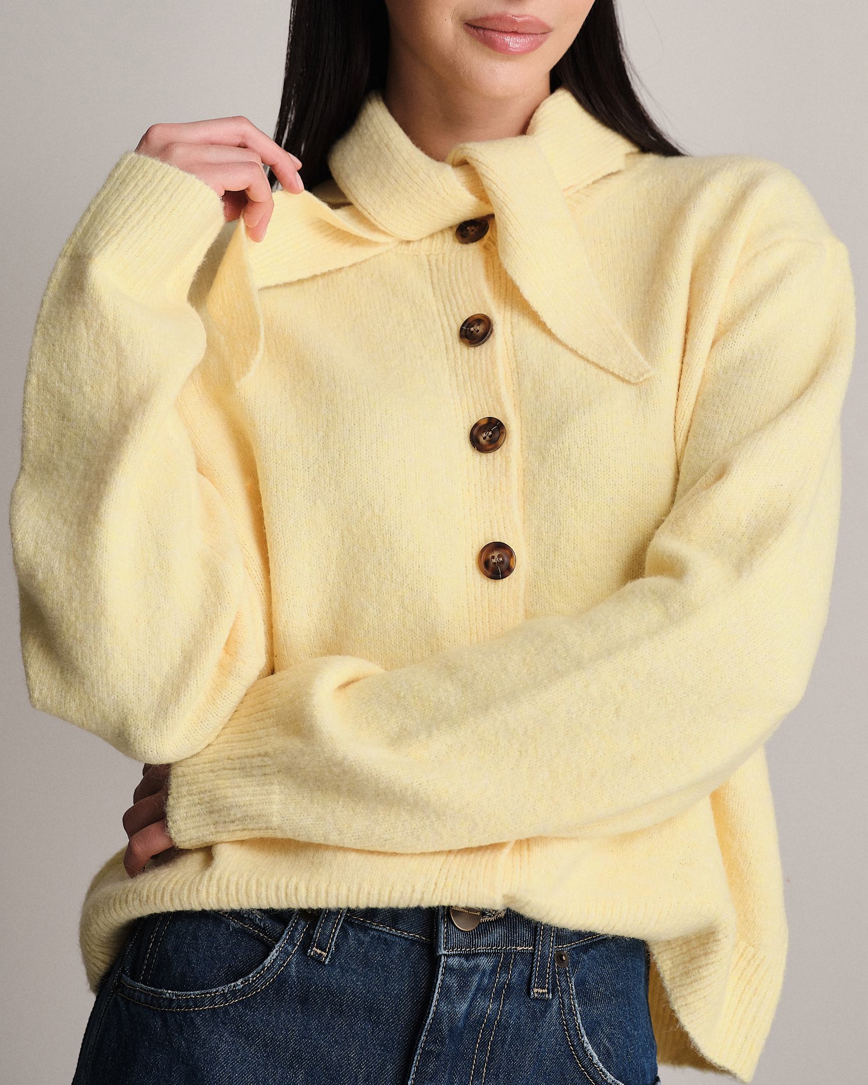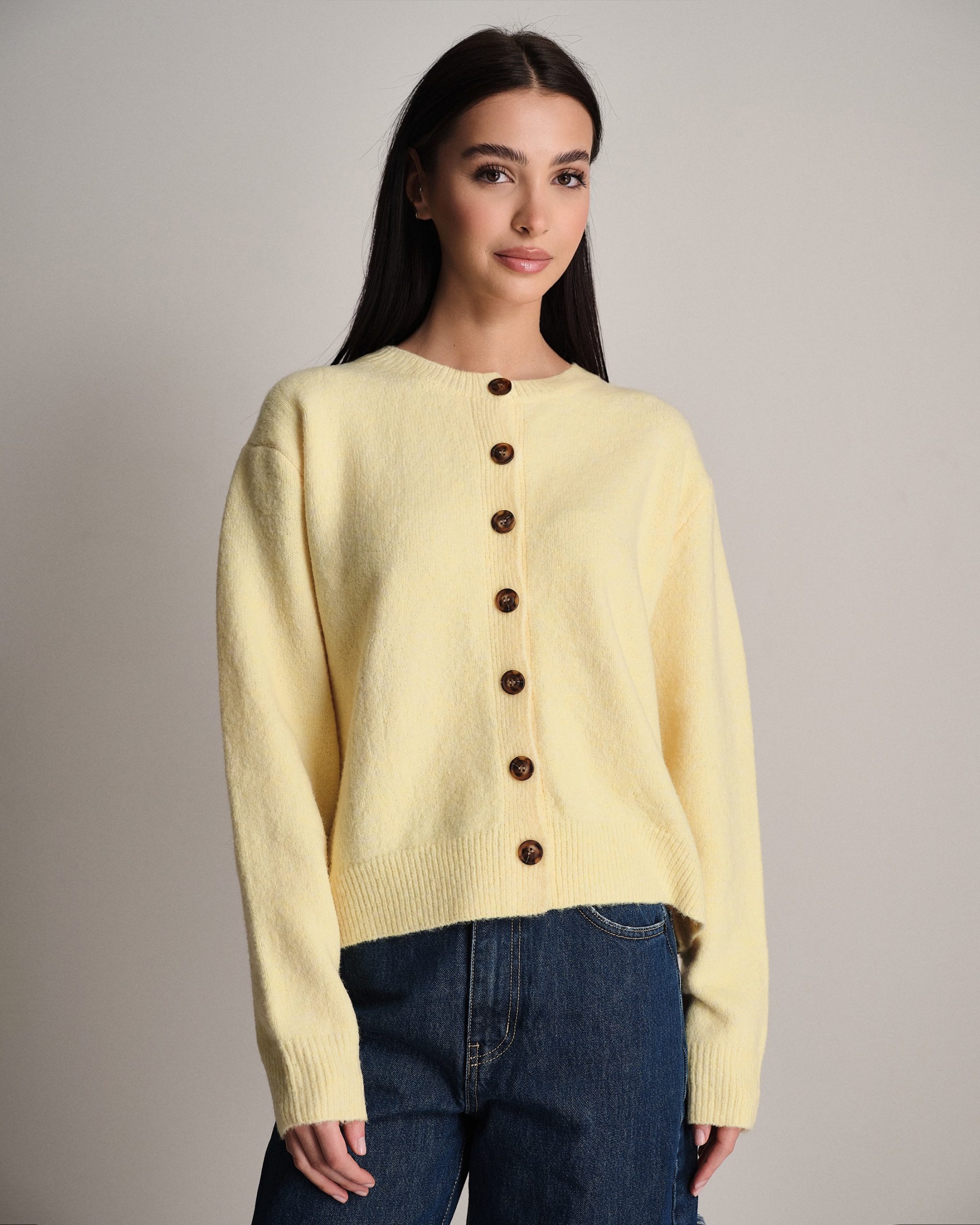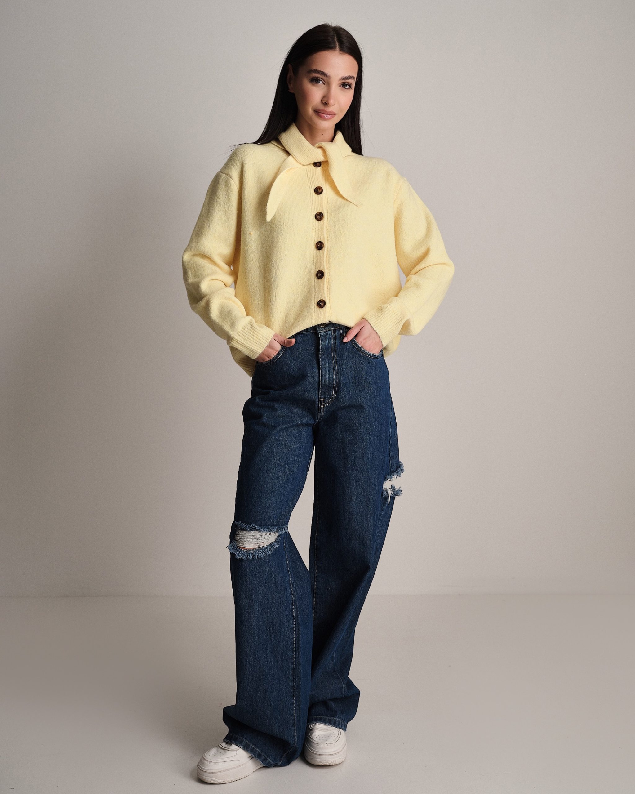 Cardigan in maglia soft touch con bottoni e sciarpa removibile.