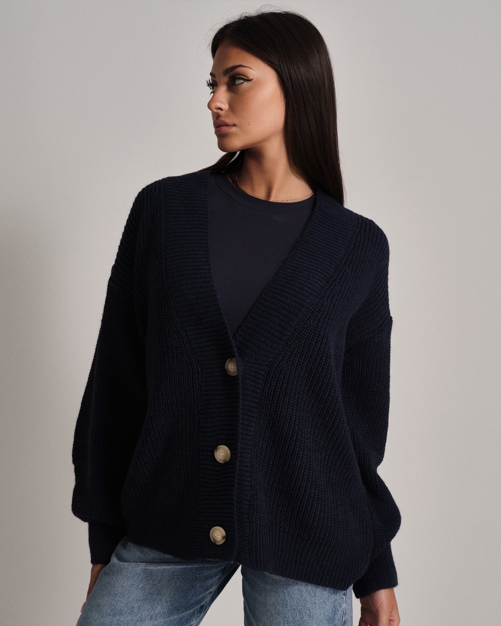 Cardigan oversize in maglia soft touch con bottoni.