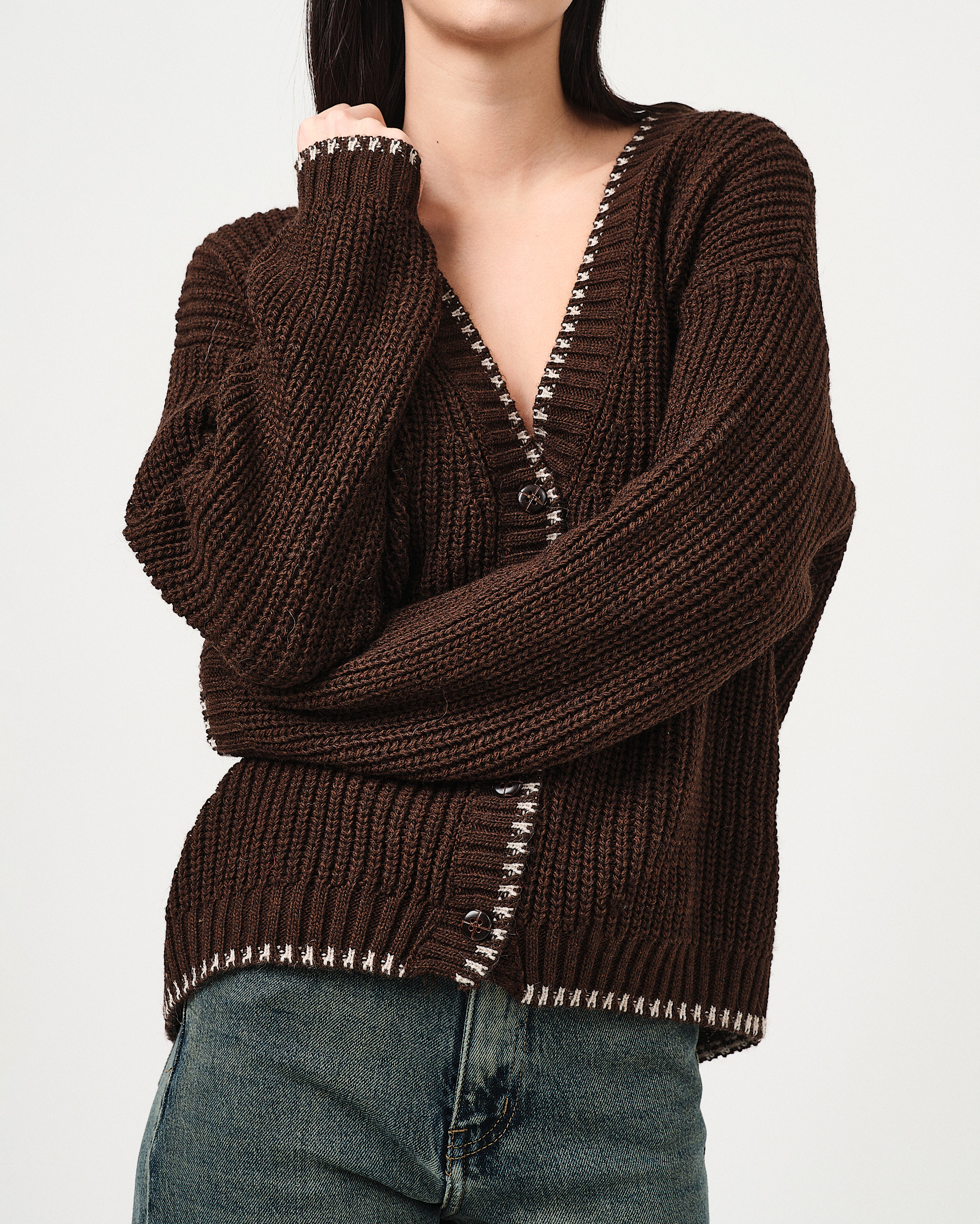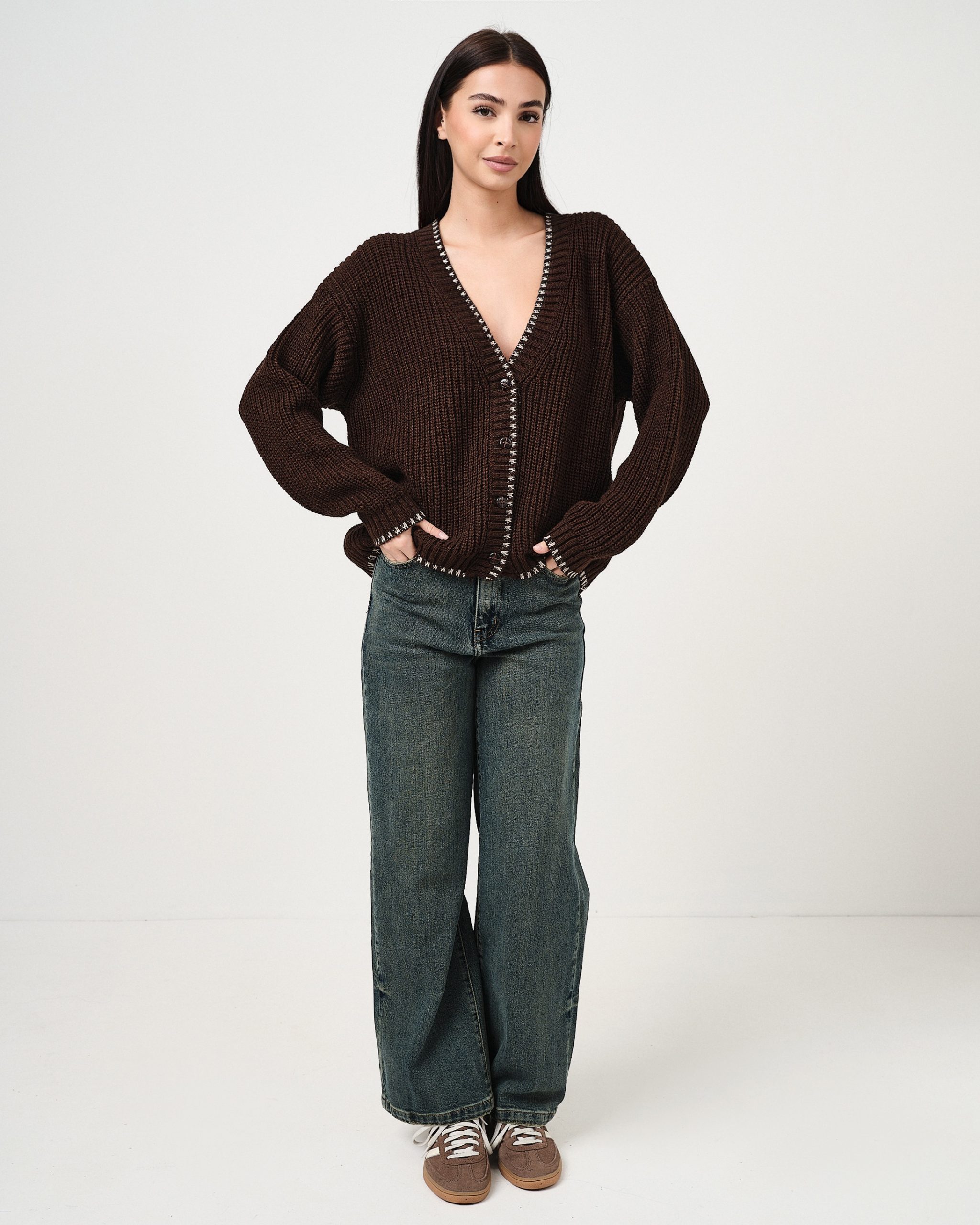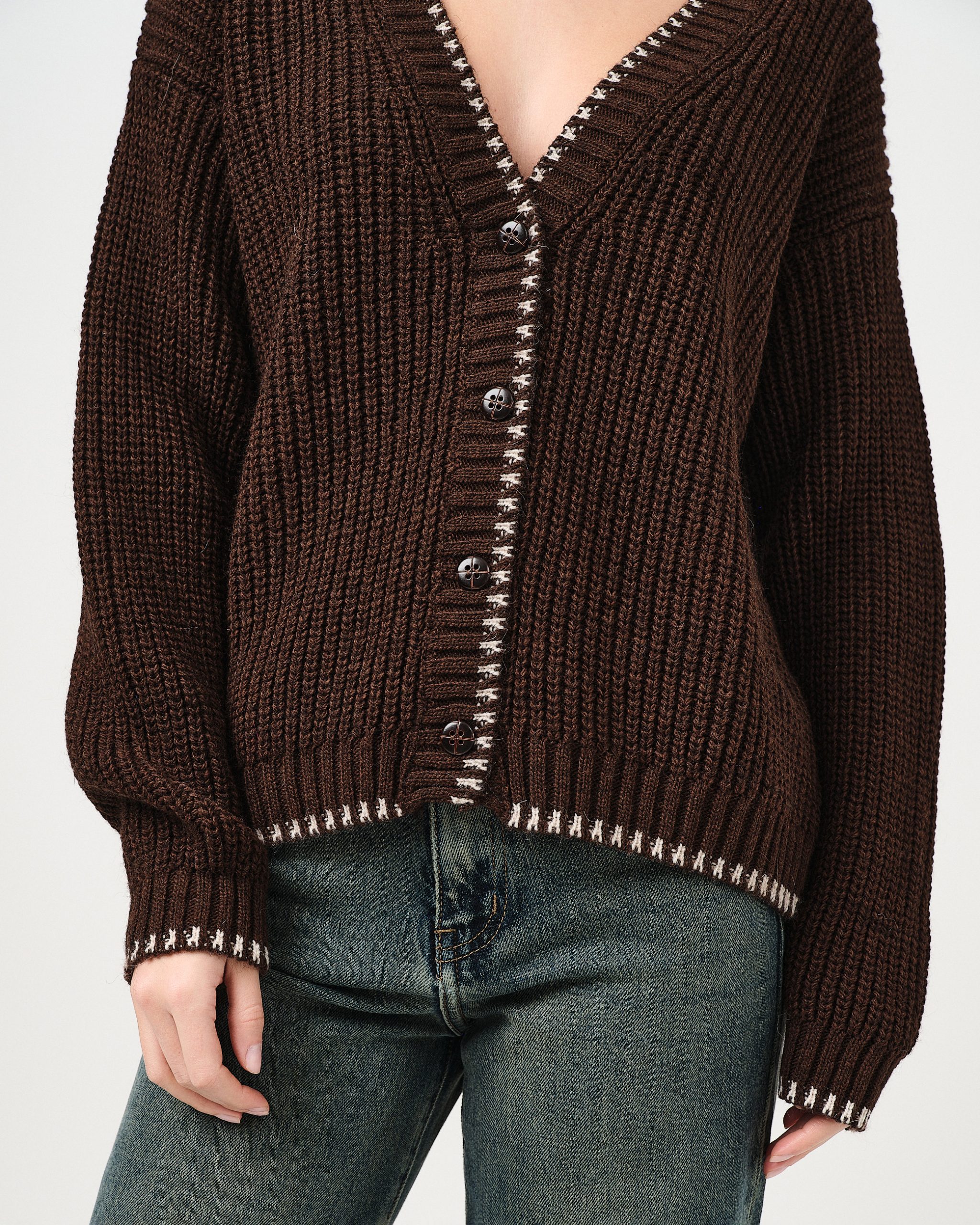 Cardigan oversize con bottoni ed impunture in misto lana e alpaca.