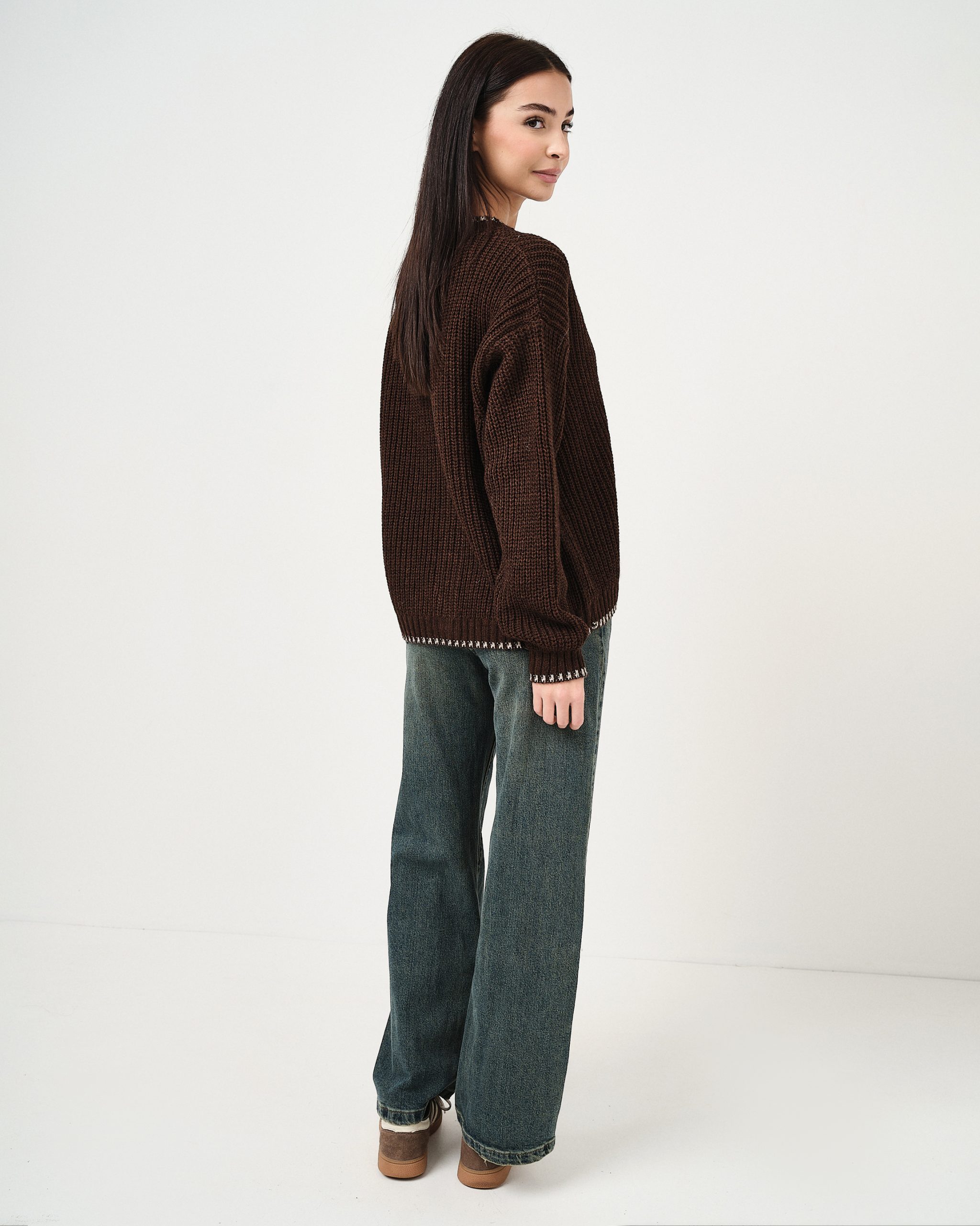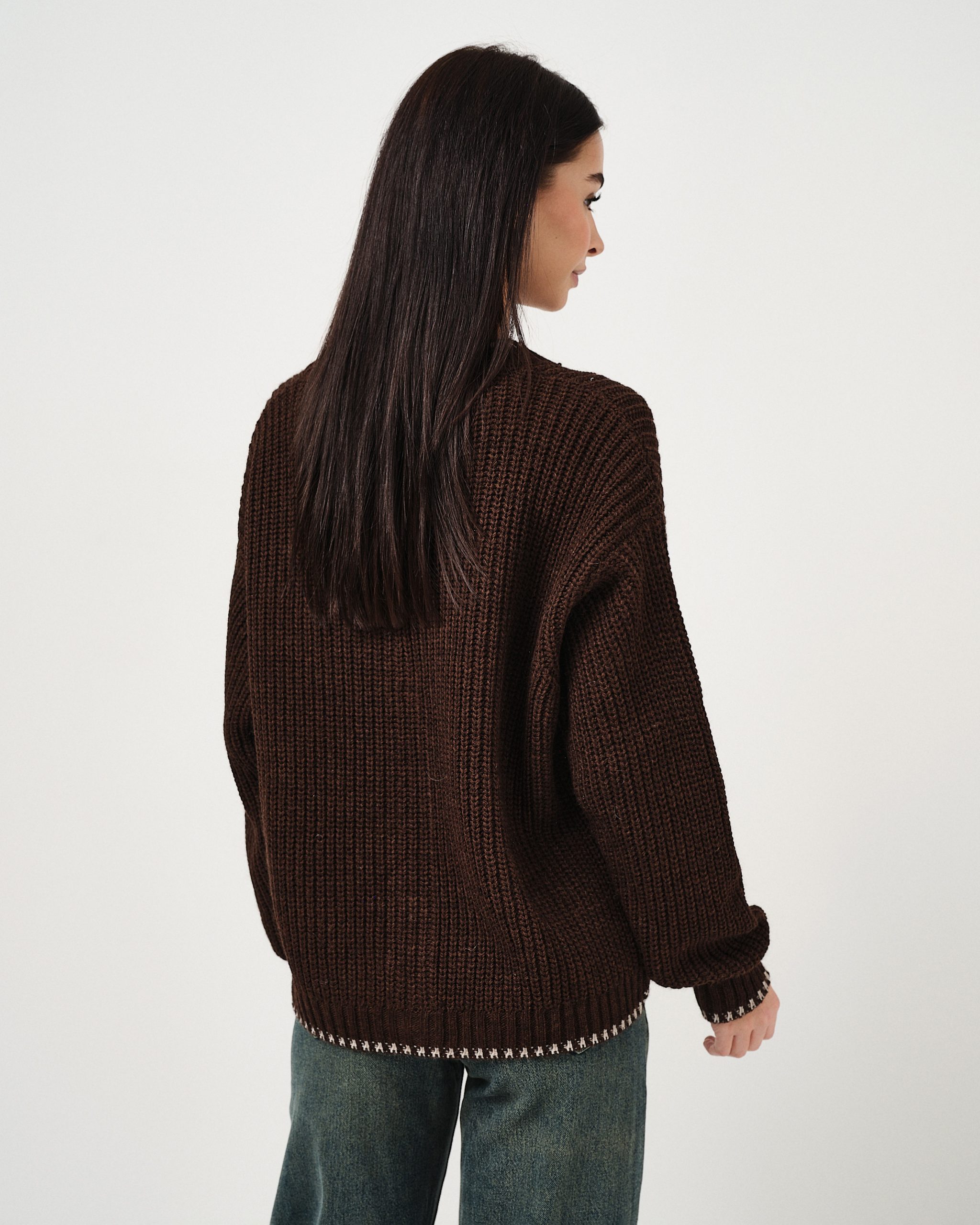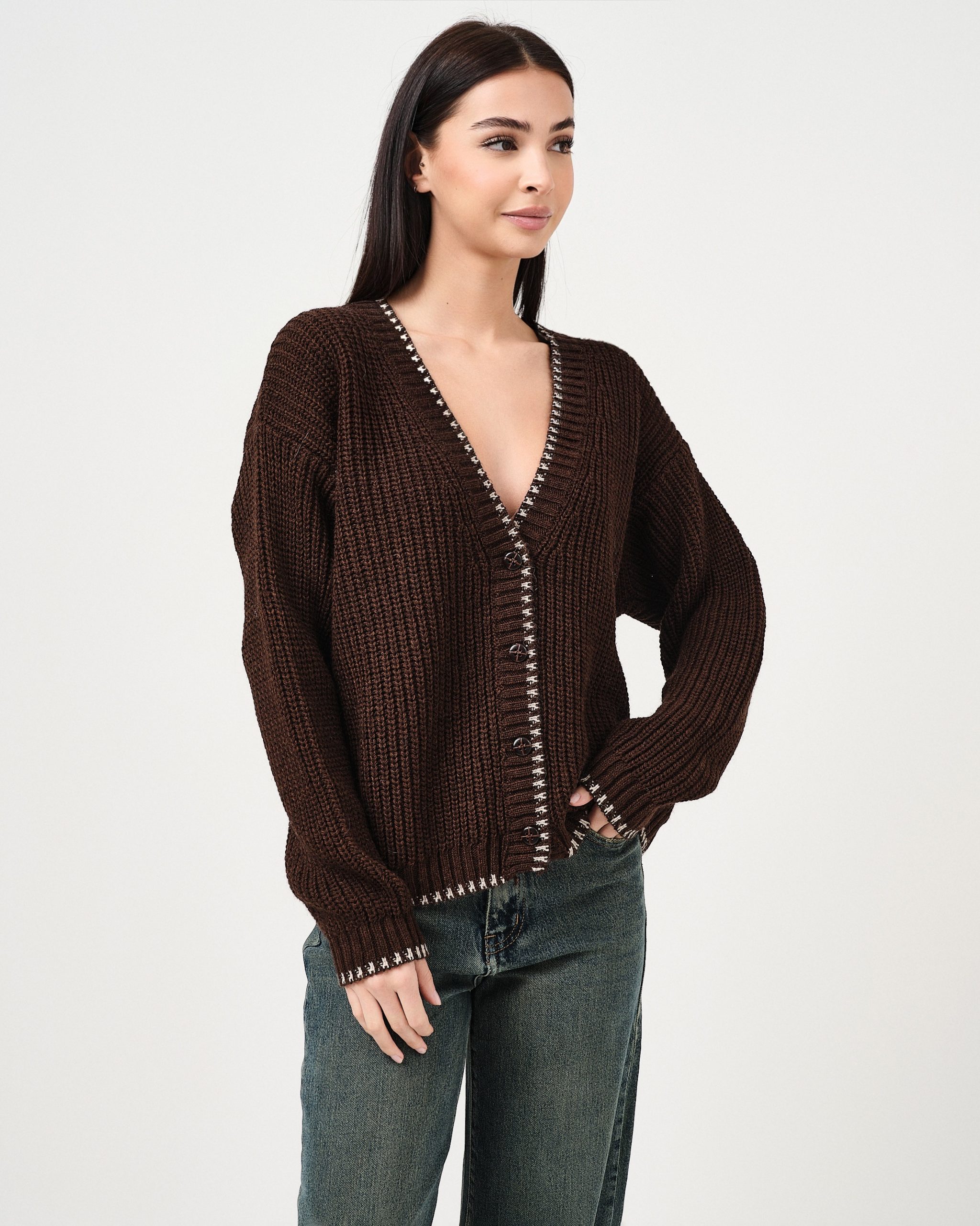 Cardigan oversize con bottoni ed impunture in misto lana e alpaca.