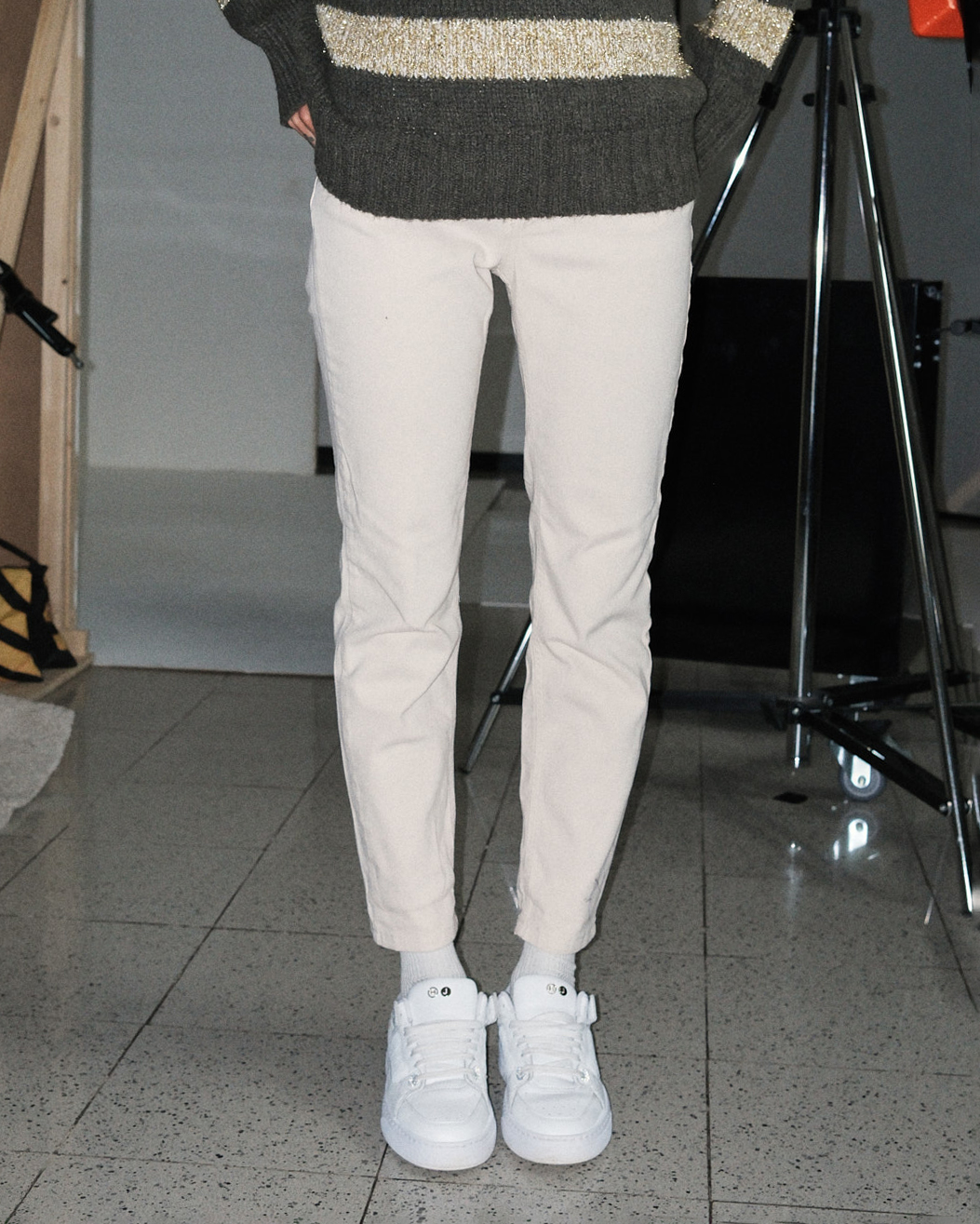 Denim a vita alta elasticizzato con bottoni a vista in metallo brunito.
