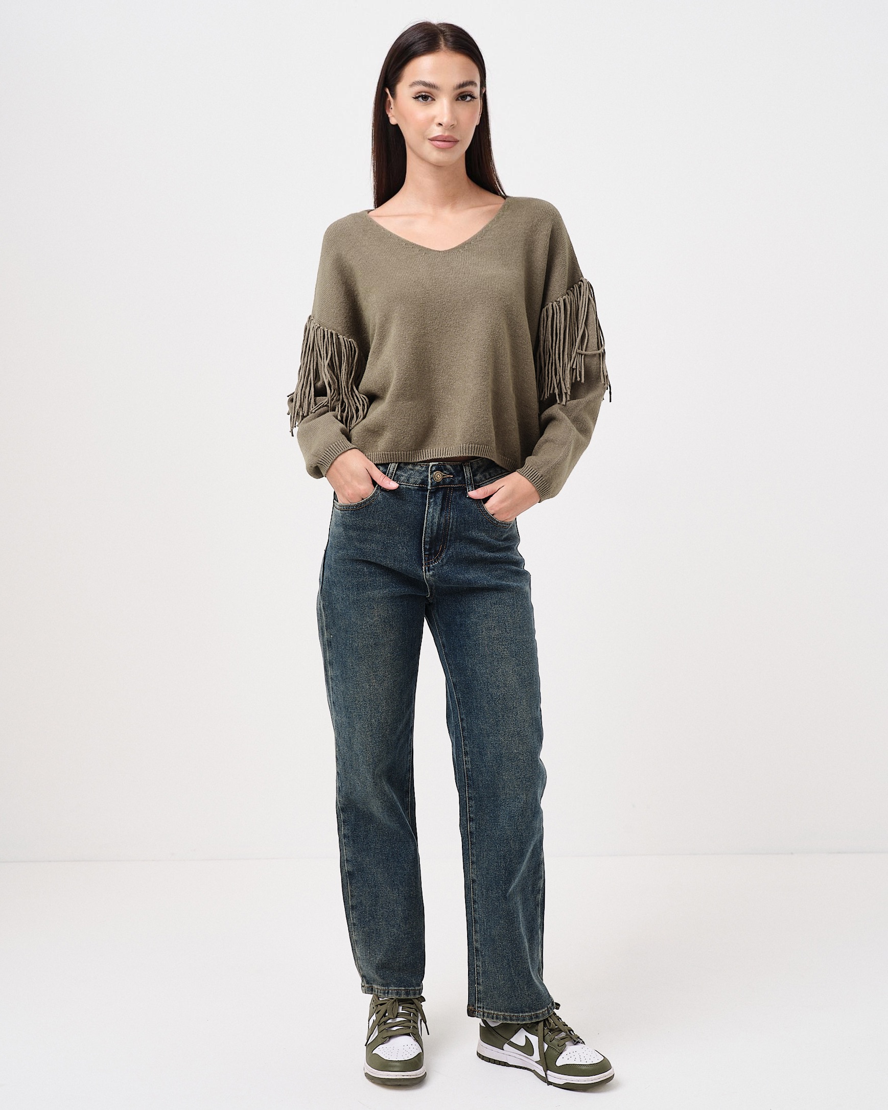 La modella è alta 1,72m e indossa la taglia XS.