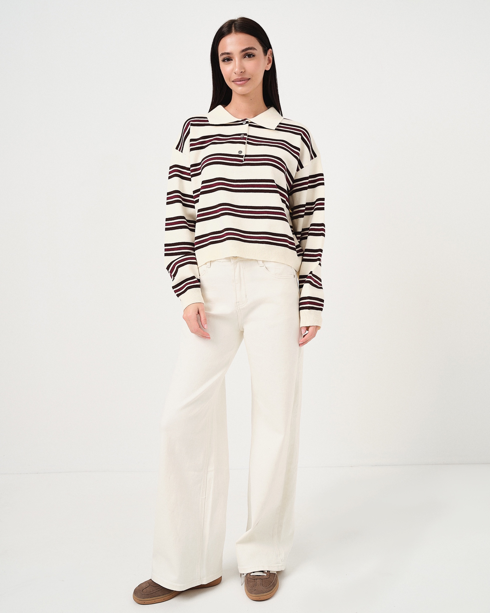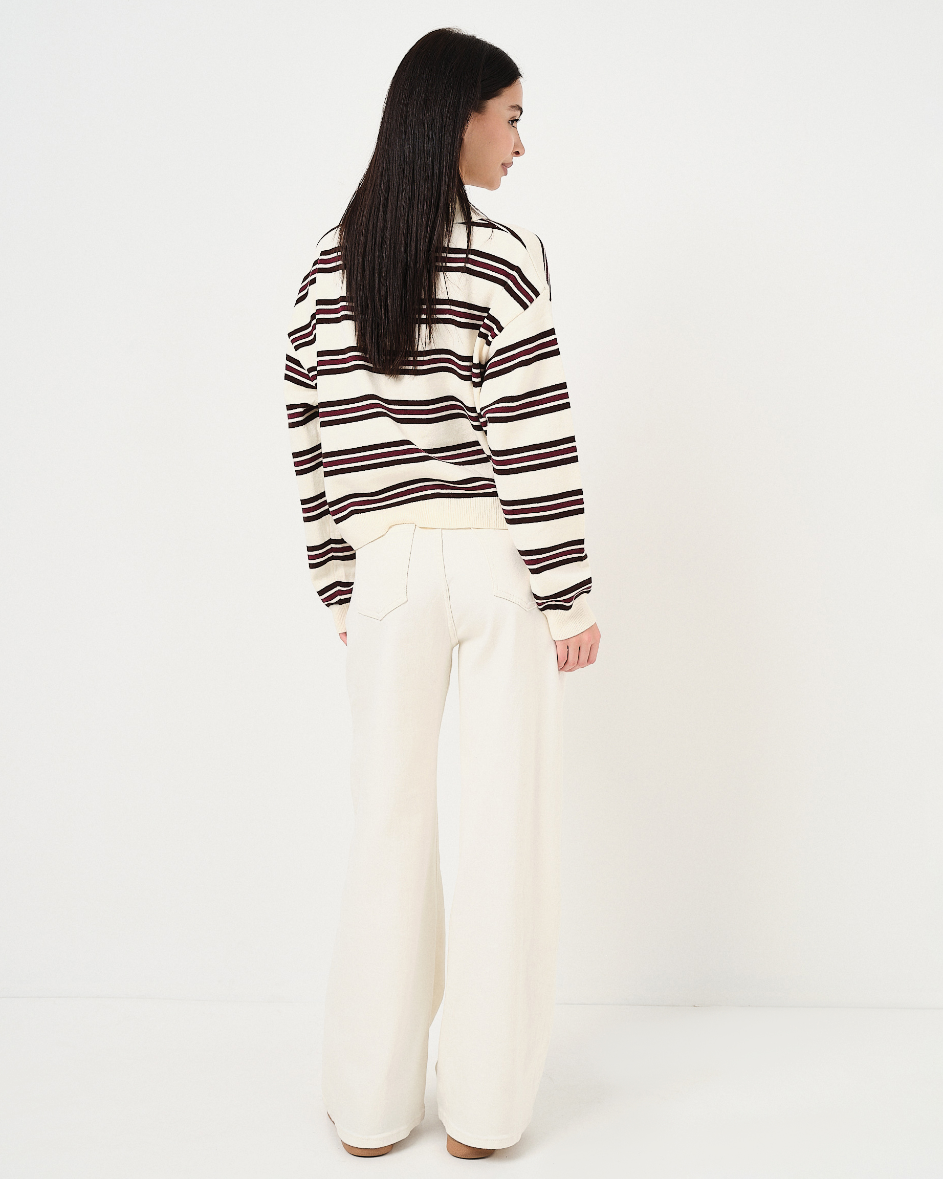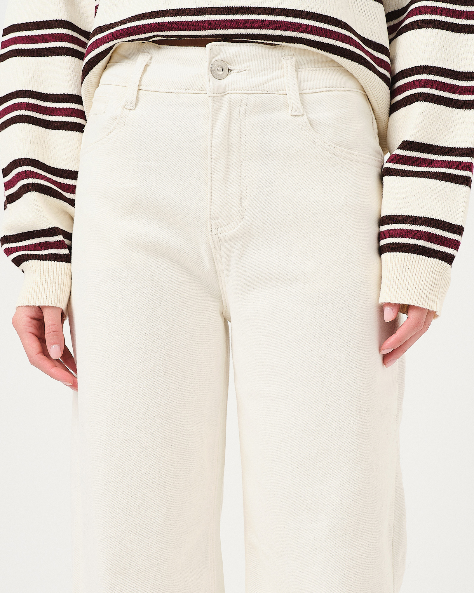 Denim cinque tasche a palazzo elasticizzato lavaggio chiaro.
