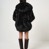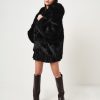 Maxi pelliccia vestibilità oversize con cappuccio e chiusura con singolo gancio.