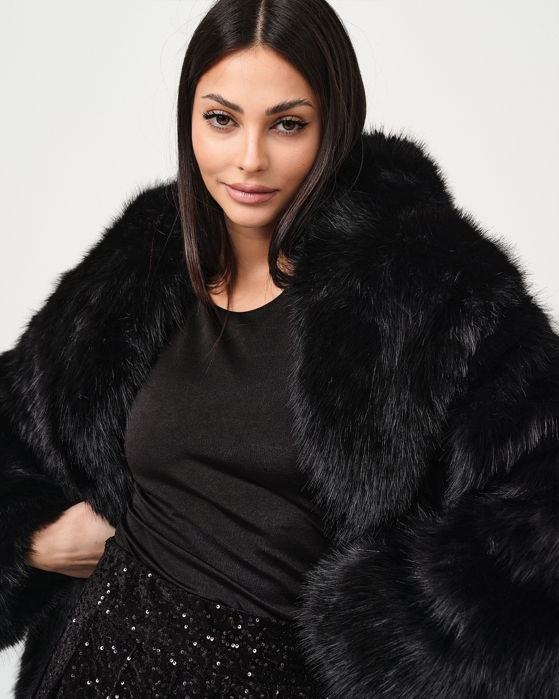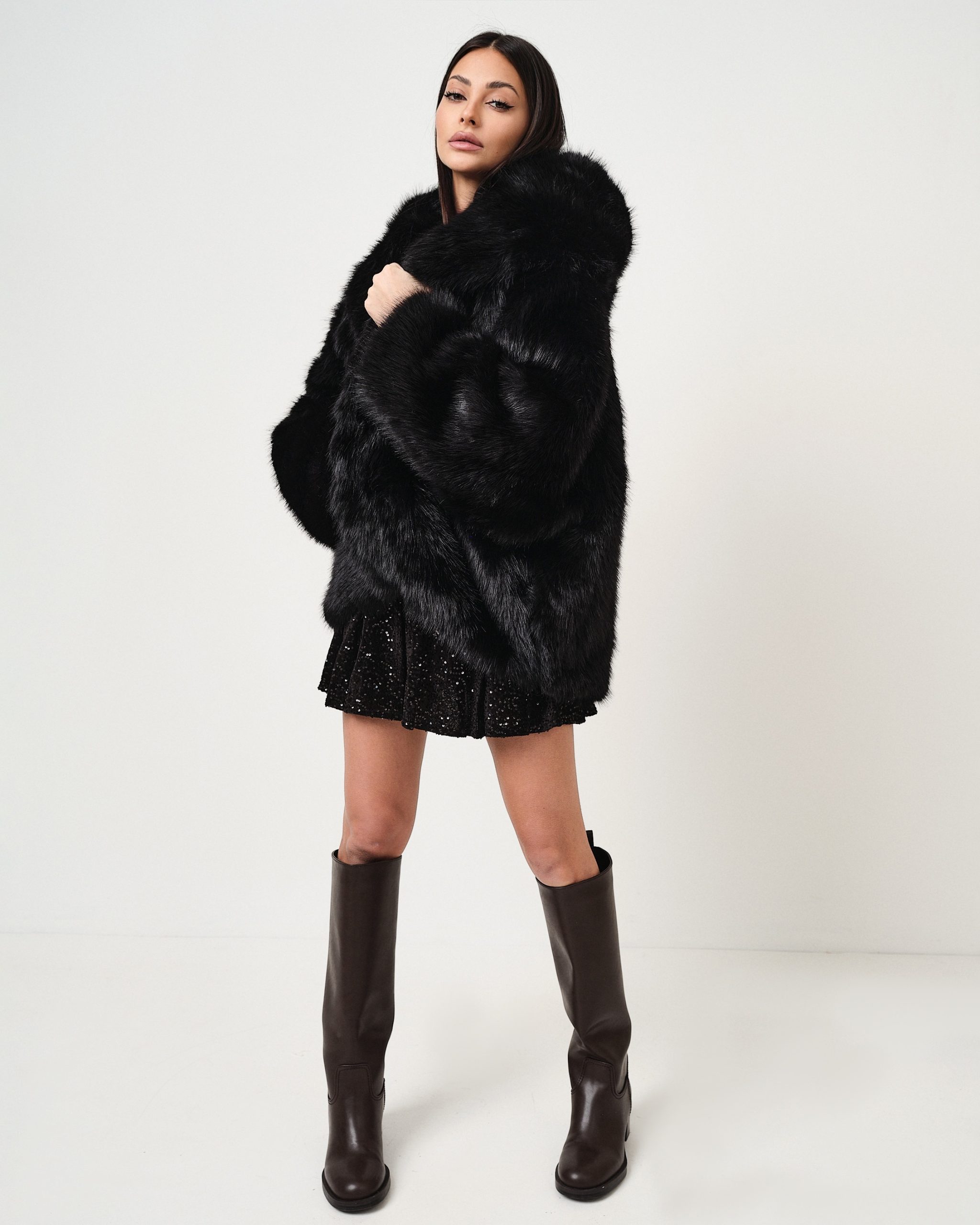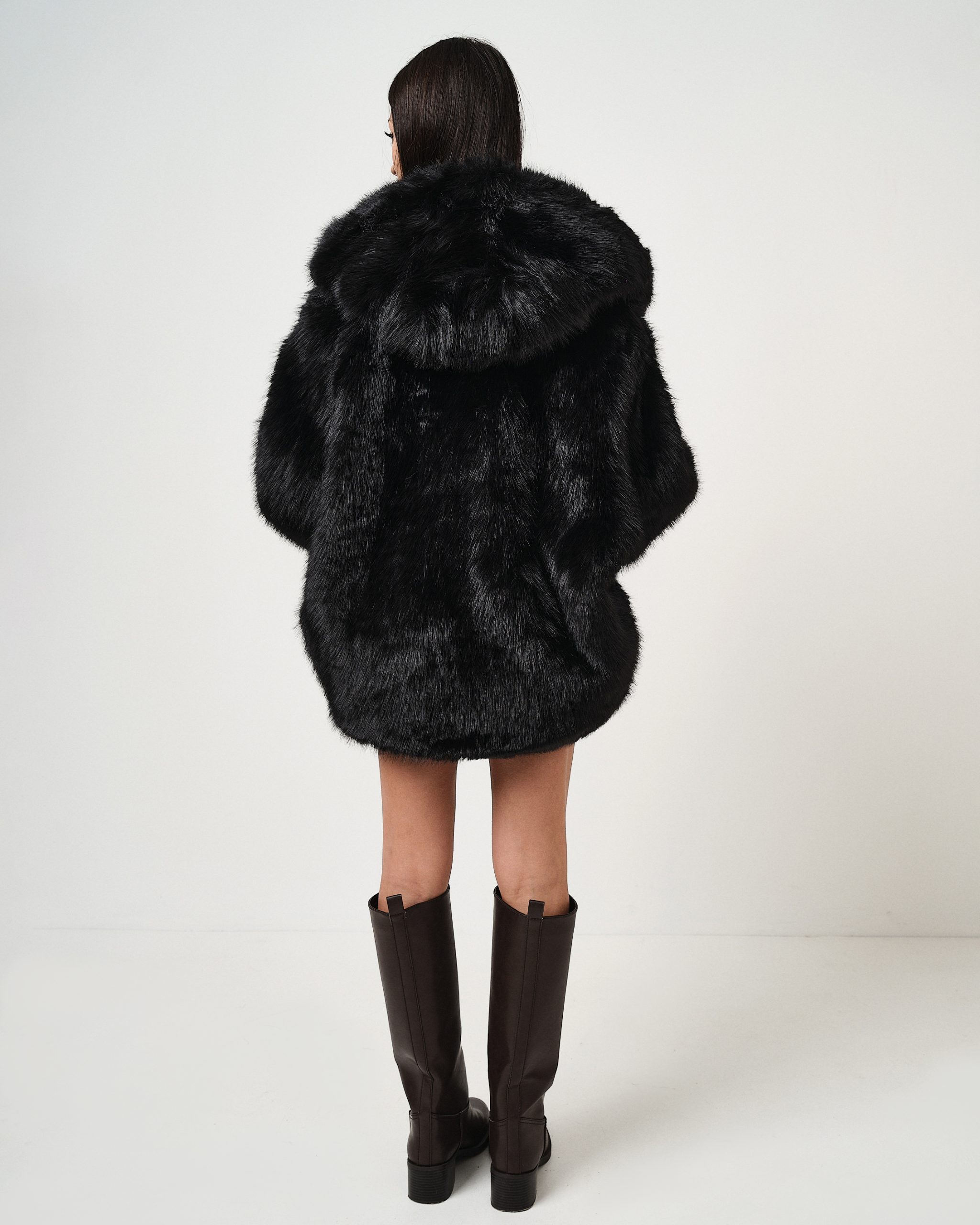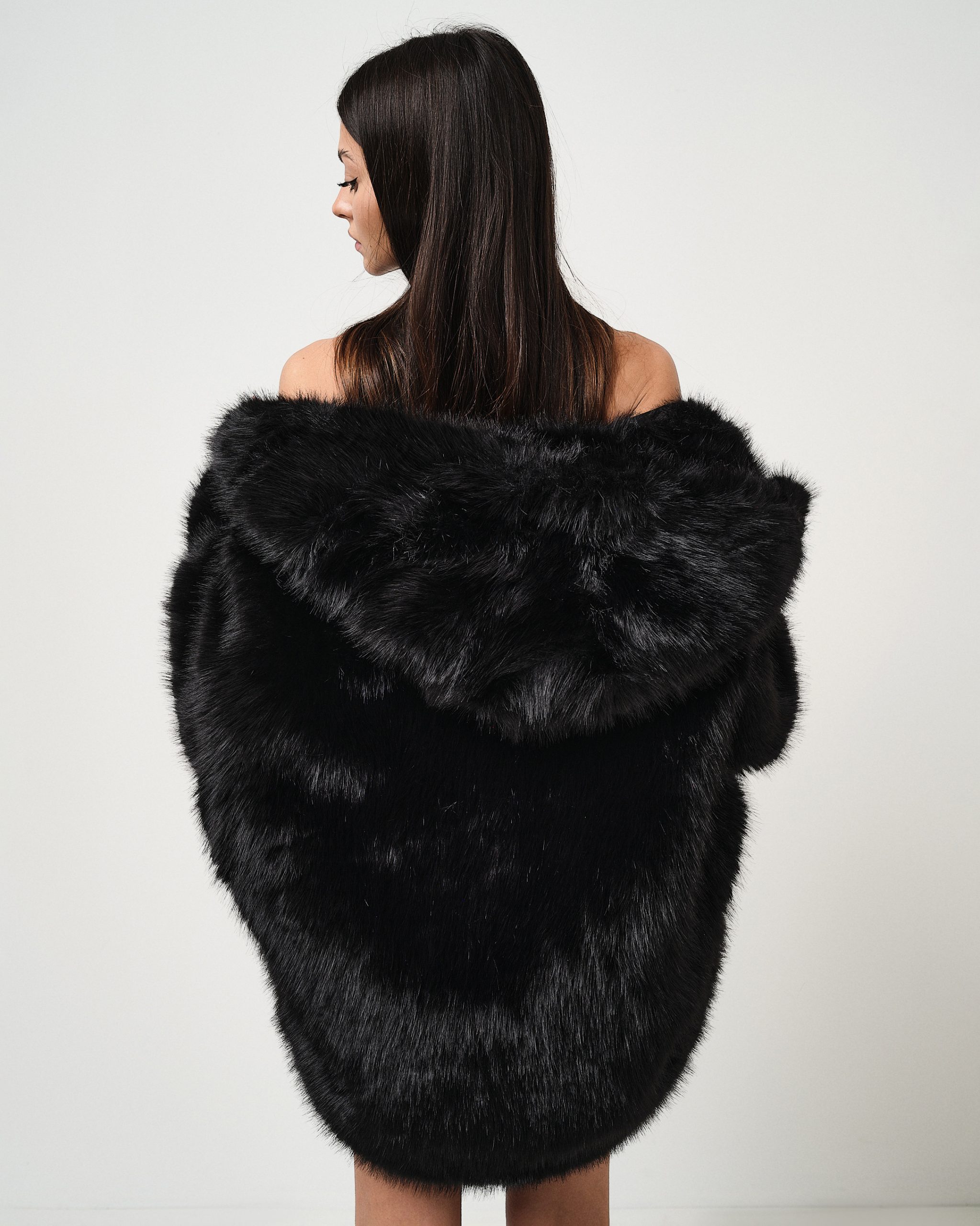 Eco-pelliccia con cappuccio svasata