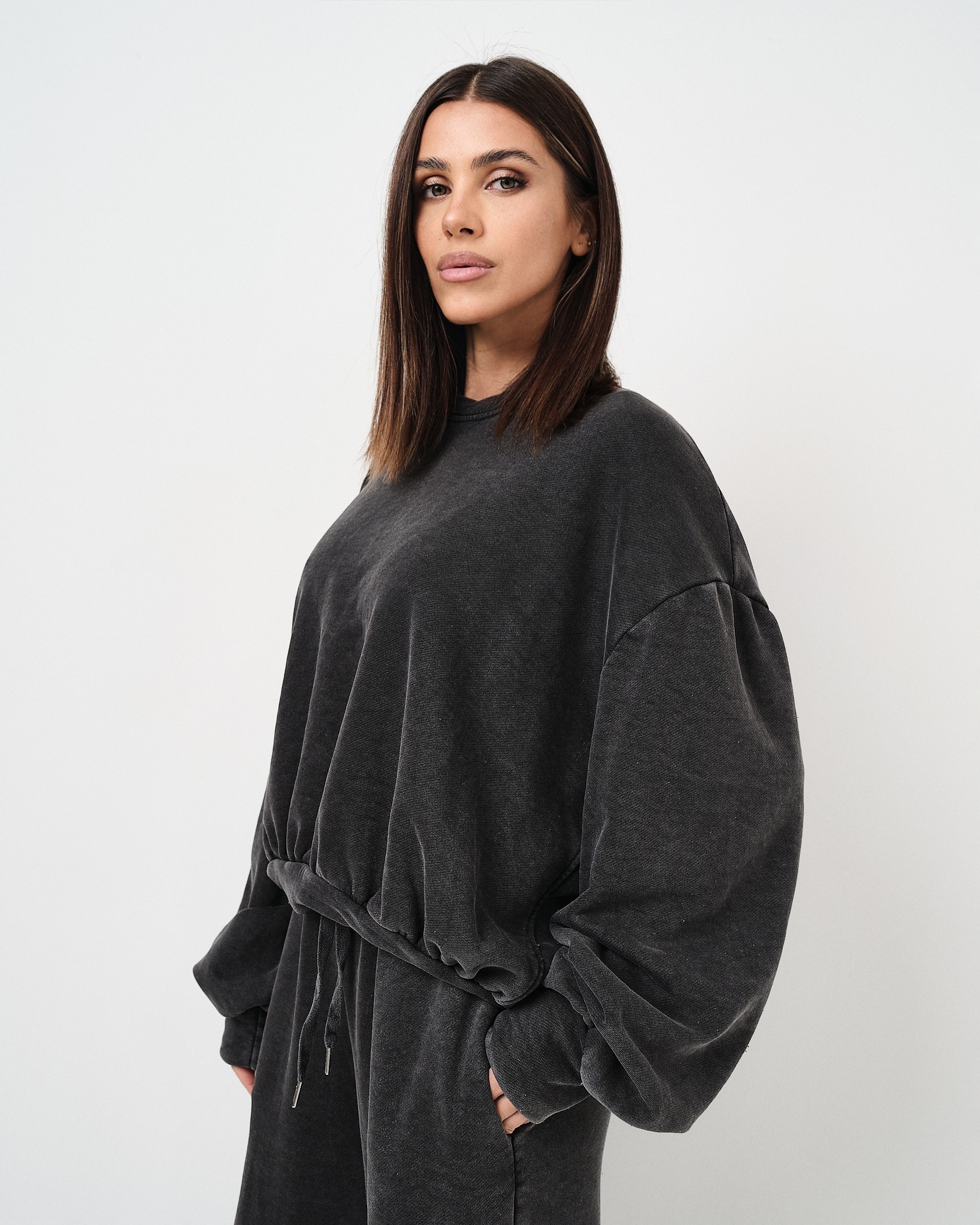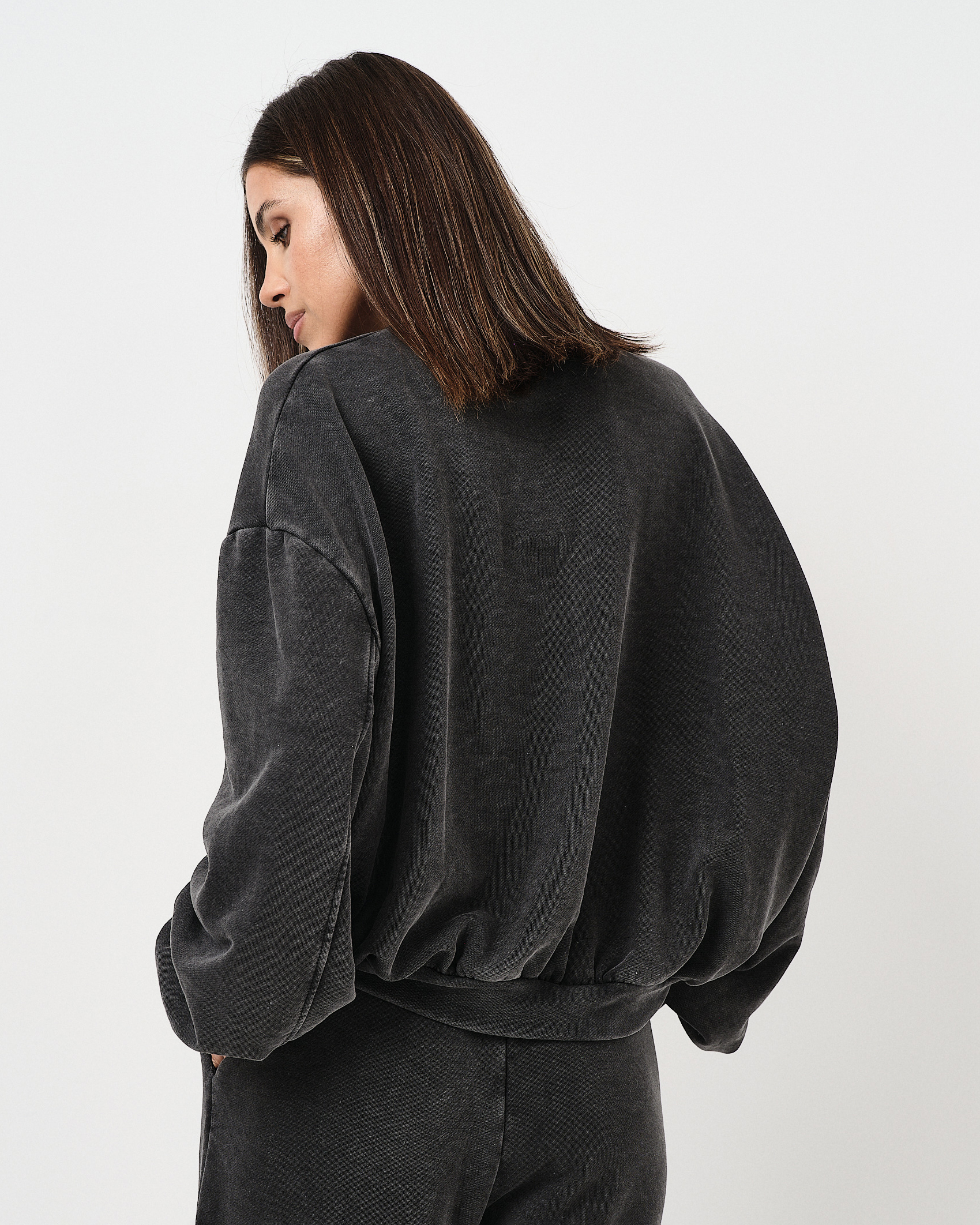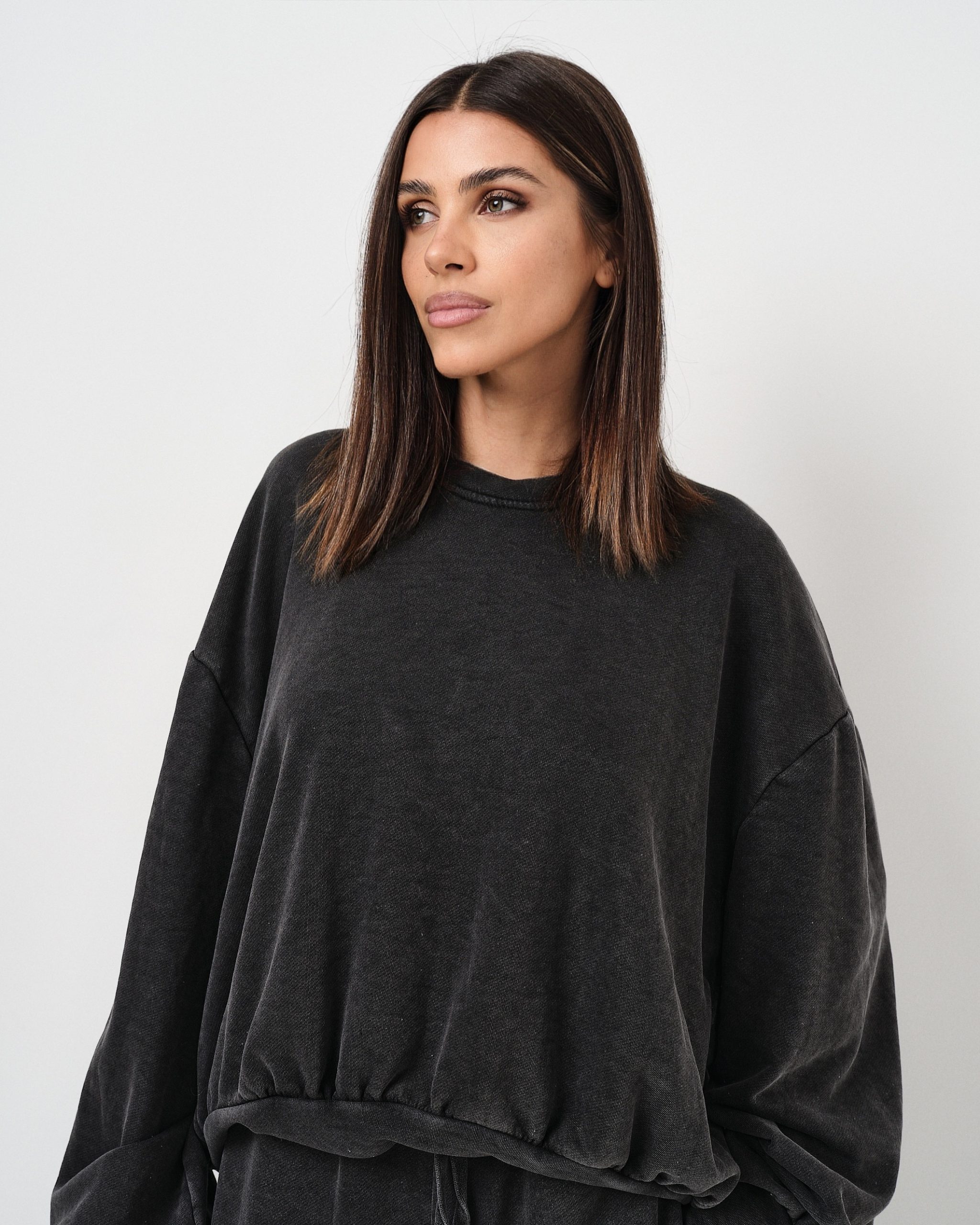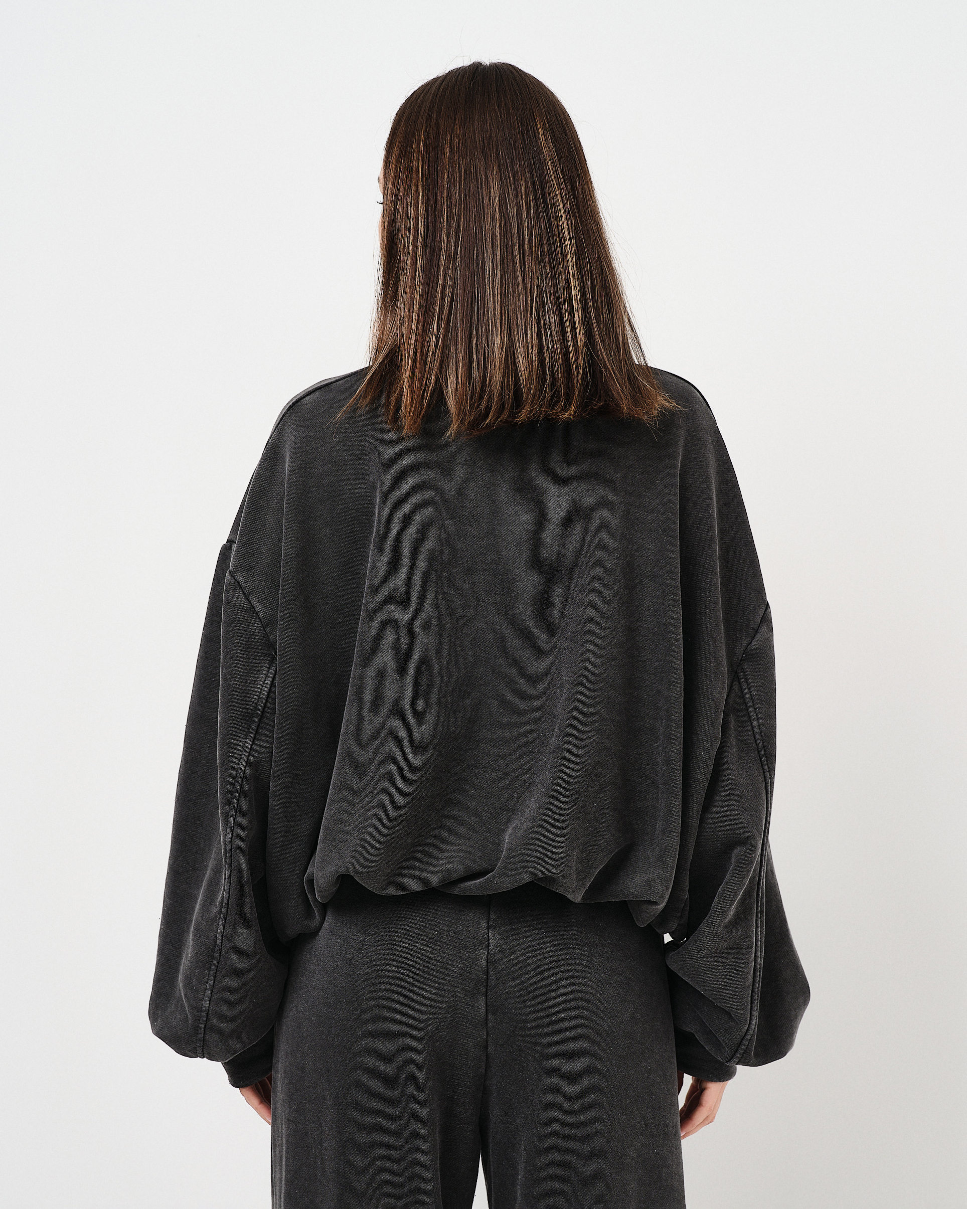 Felpa oversize girocollo in cotone effetto invecchiato.
