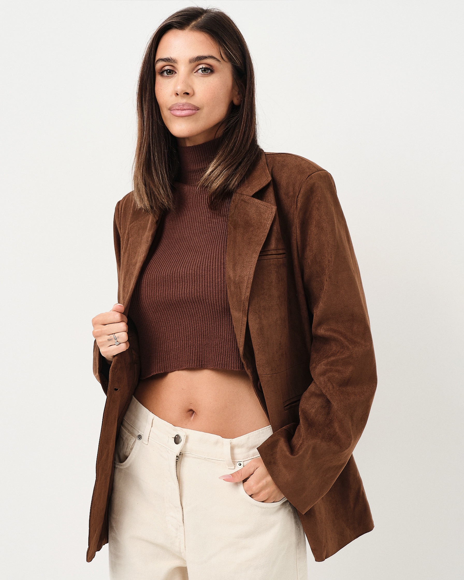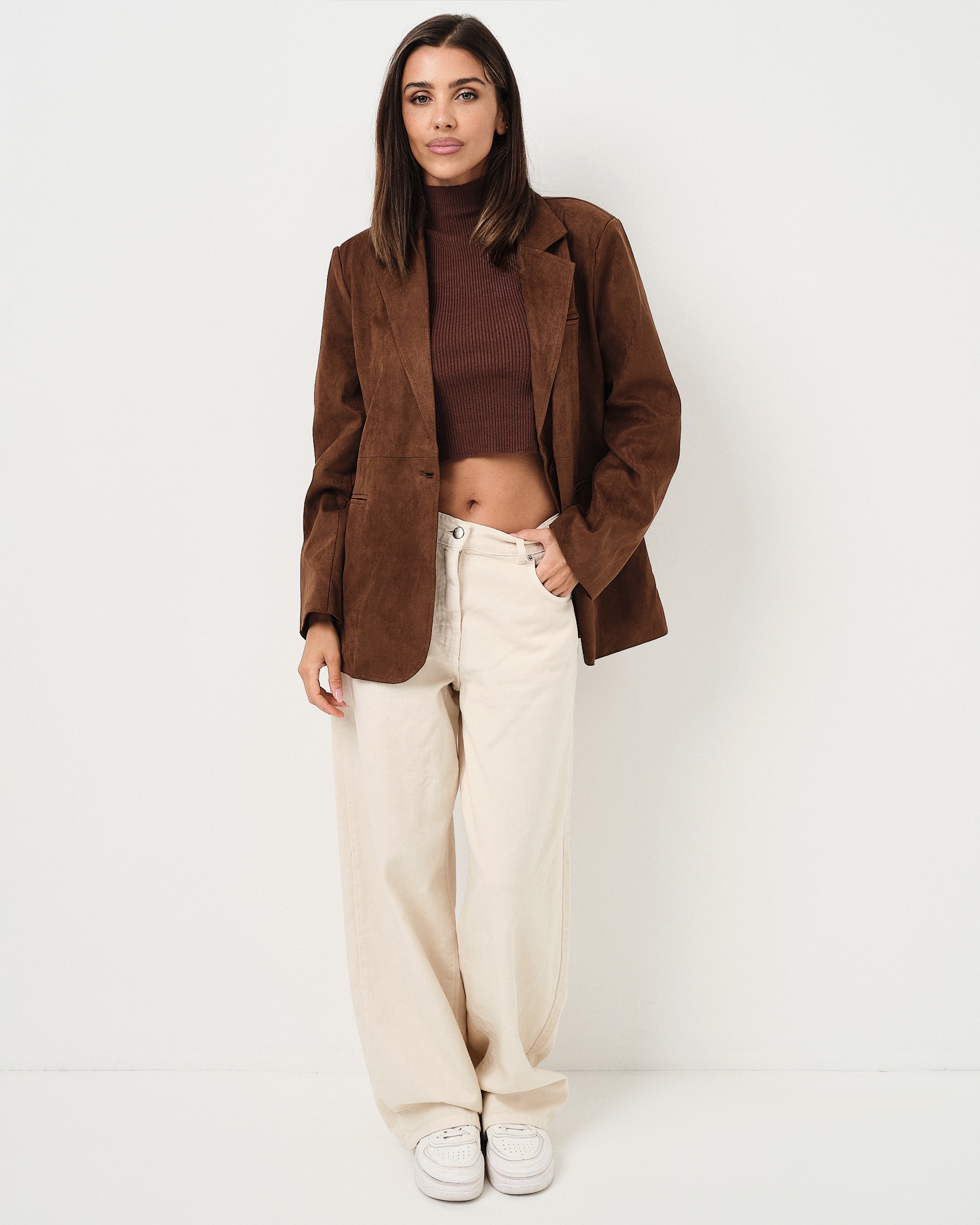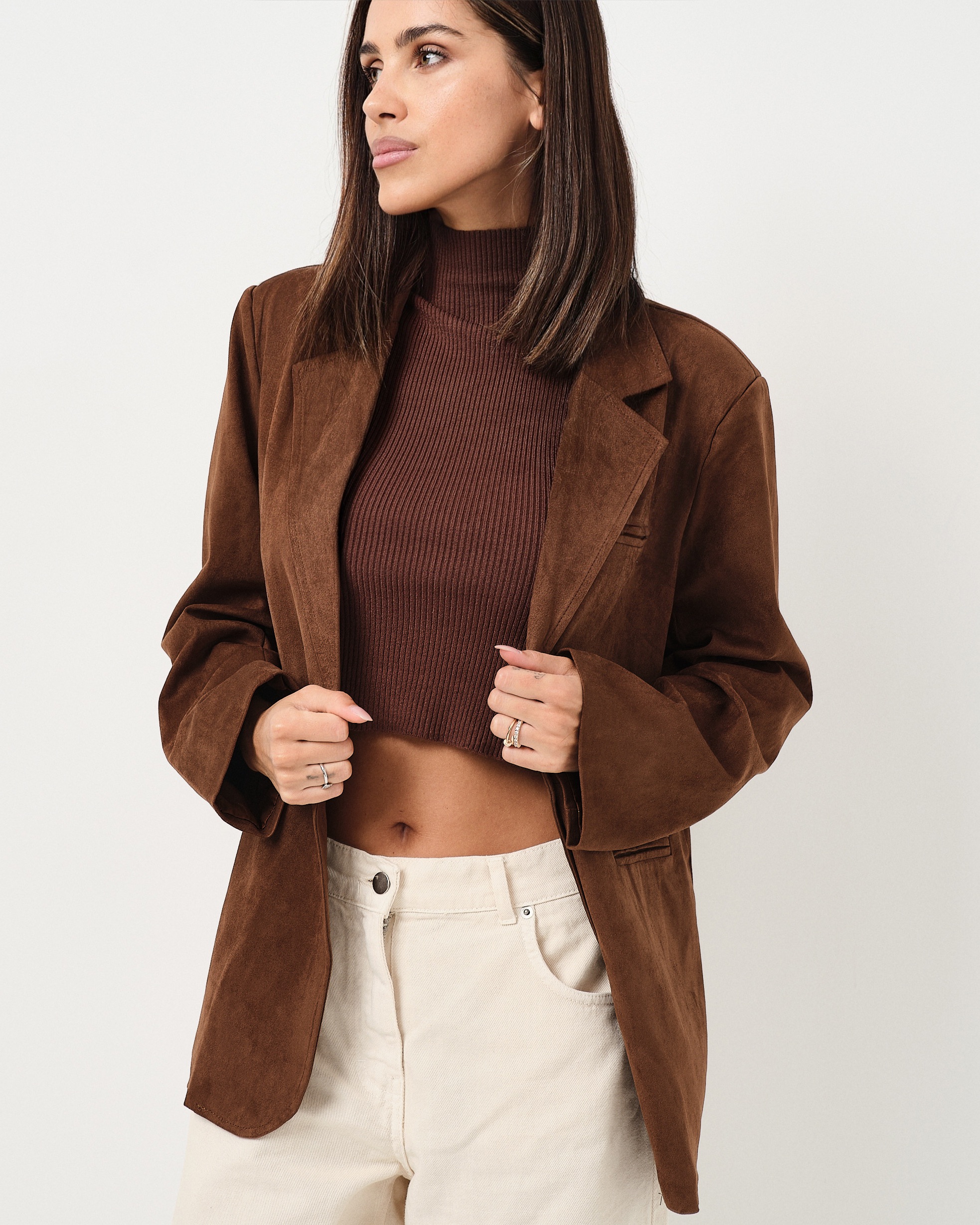 Blazer oversize foderato in tessuto scamosciato soft touch.