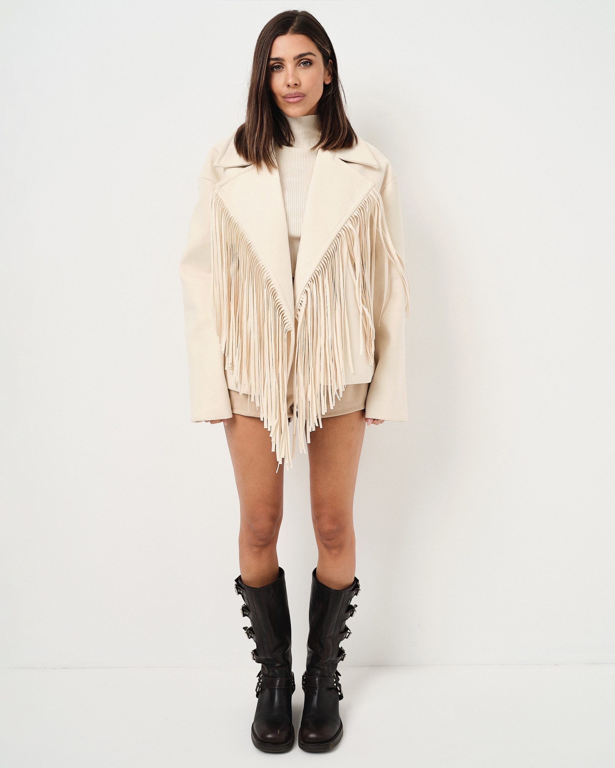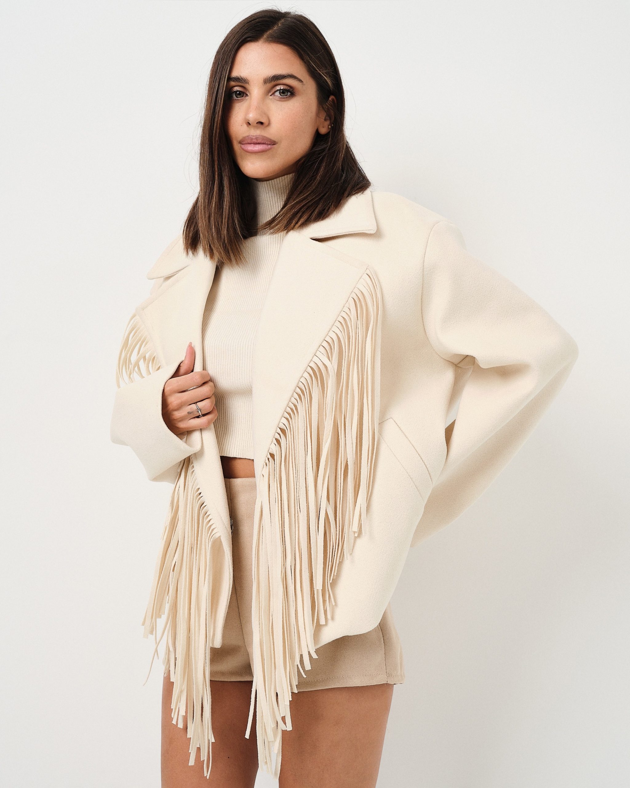 Giacca in panno con frange