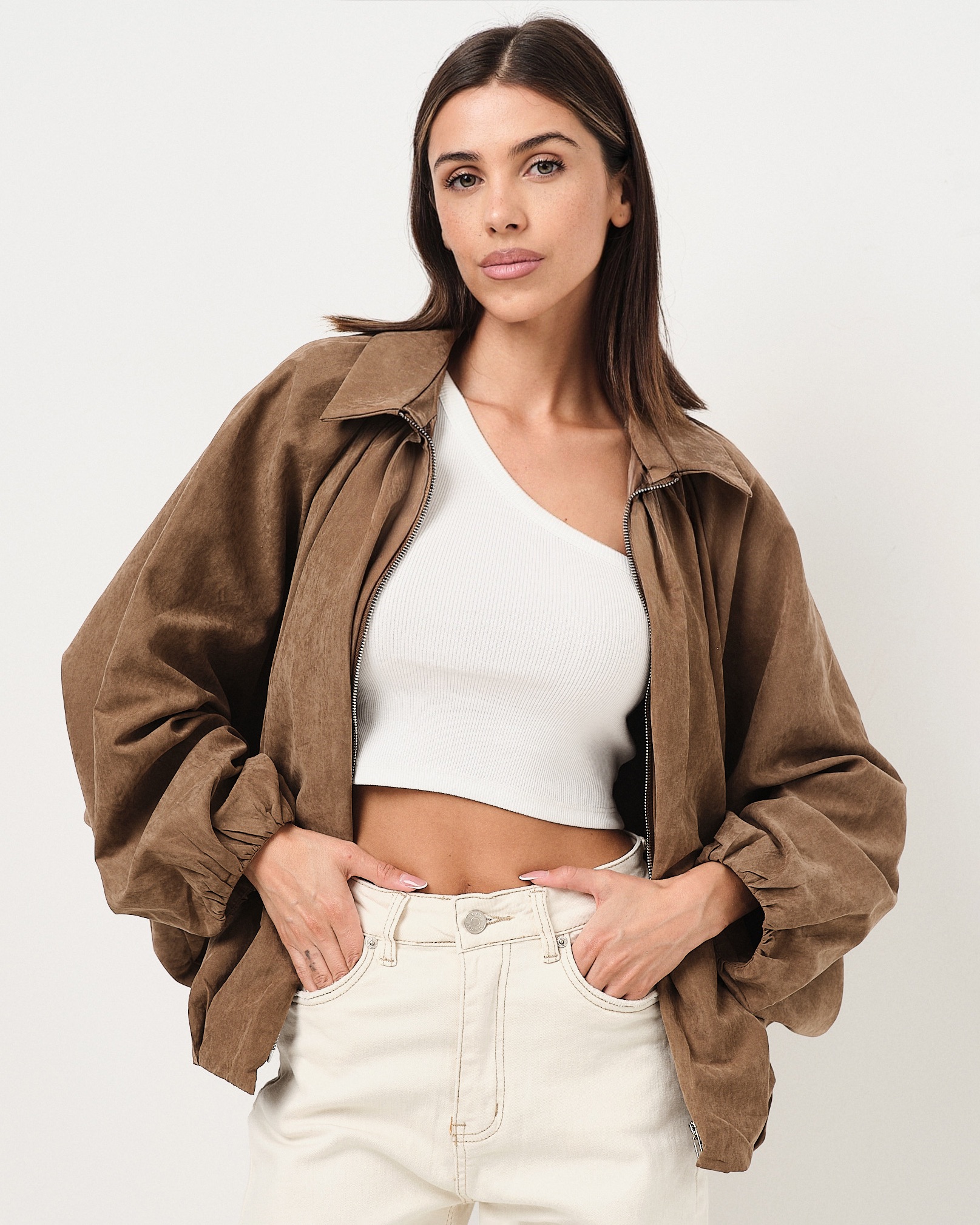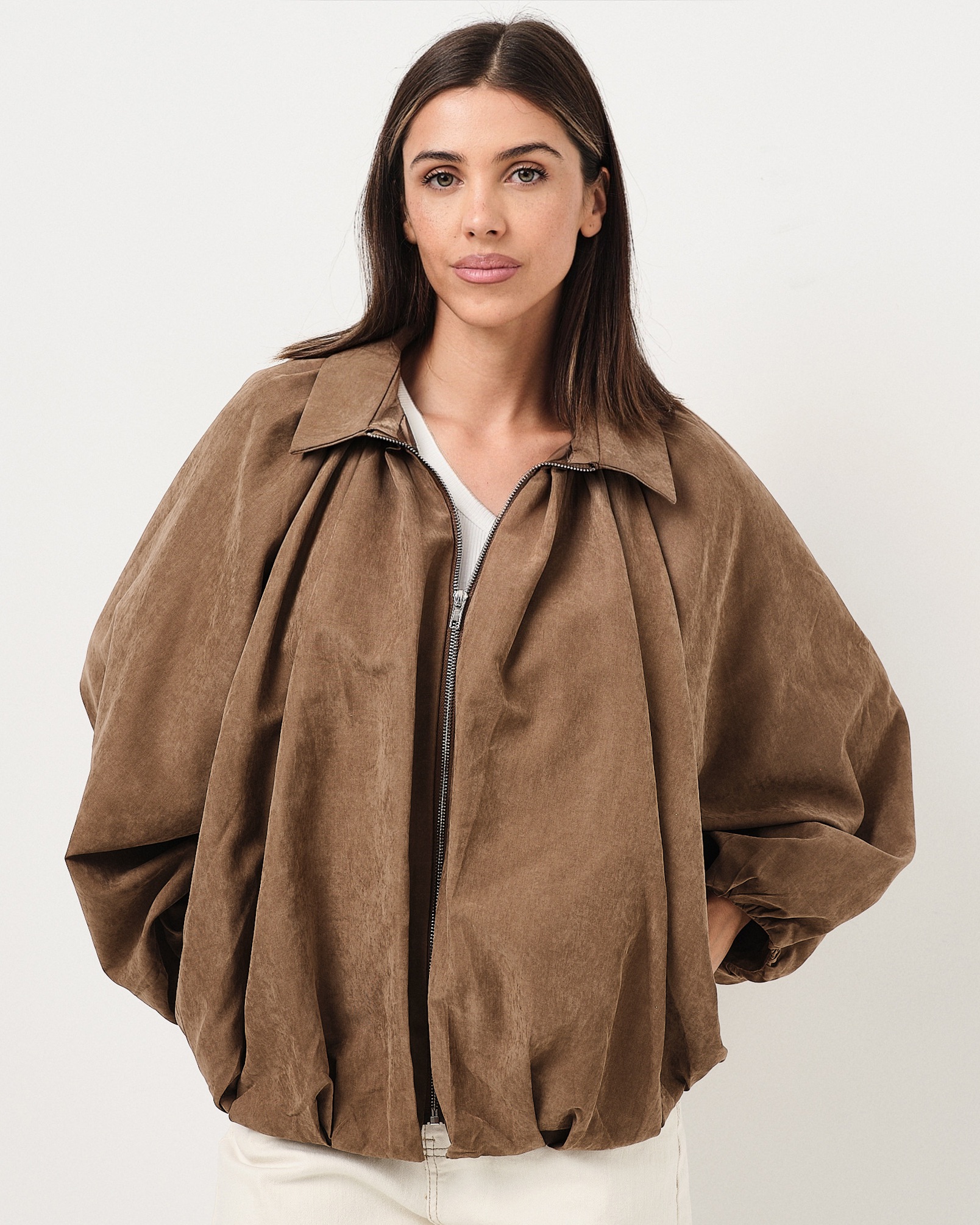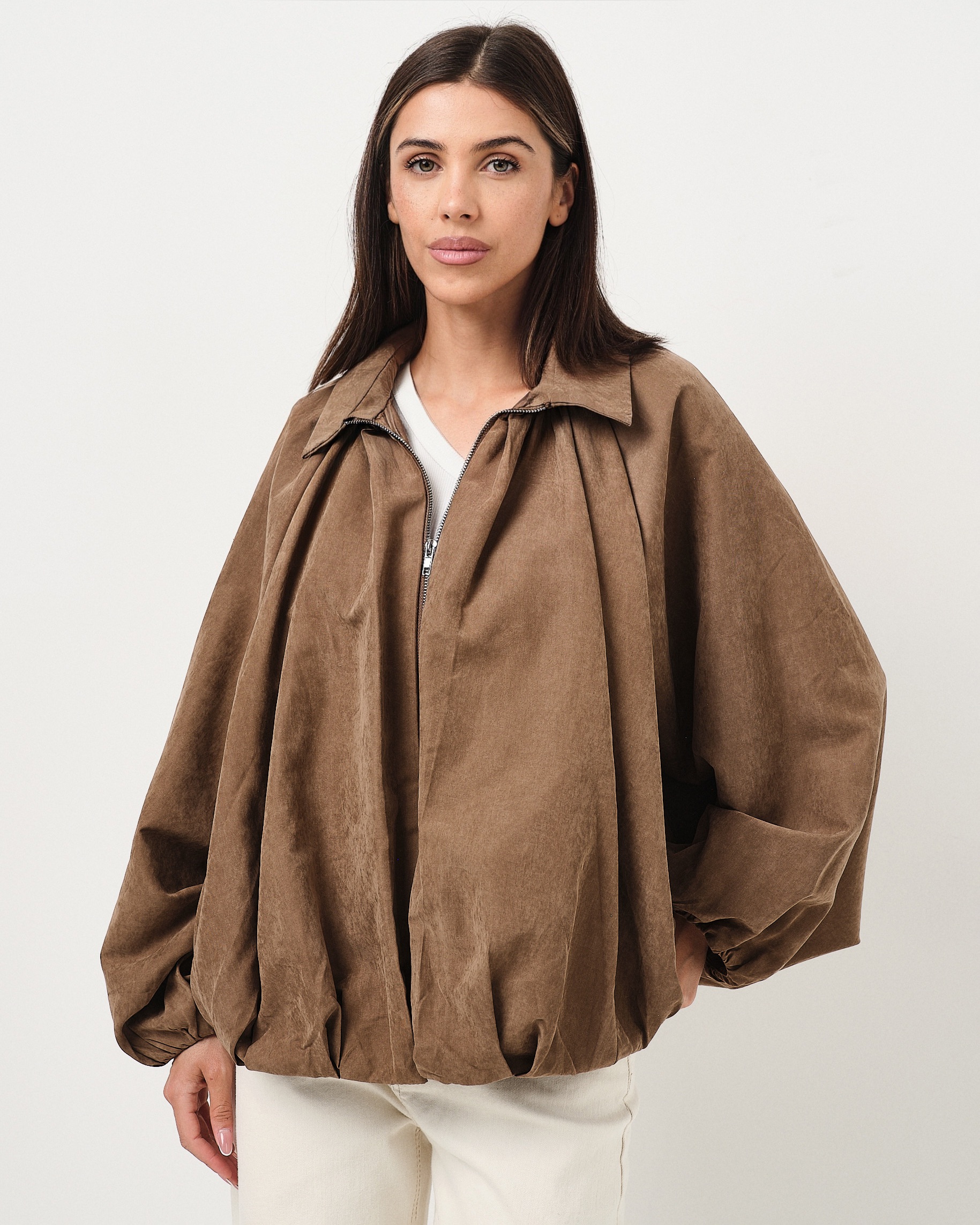 • Bomber con zip e fondo arricciato