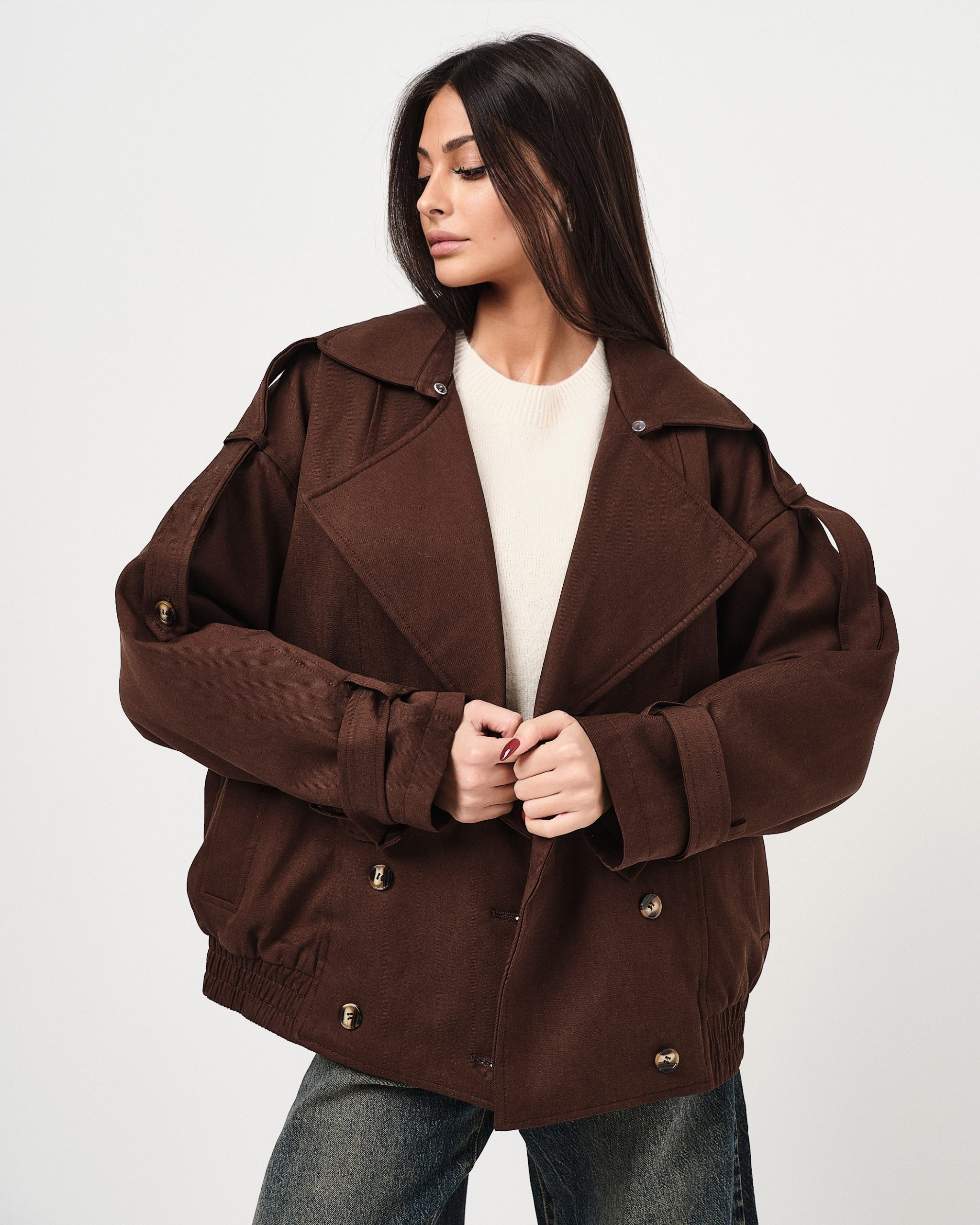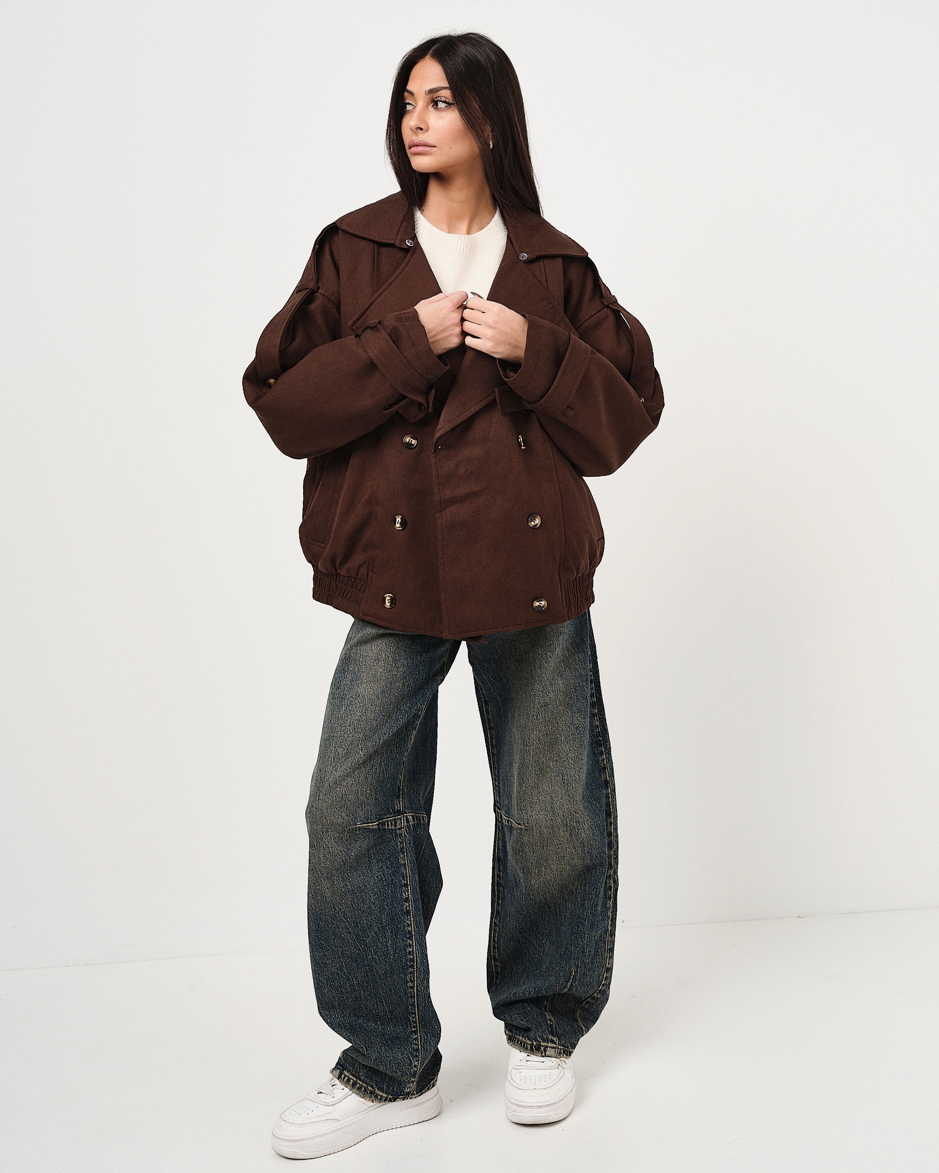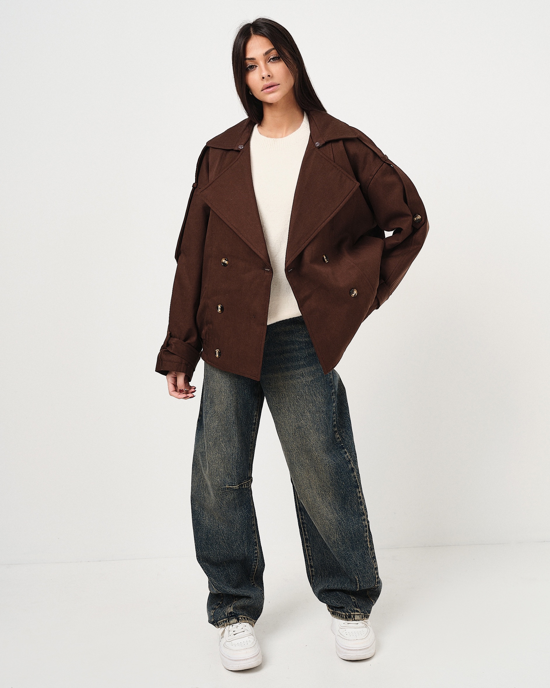 Giaccone cropped oversize a doppiopetto con imbottitura.