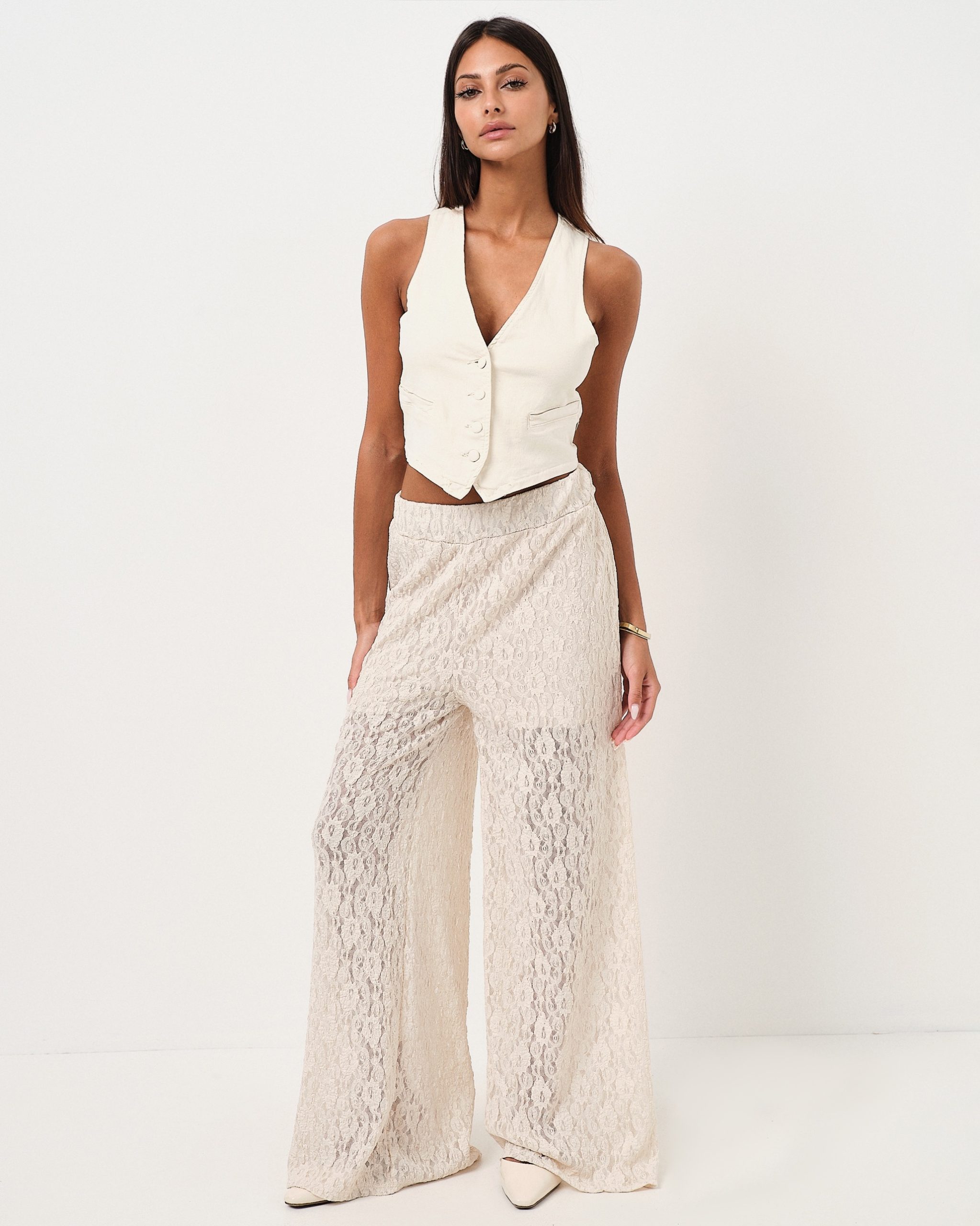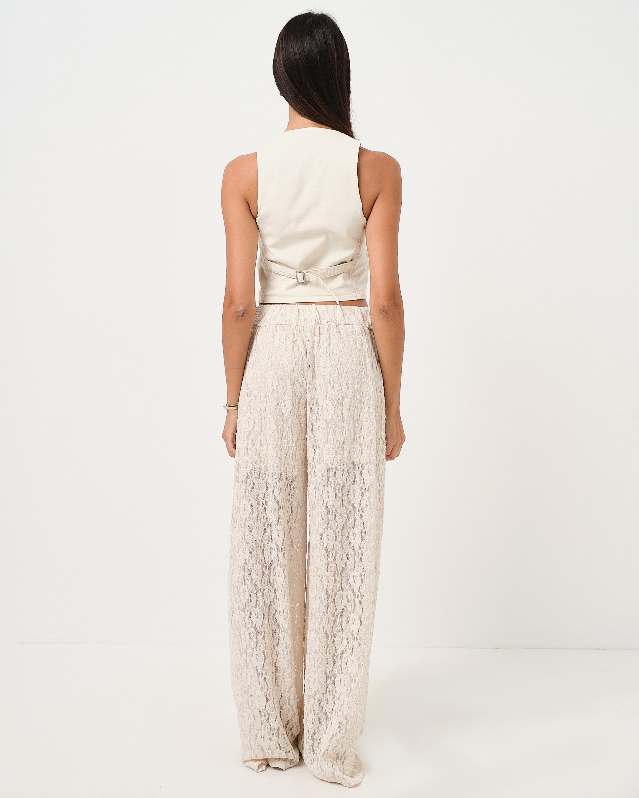 Gilet cropped regular fit in denim con bottoni e scollo a V.