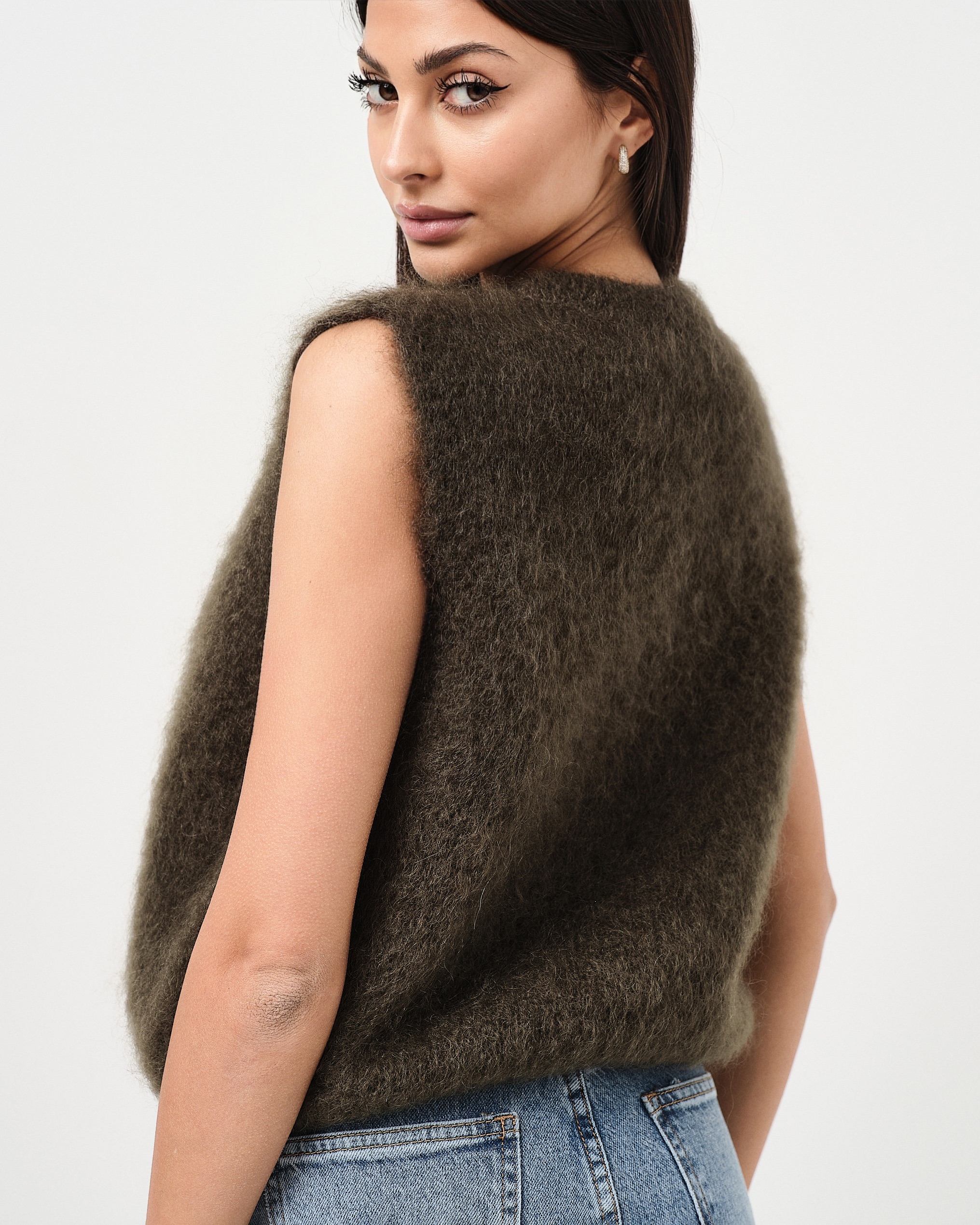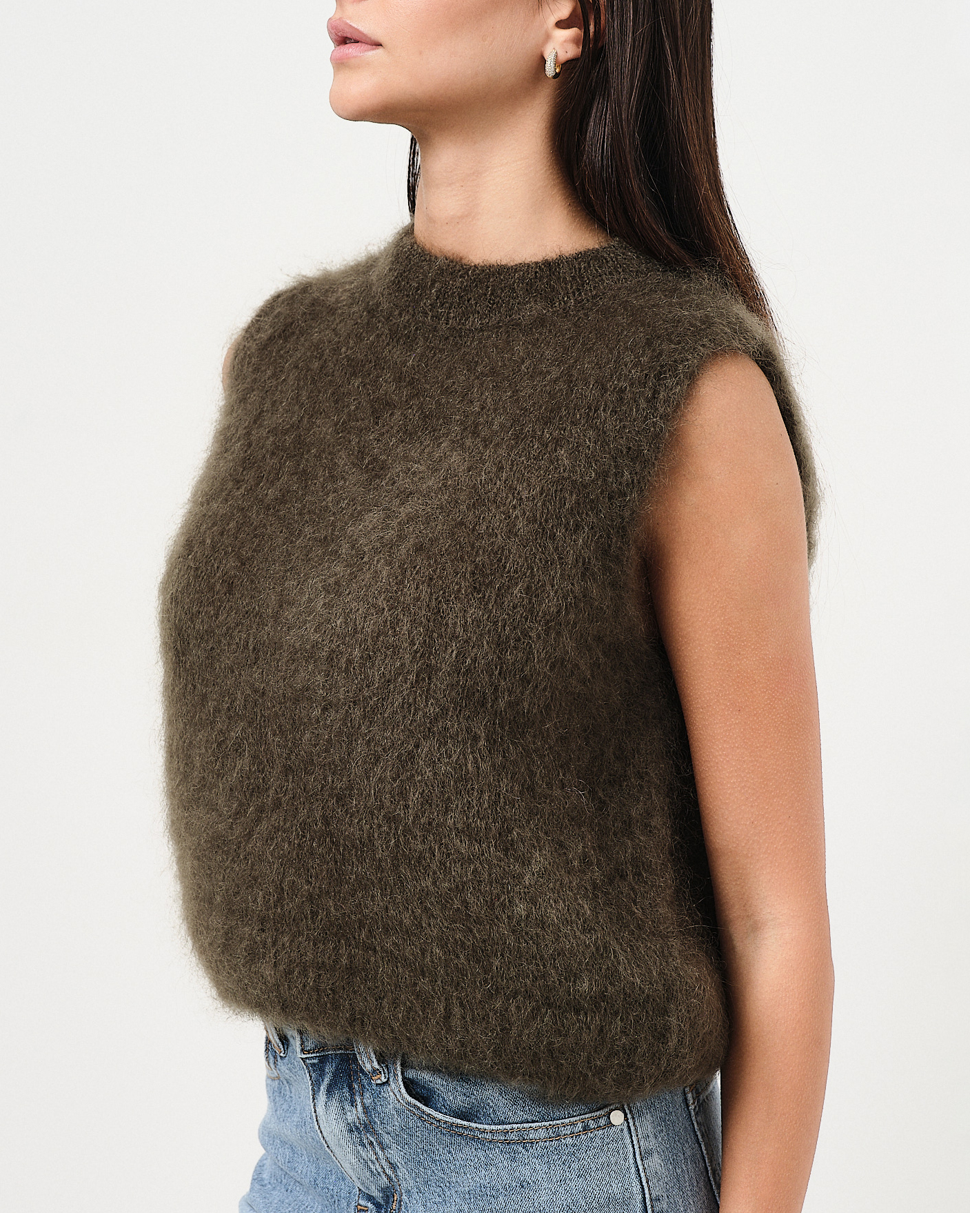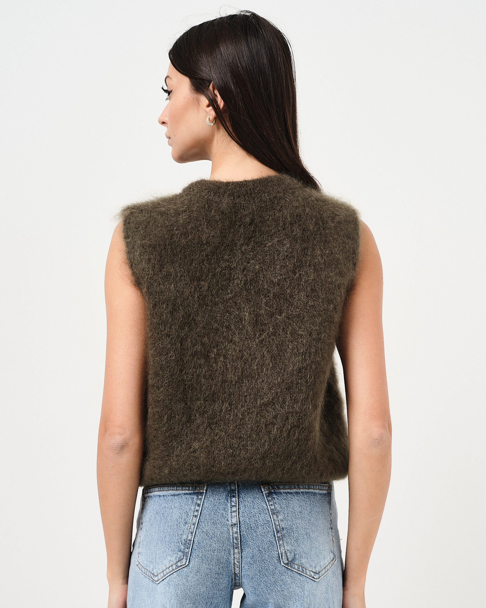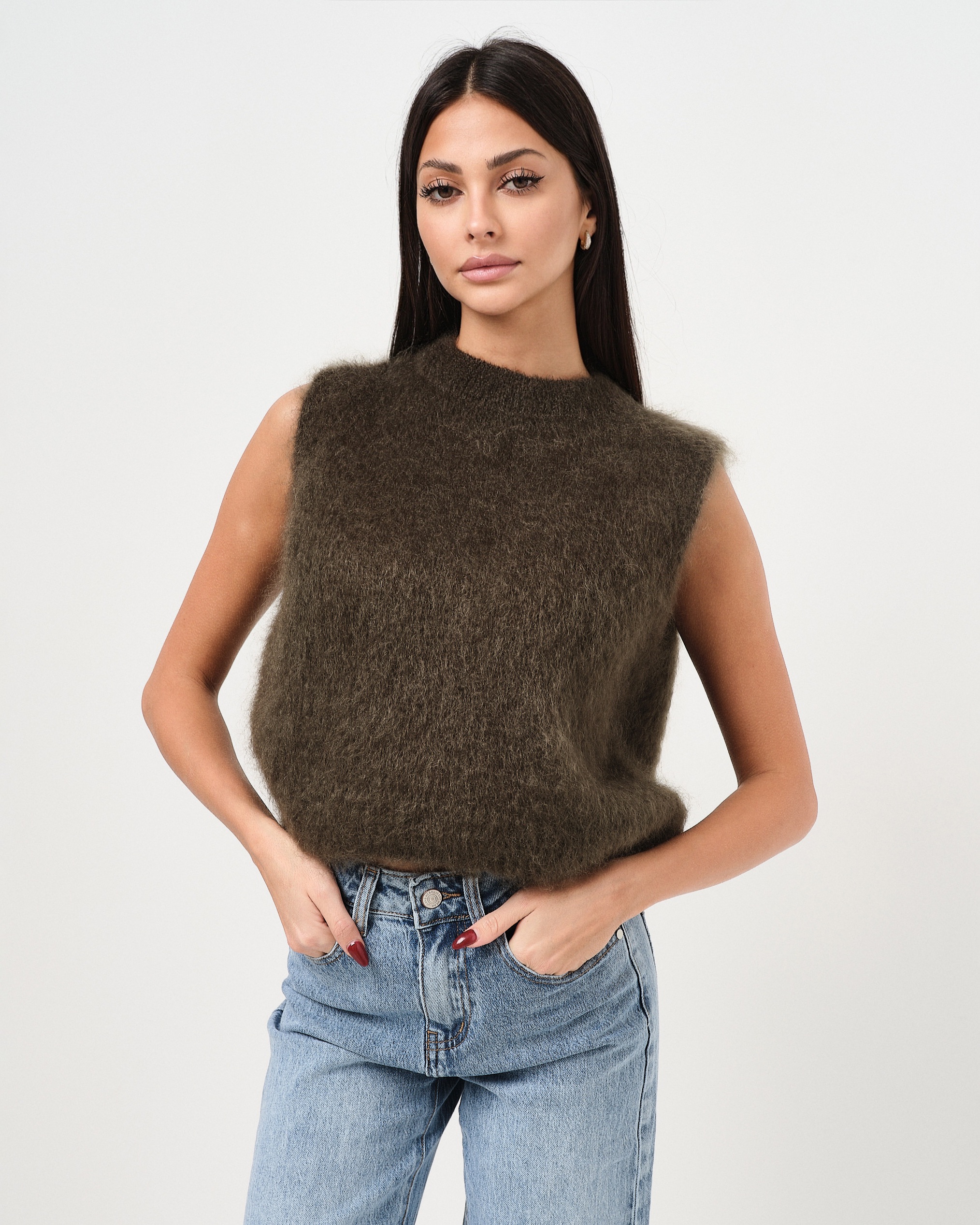 Gilet cropped accollato in misto mohair effetto fluffy.