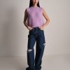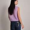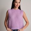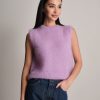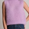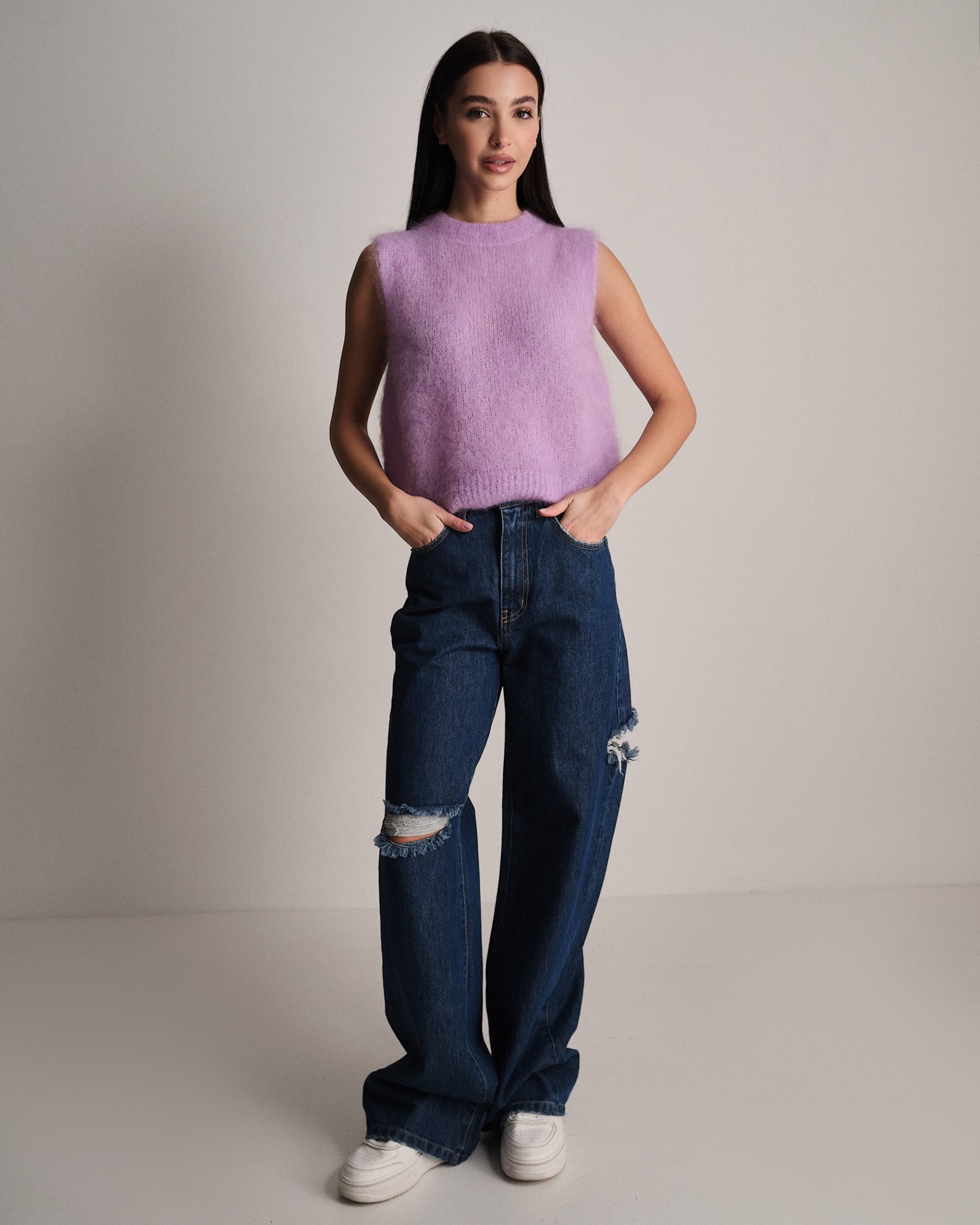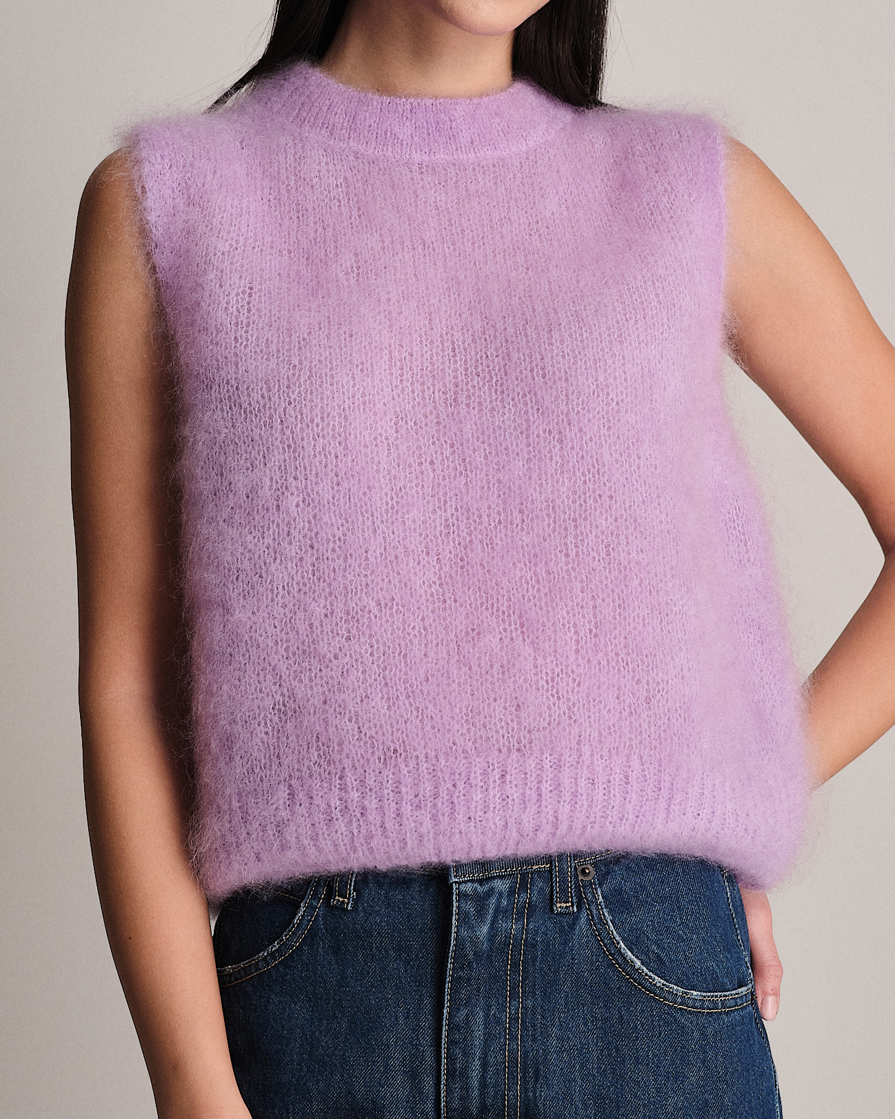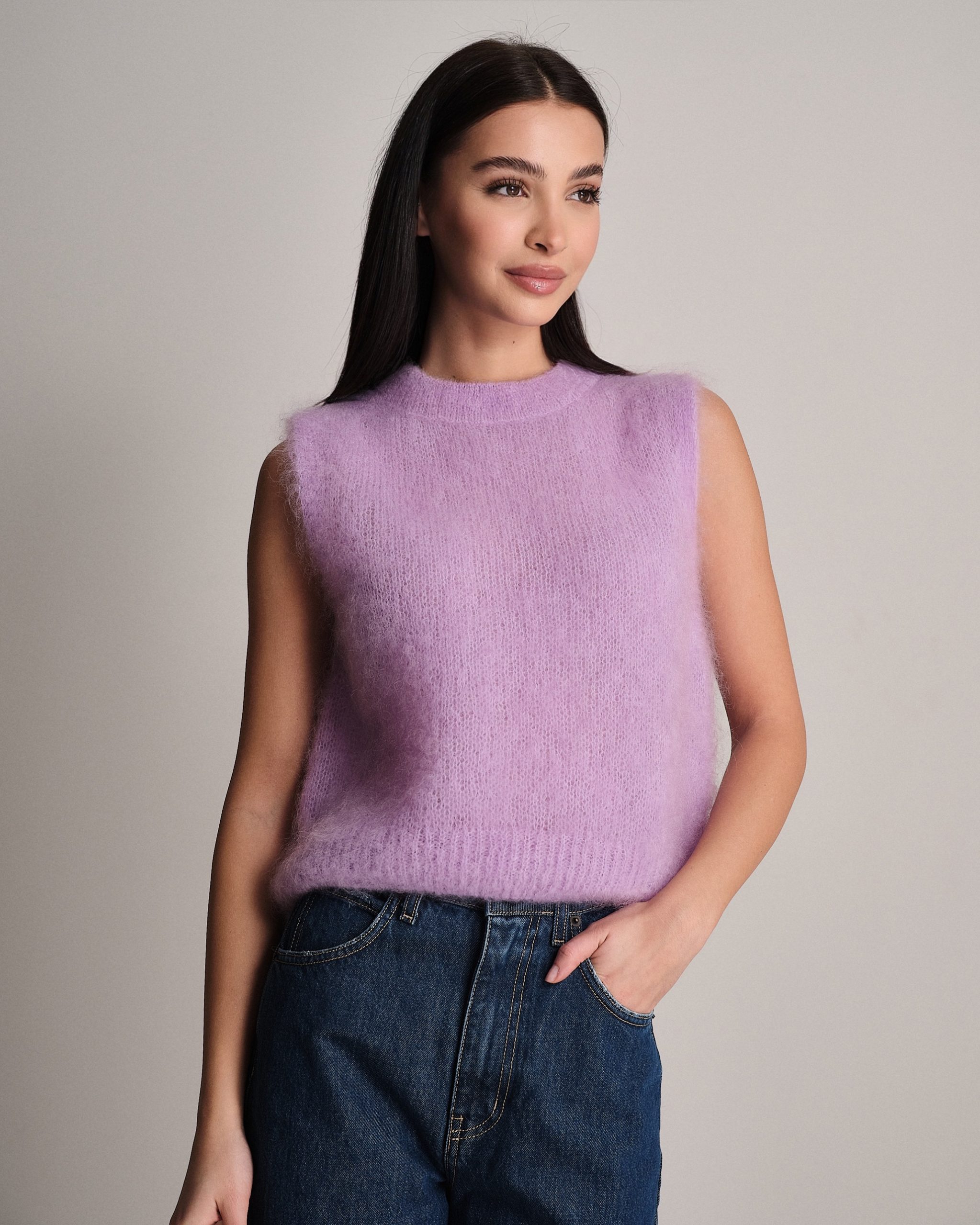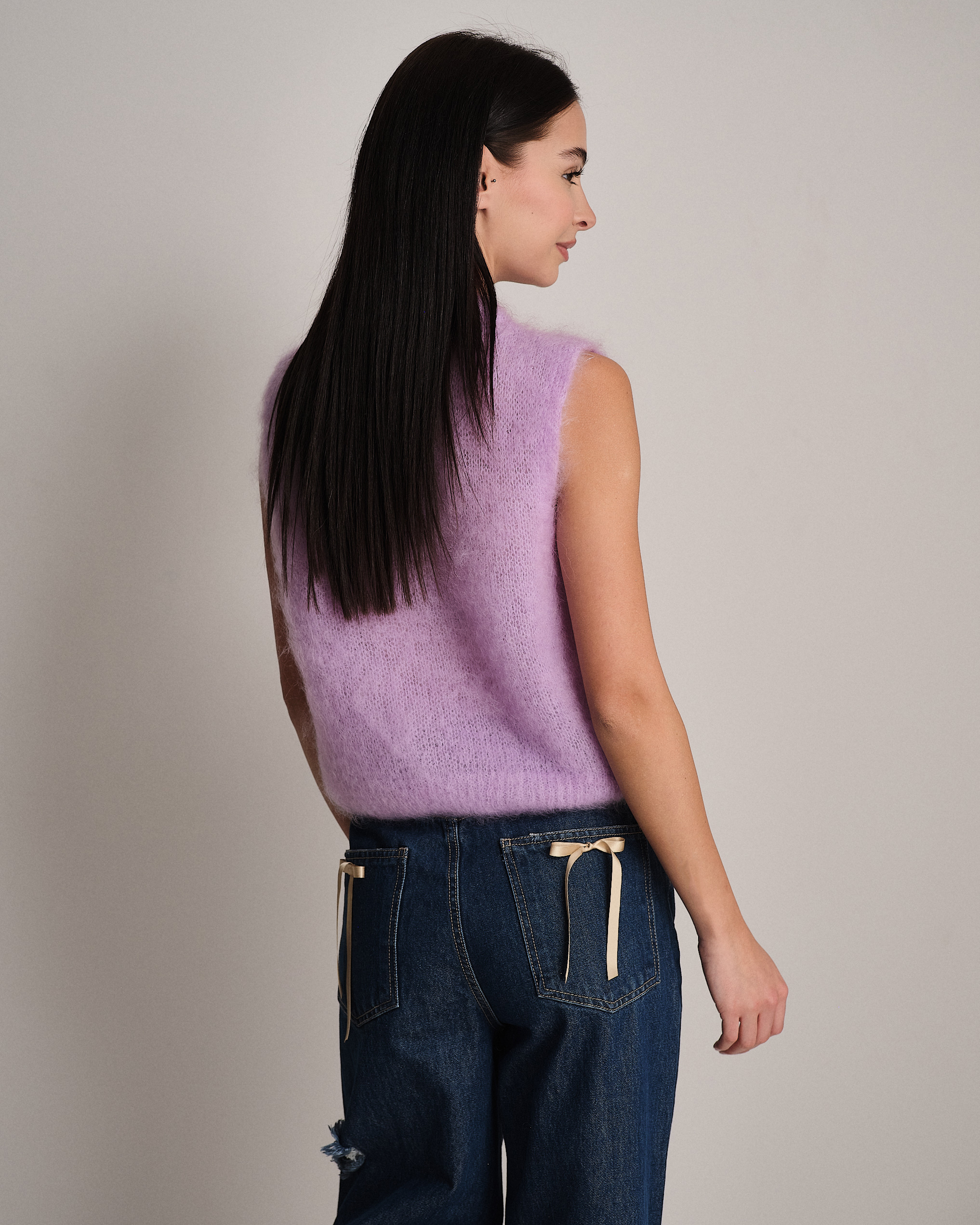Gilet smanicato fluffy a girocollo in kid mohair.