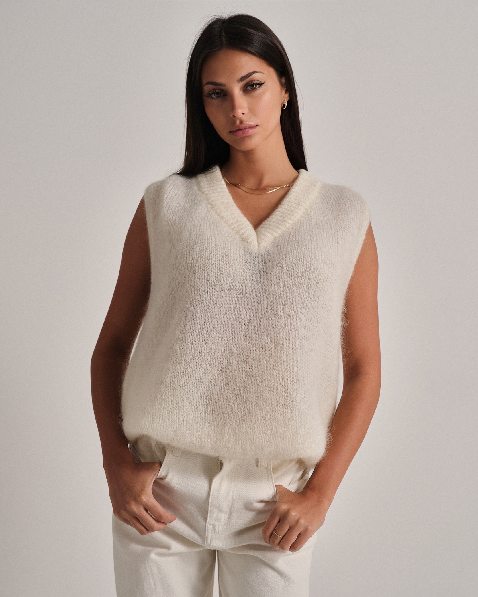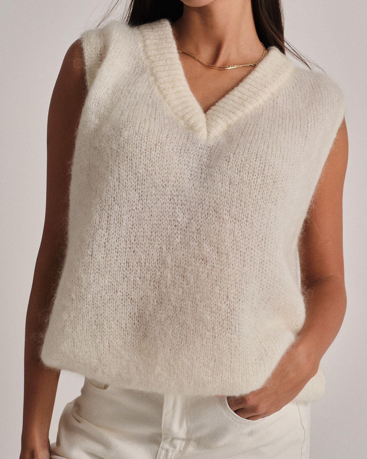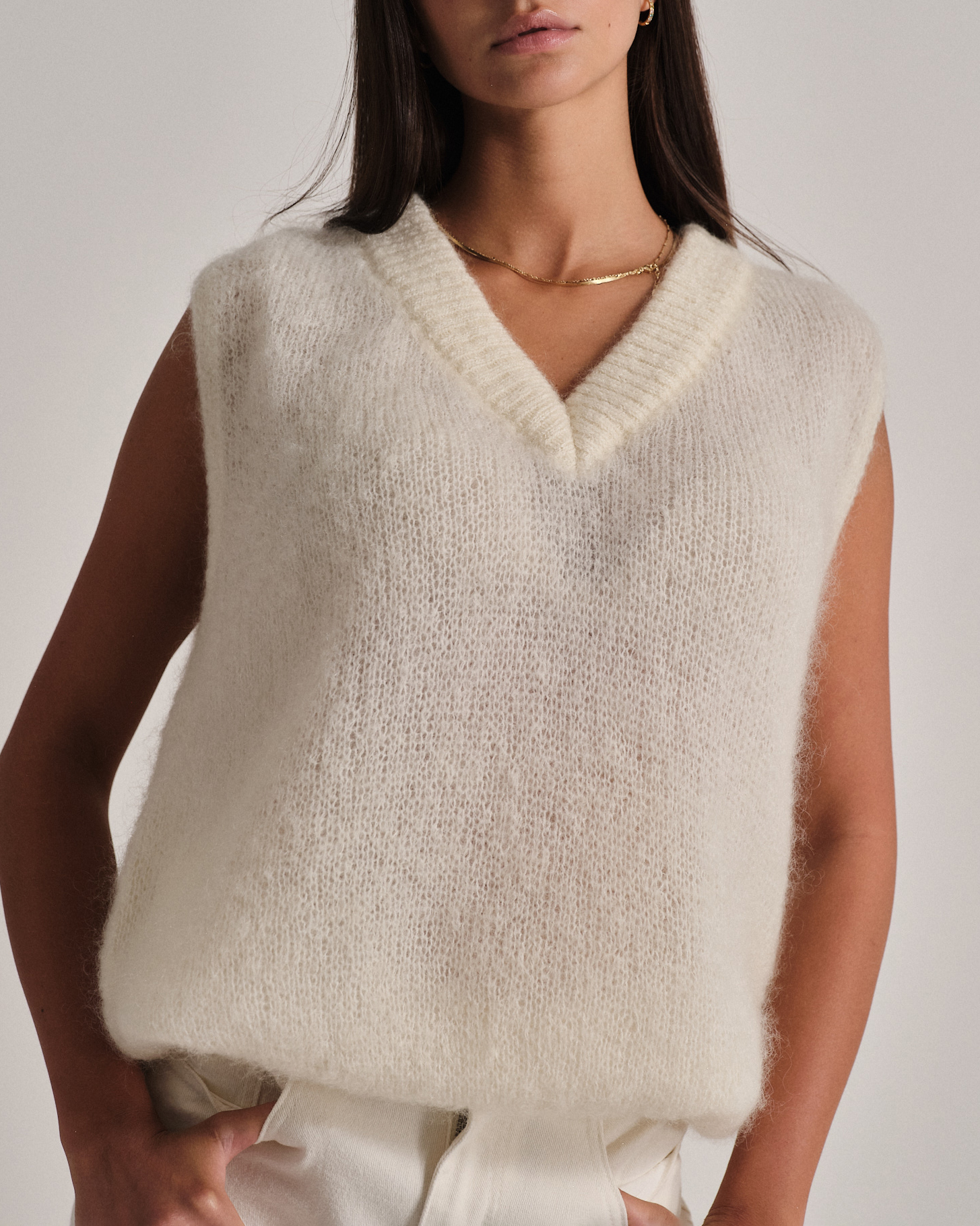 Gilet oversize in mohair con scollo a V
