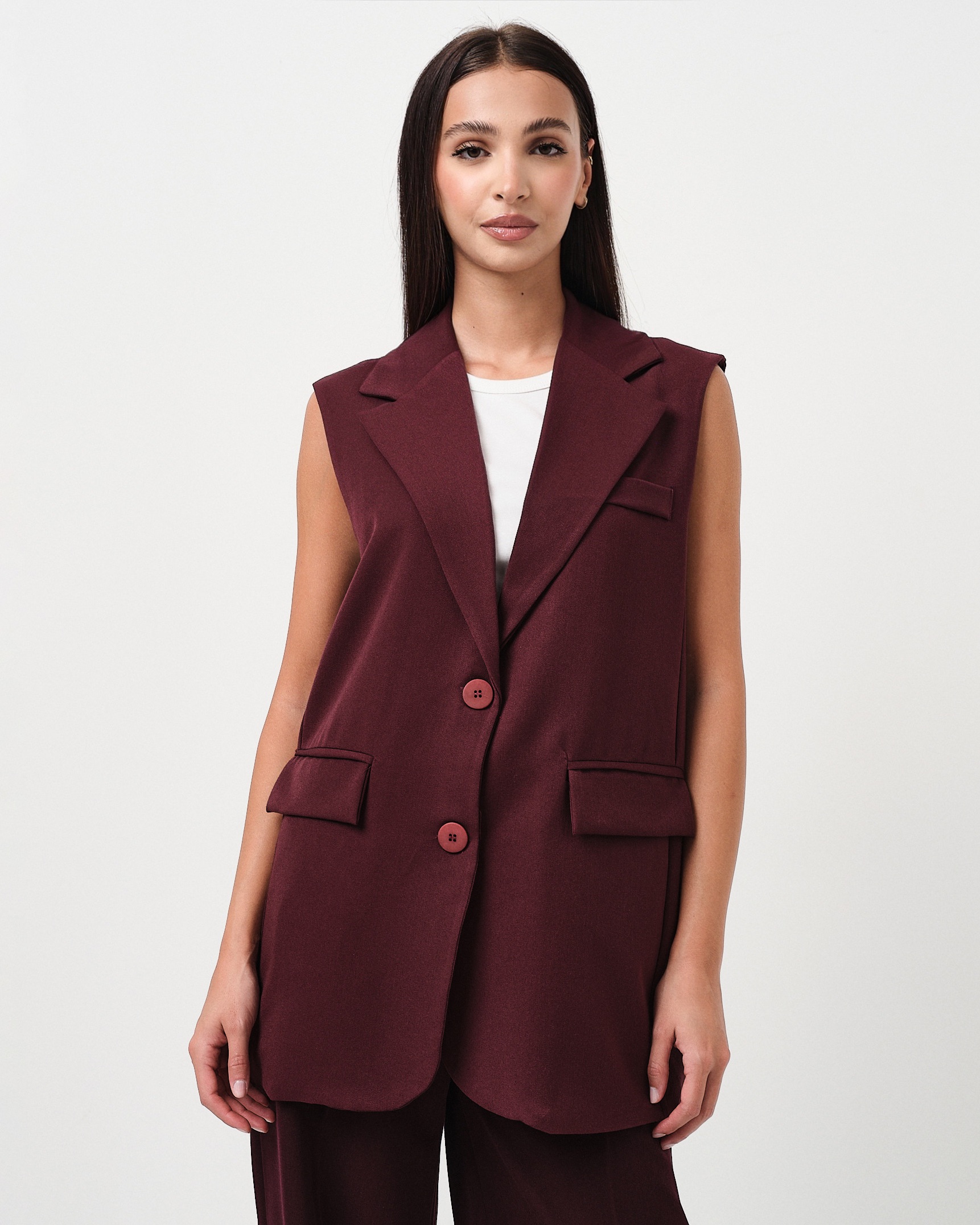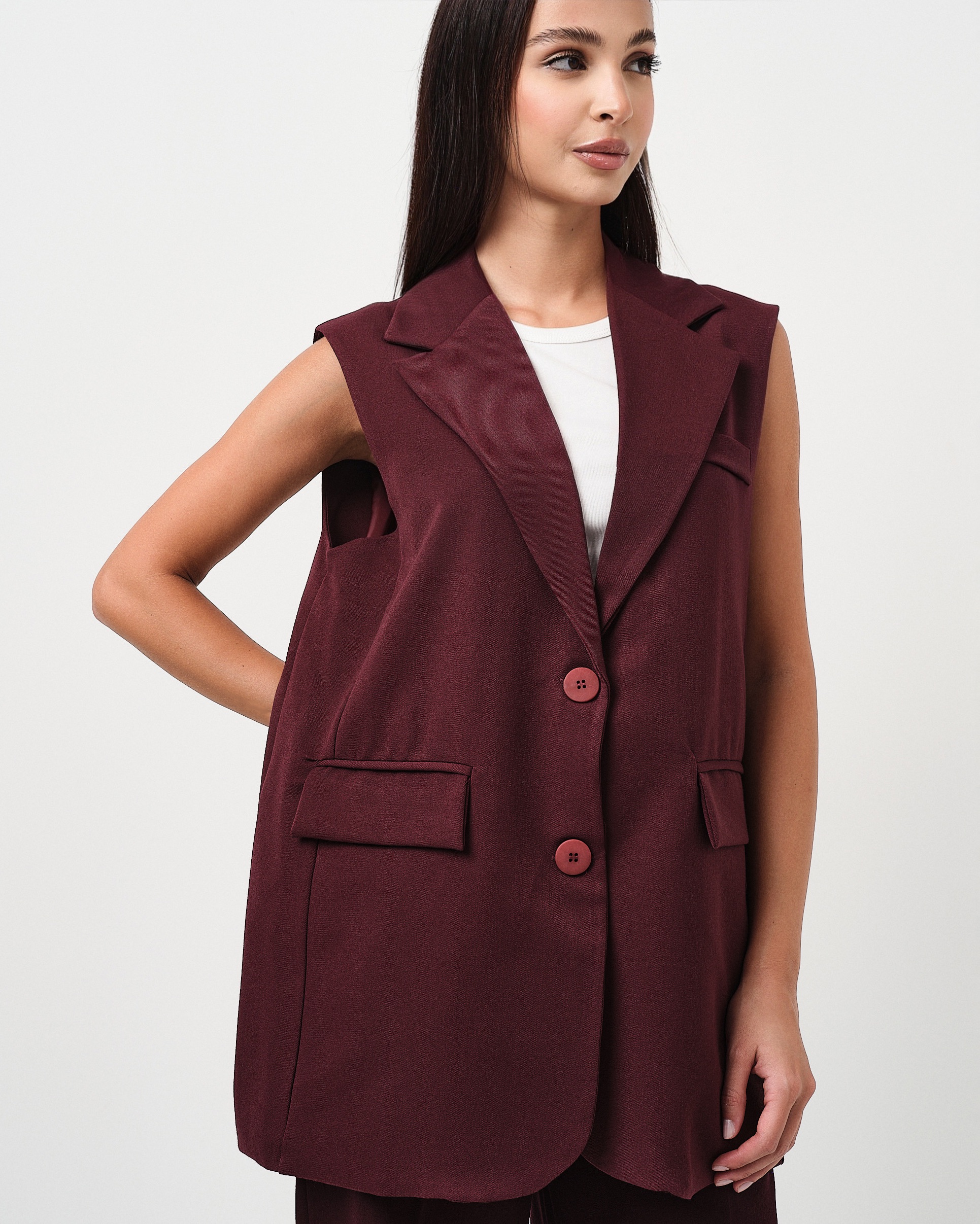 Maxi gilet strutturato con tasche sul davanti e chiusura con bottoni.