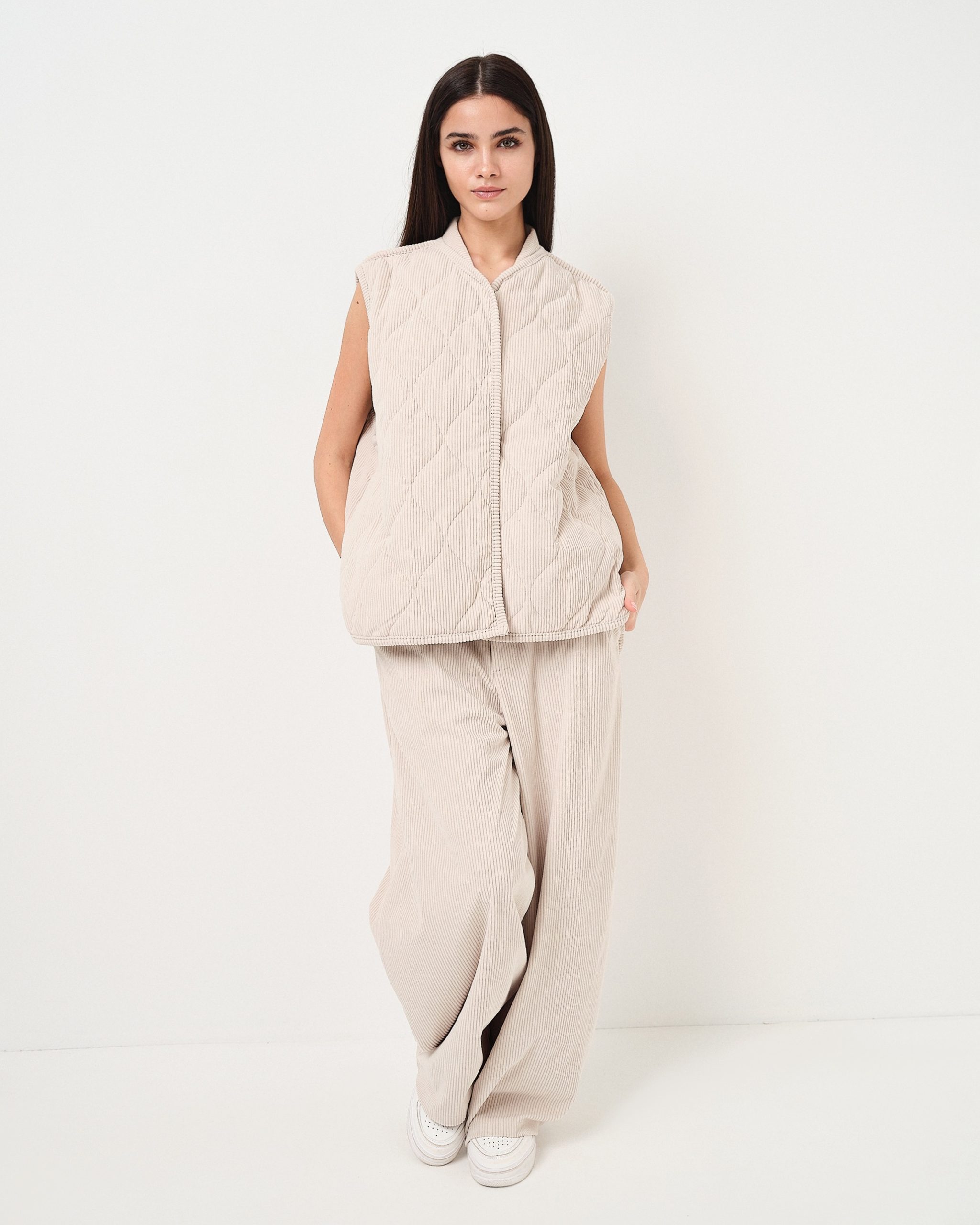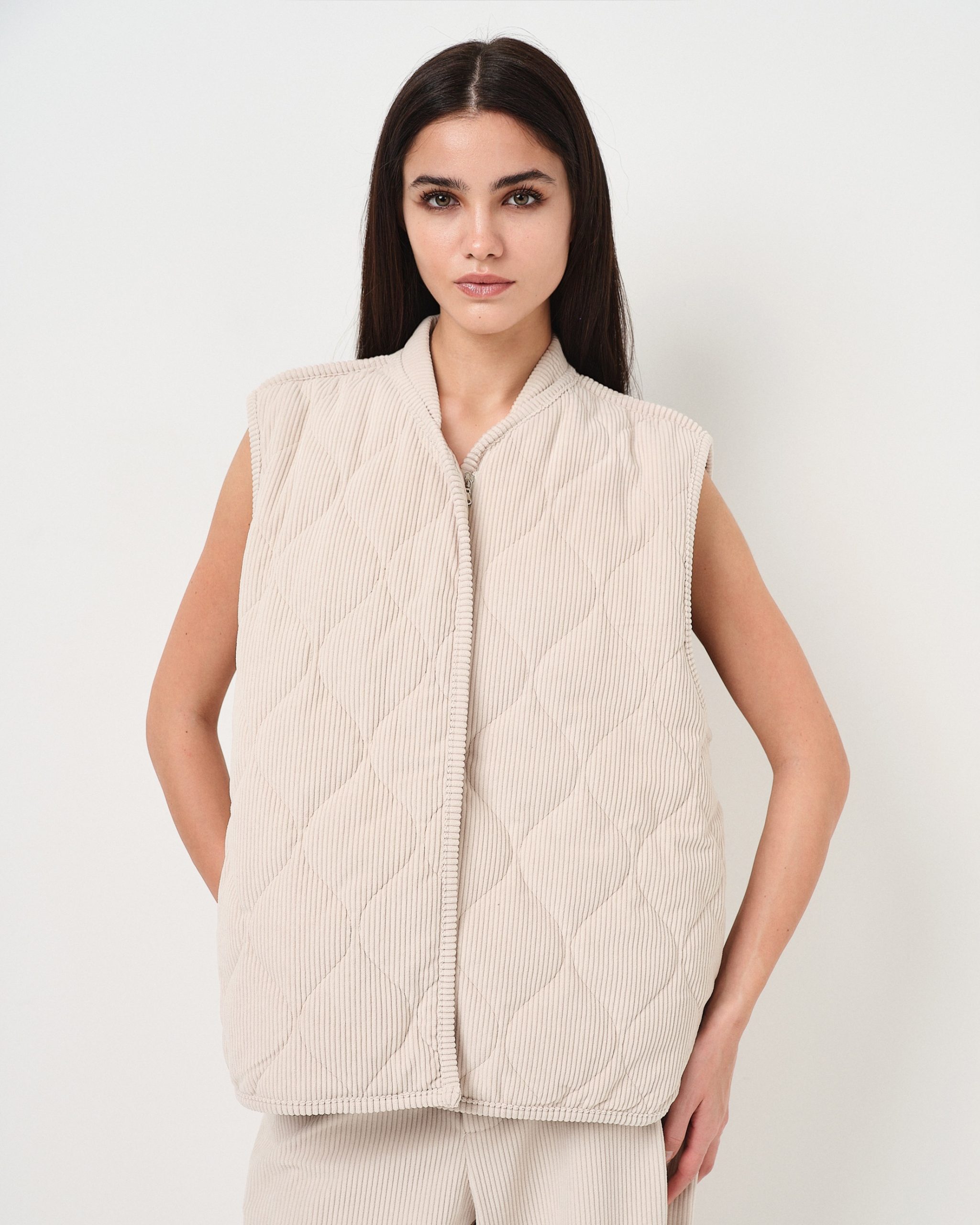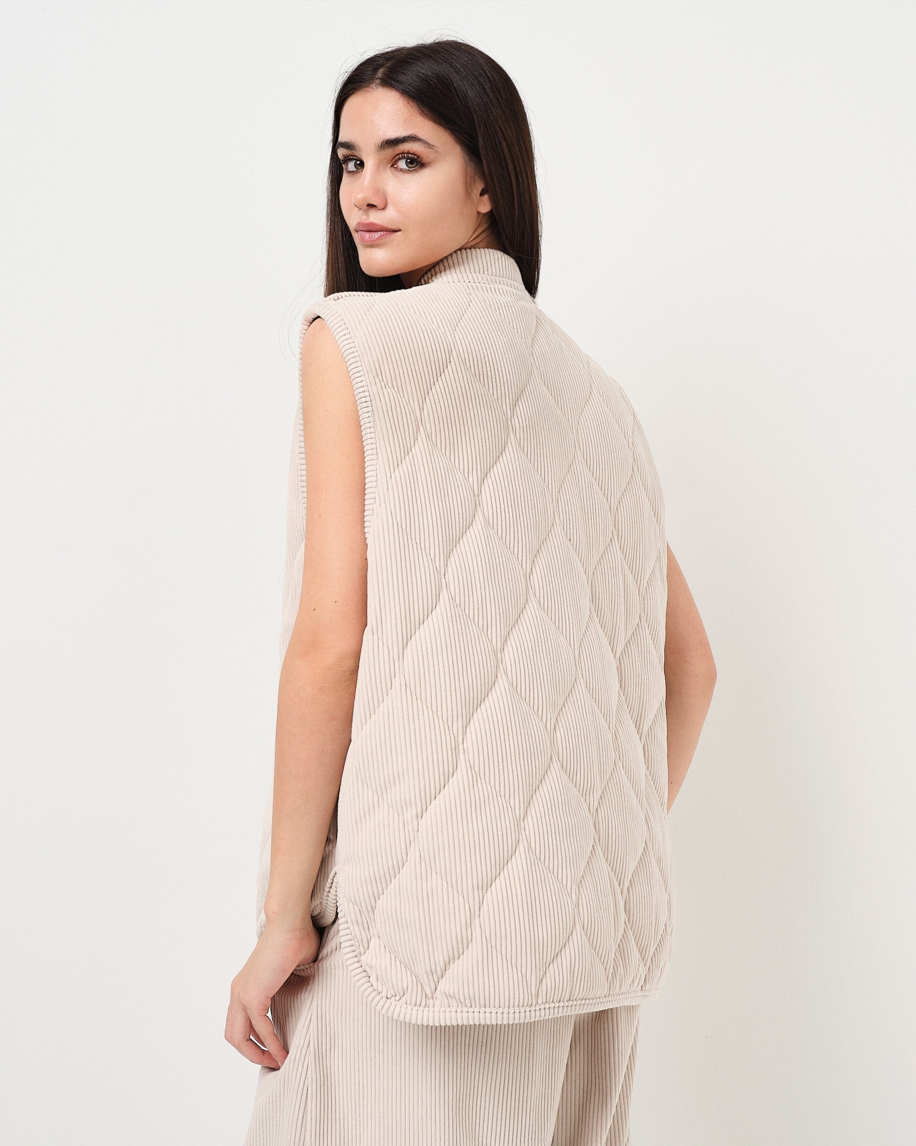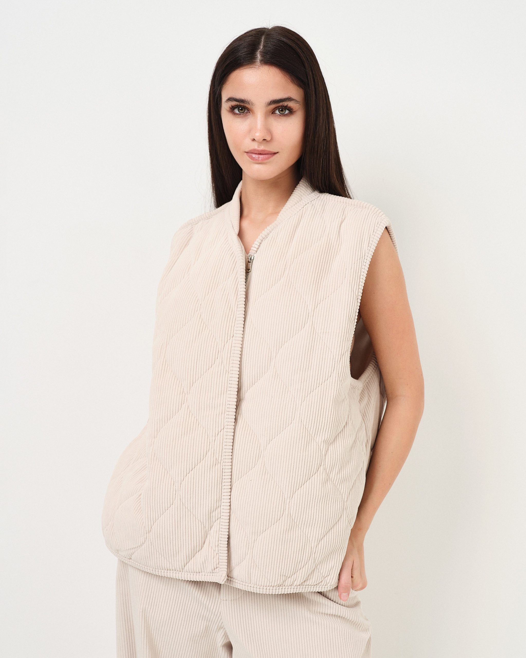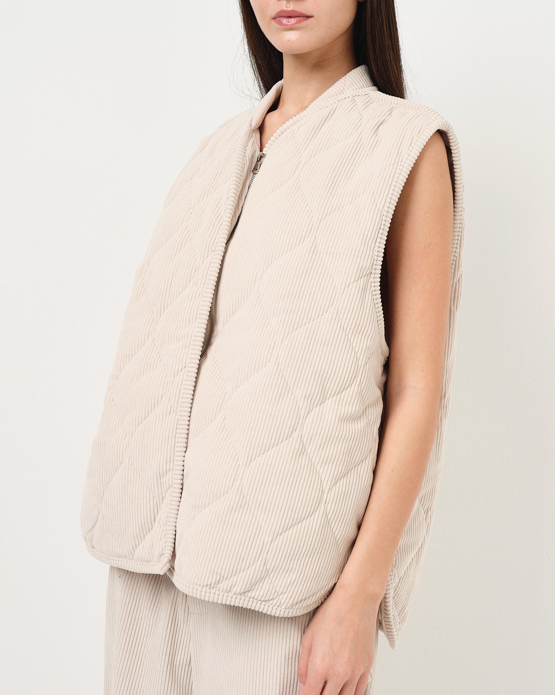 Gilet oversize smanicato trapuntato in velluto a coste con zip.