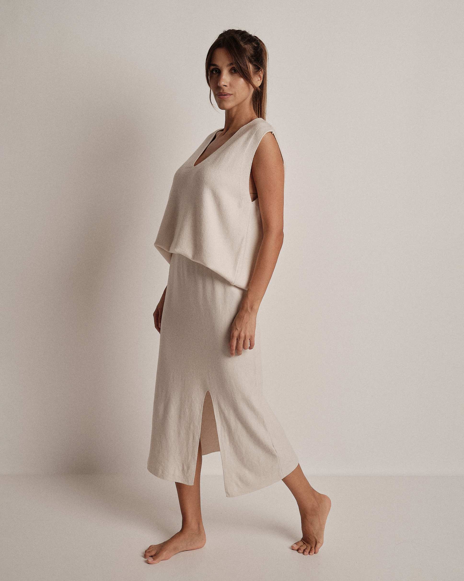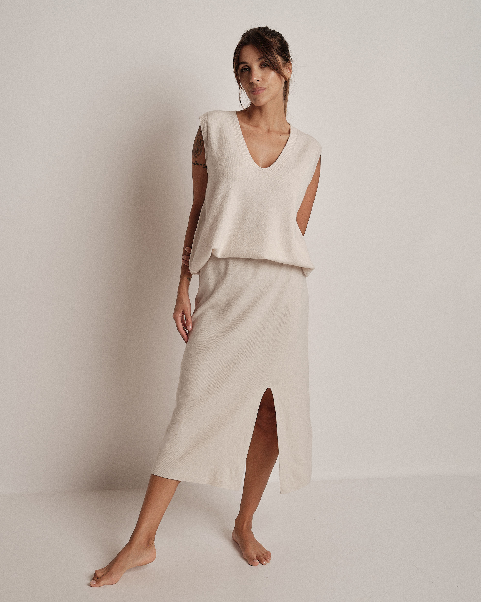 La modella è alta 1,73m e indossa la taglia UNI.