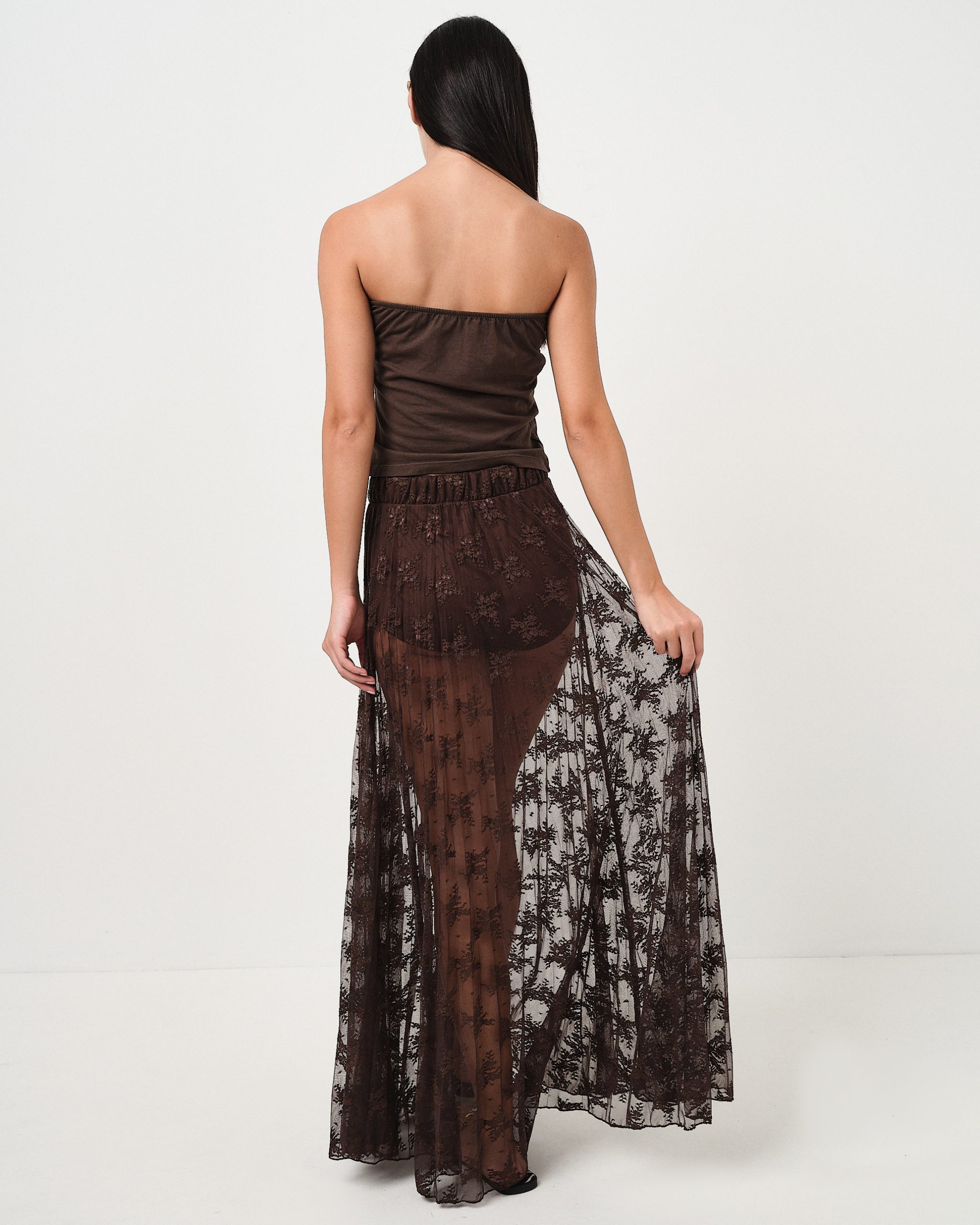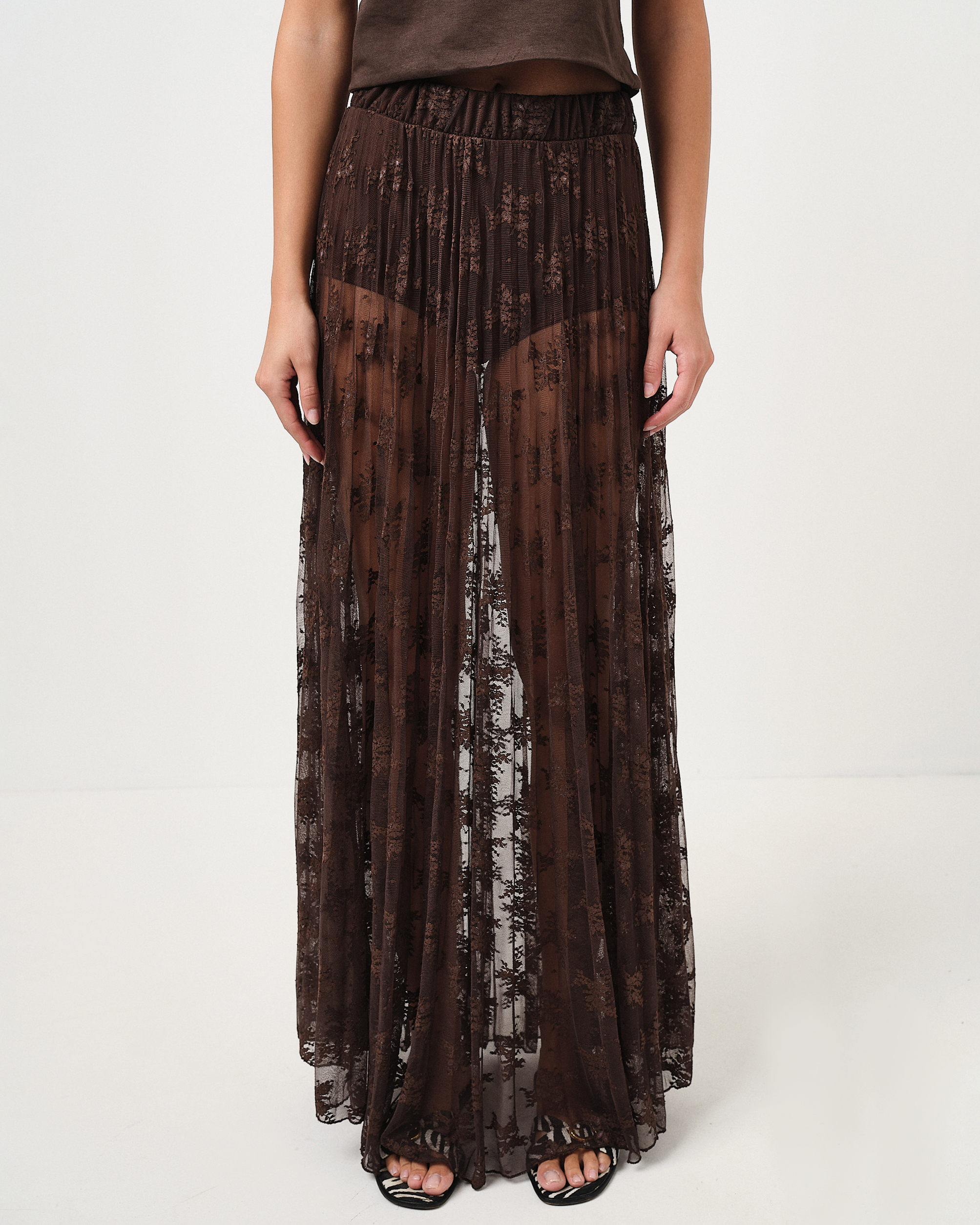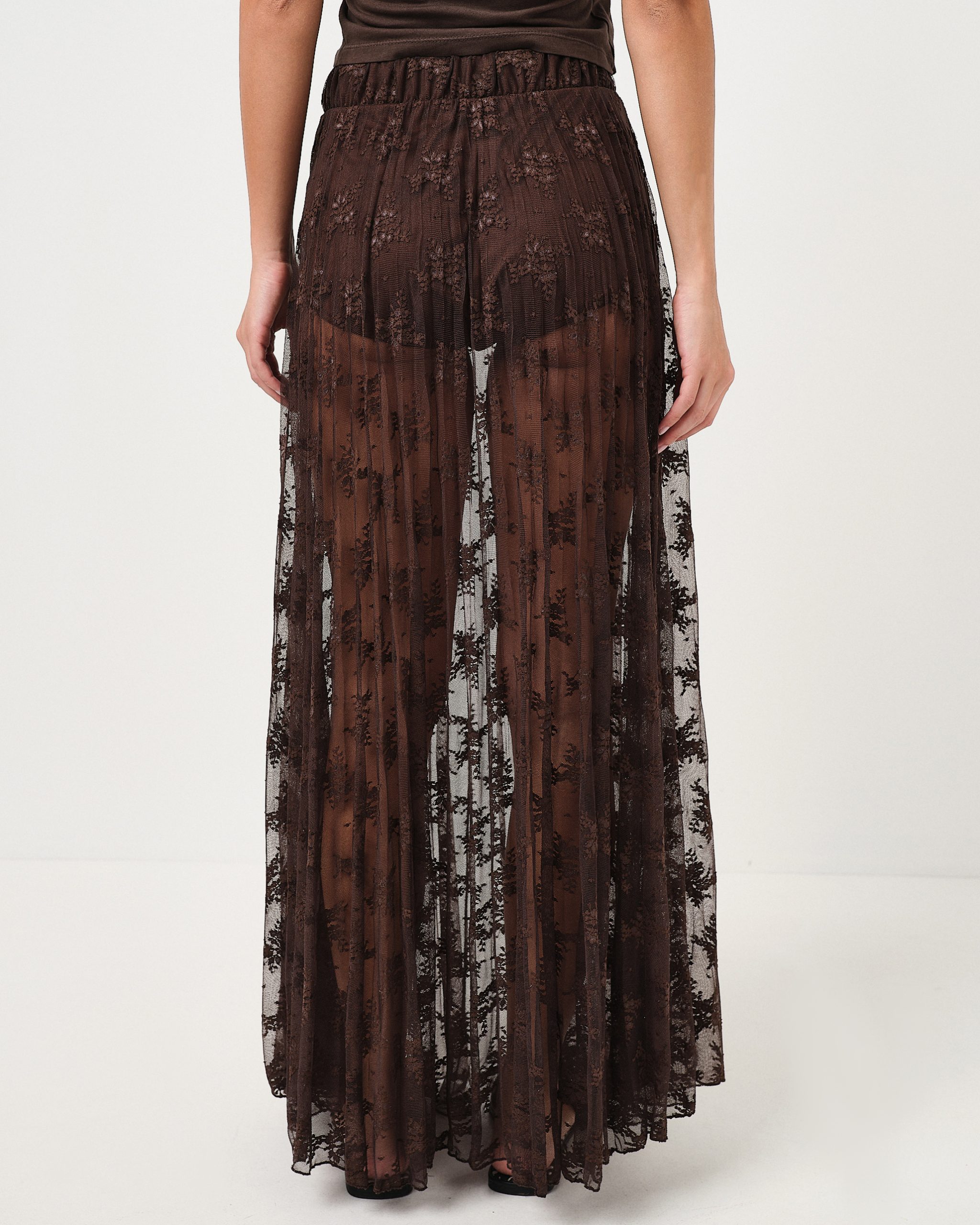 Gonna lunga in pizzo trasparente con elastico in vita e culotte.