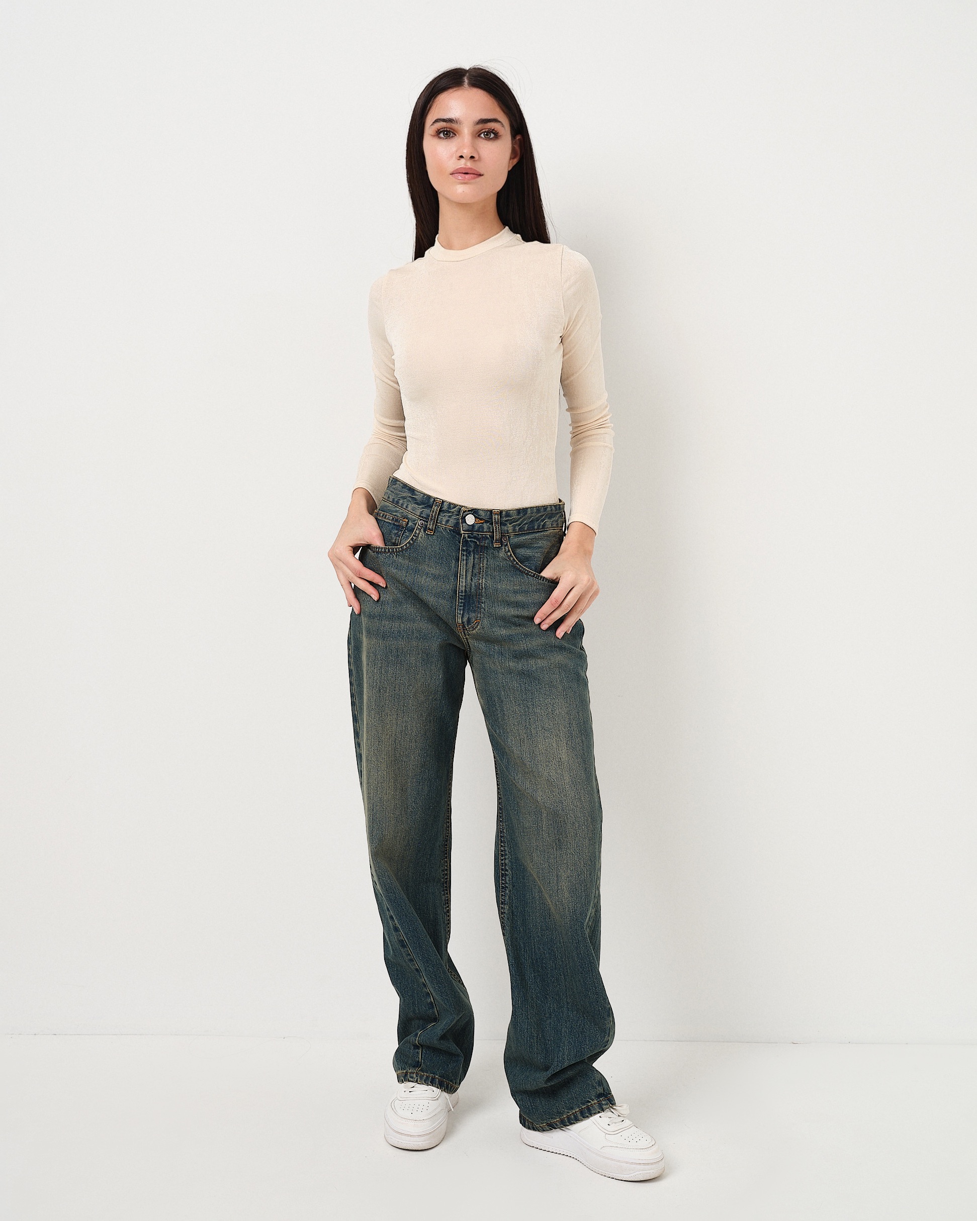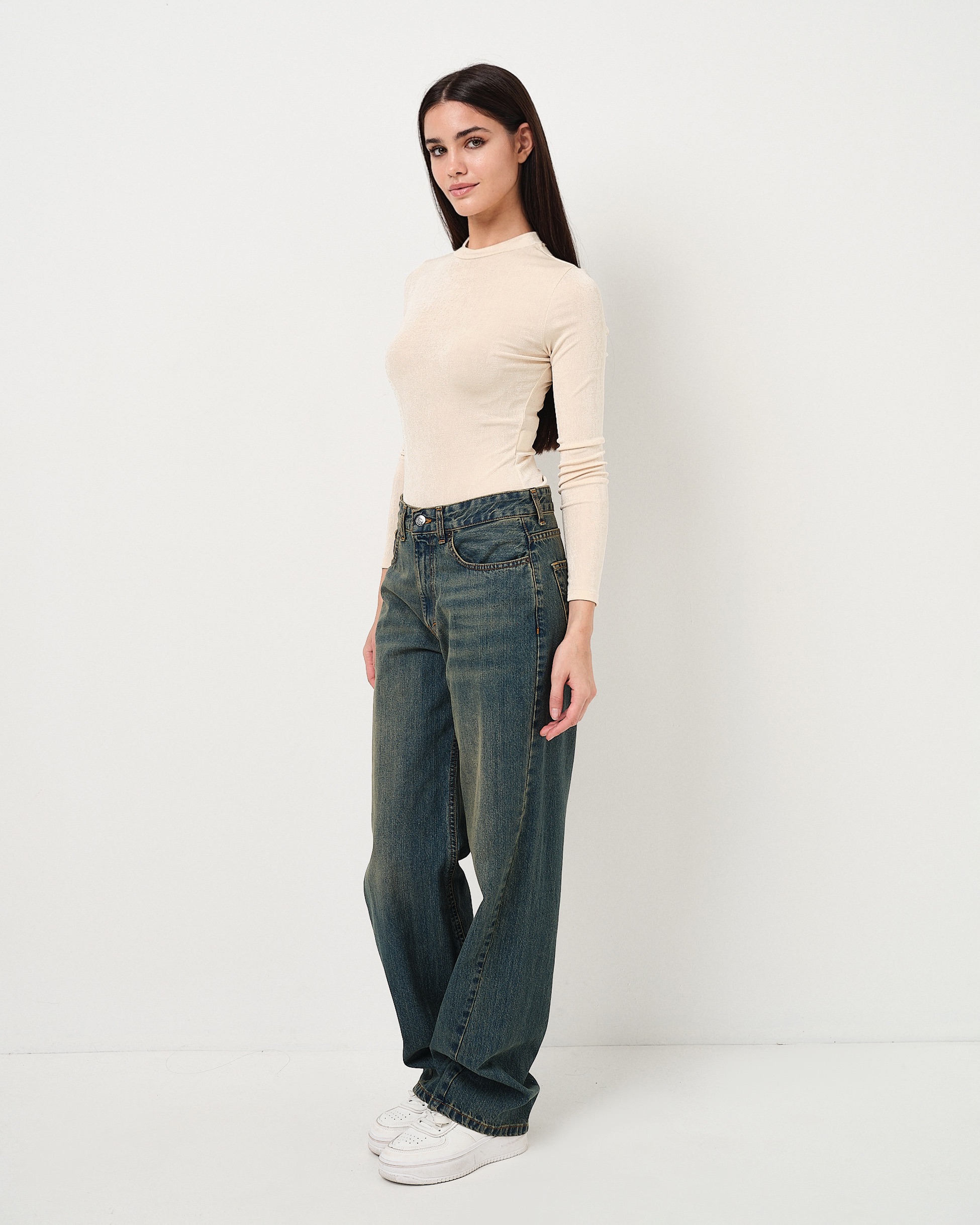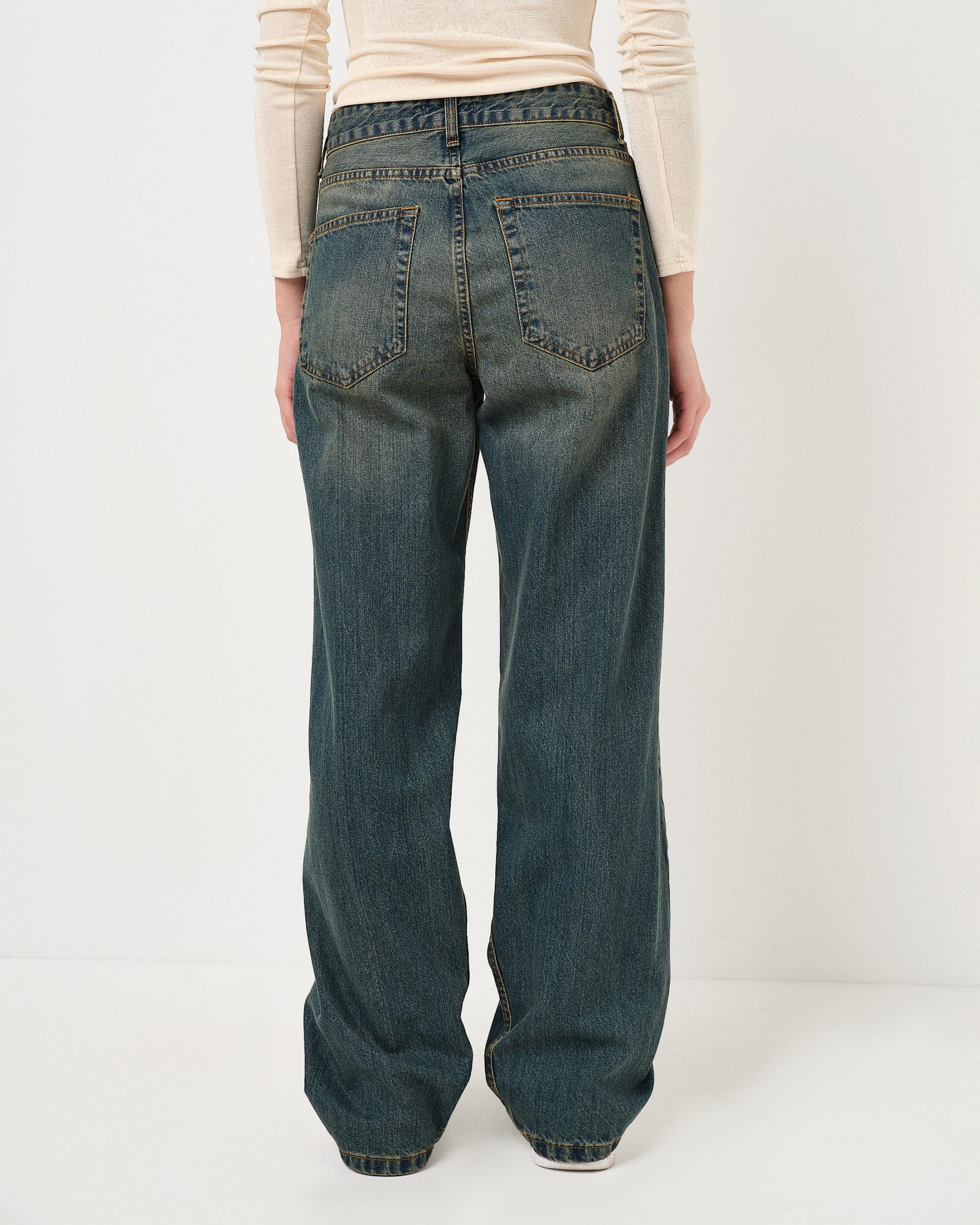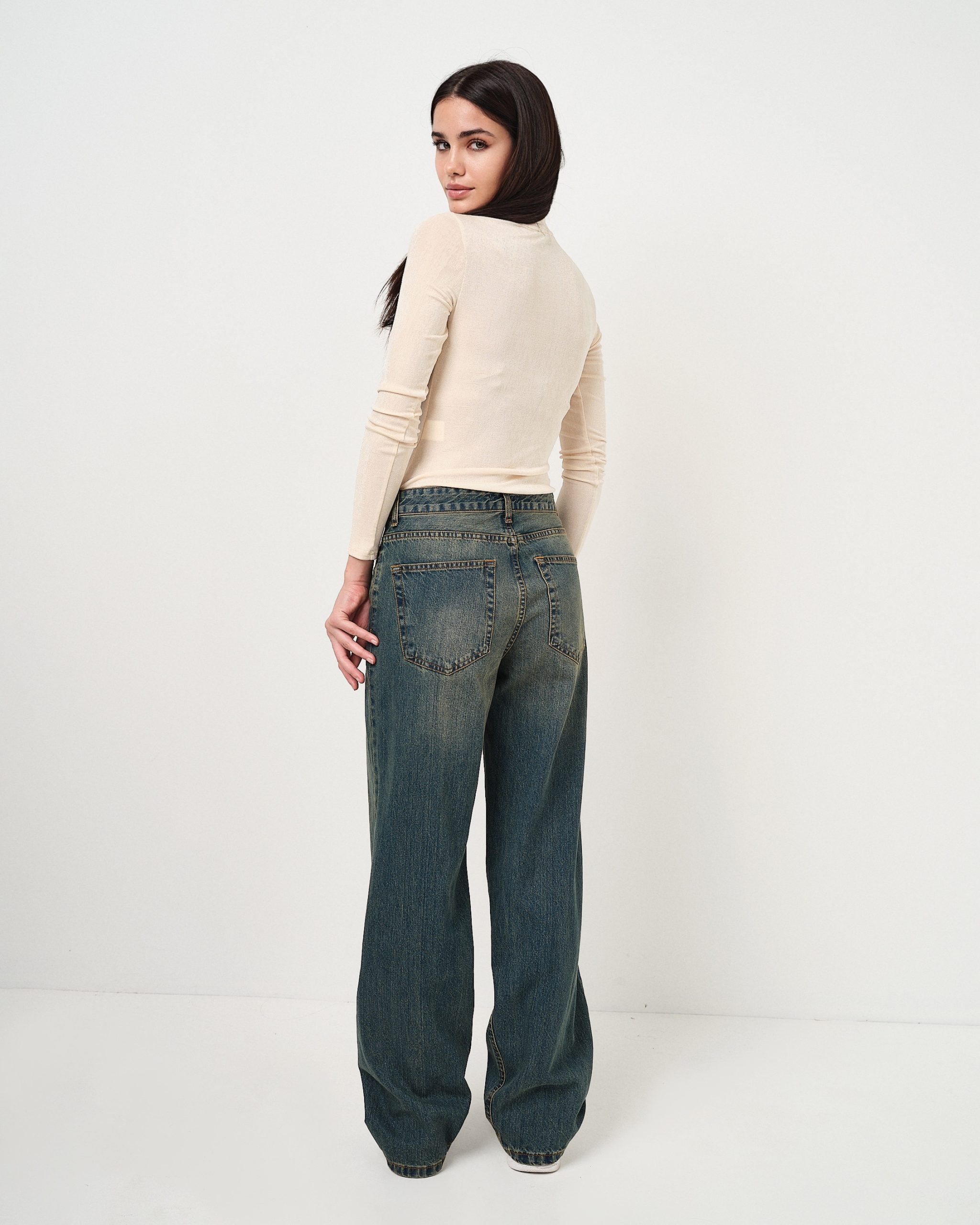Jeans hight waist con vestibilità morbida e lavaggio invecchiato.