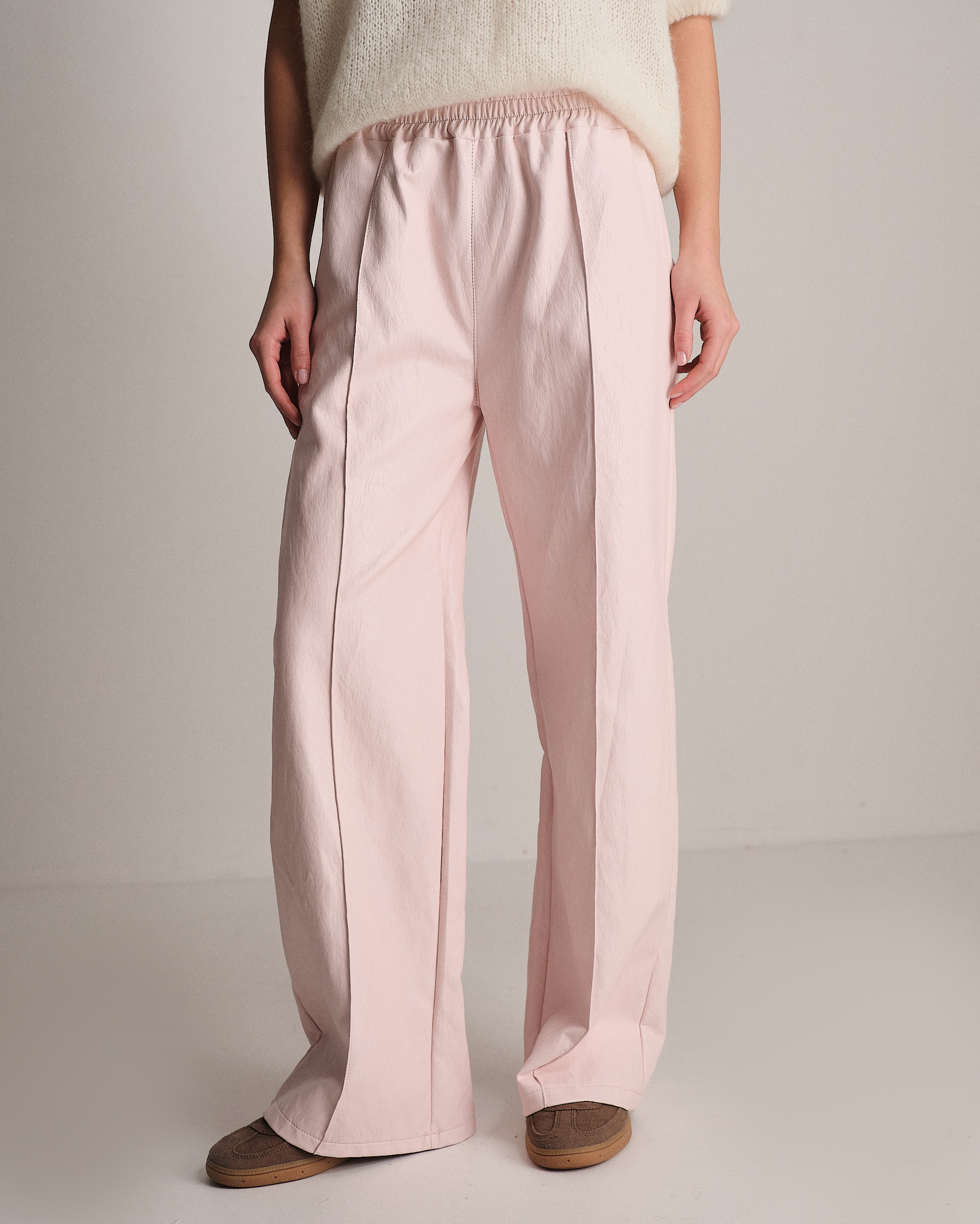 Pantalone oversize in ecopelle con vestibilità morbida.
